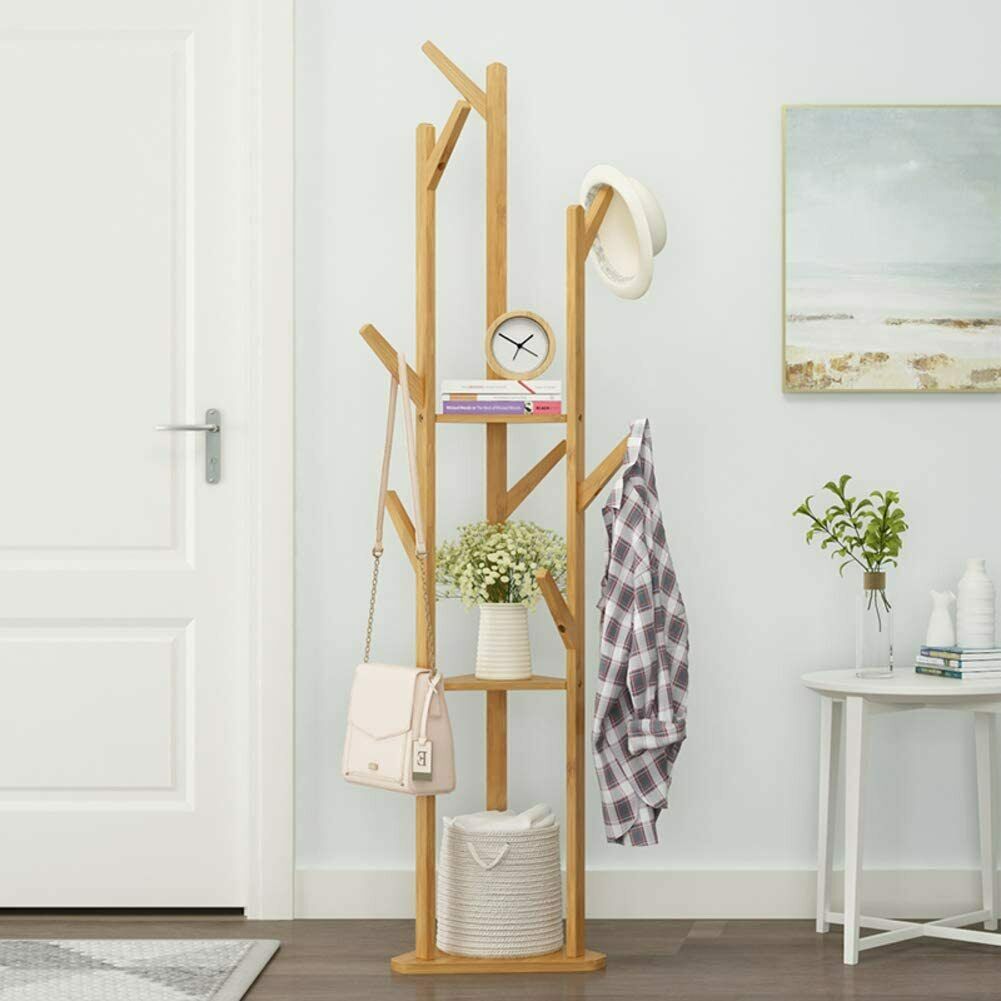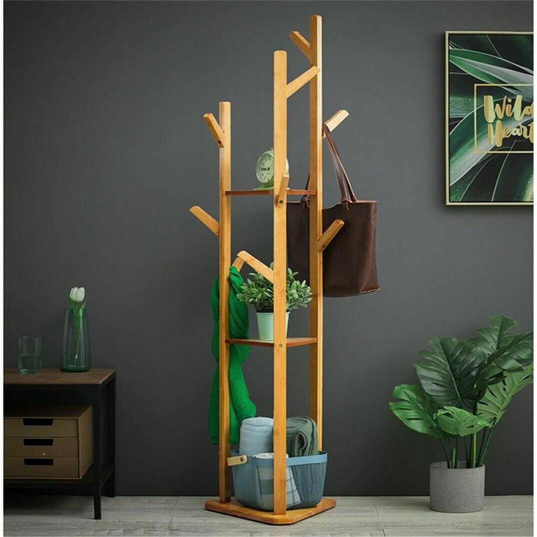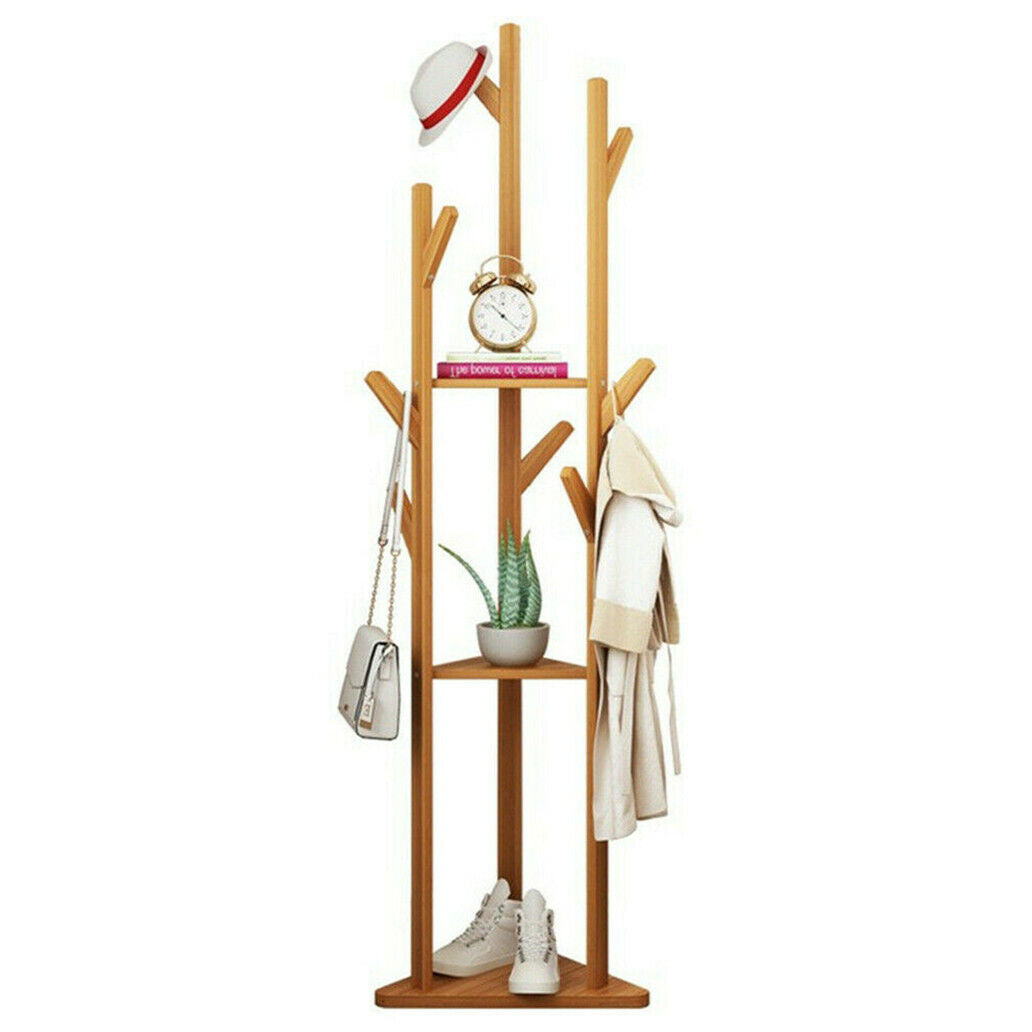 Heavy Duty Corner Coat Stands Rack Clothes Tree Umbrella Portable Hanger Shelf