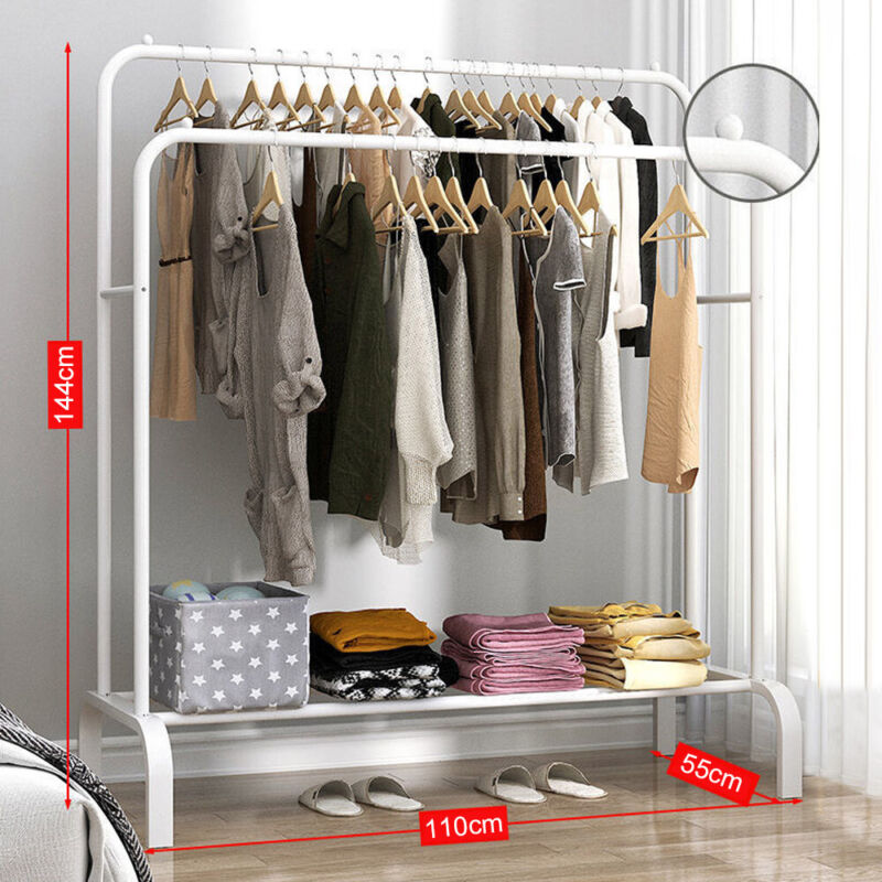 Heavy Duty Double Clothes Rail Hanging Rack Garment Display Stand Storage Shelf