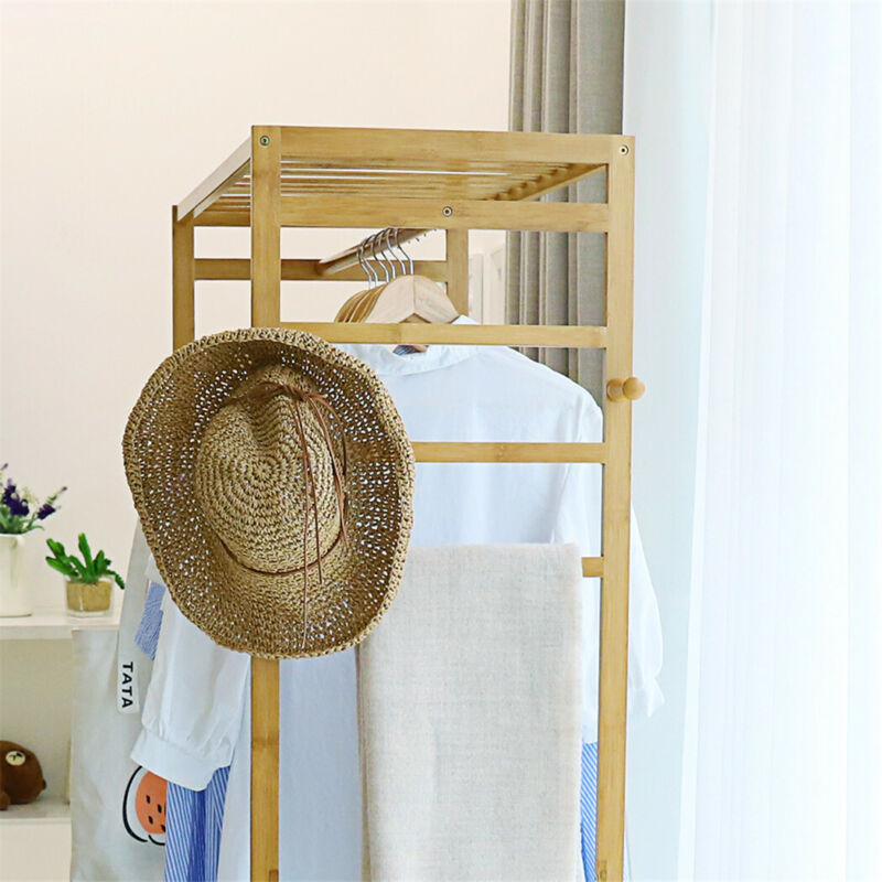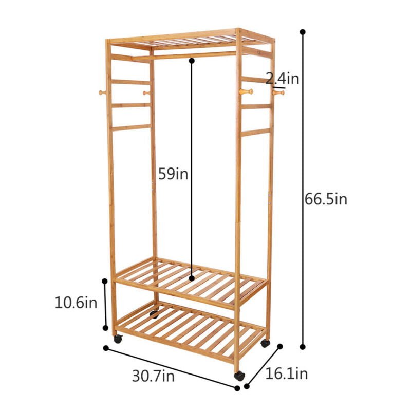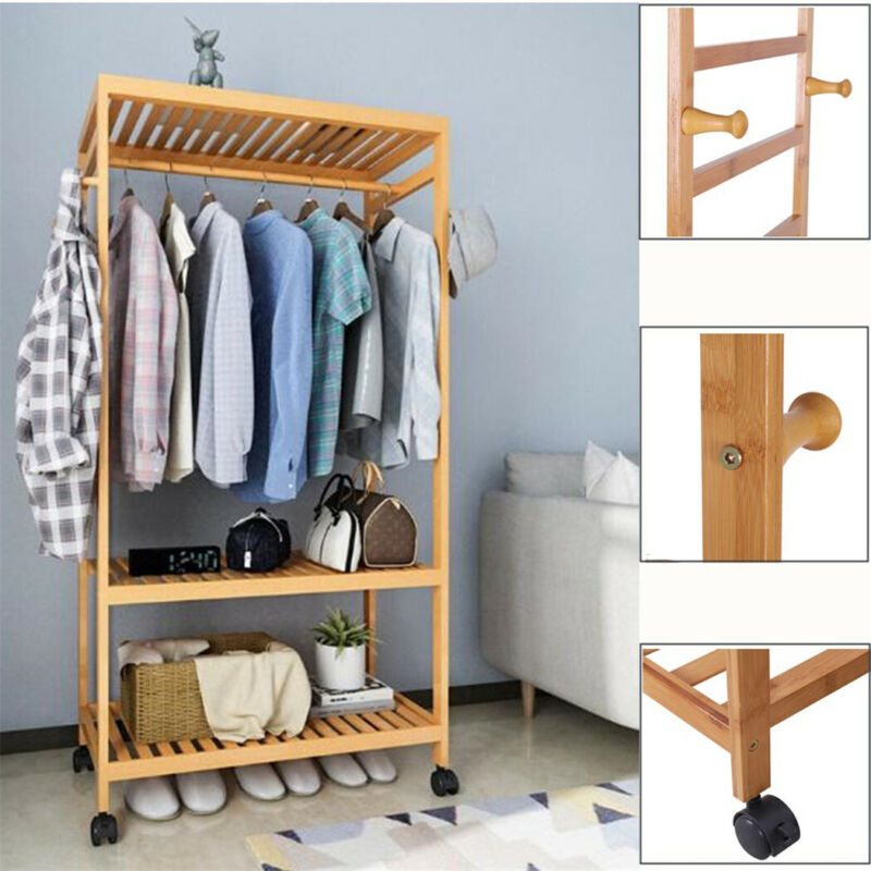 Heavy Duty Hallway Wooden Rail Clothes Hanging Garment Rack w/ Strengthened Rods
