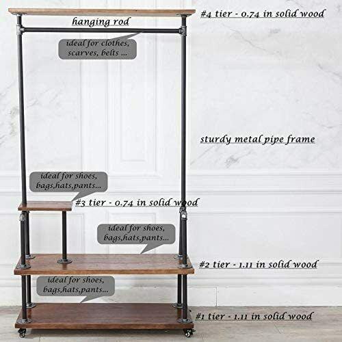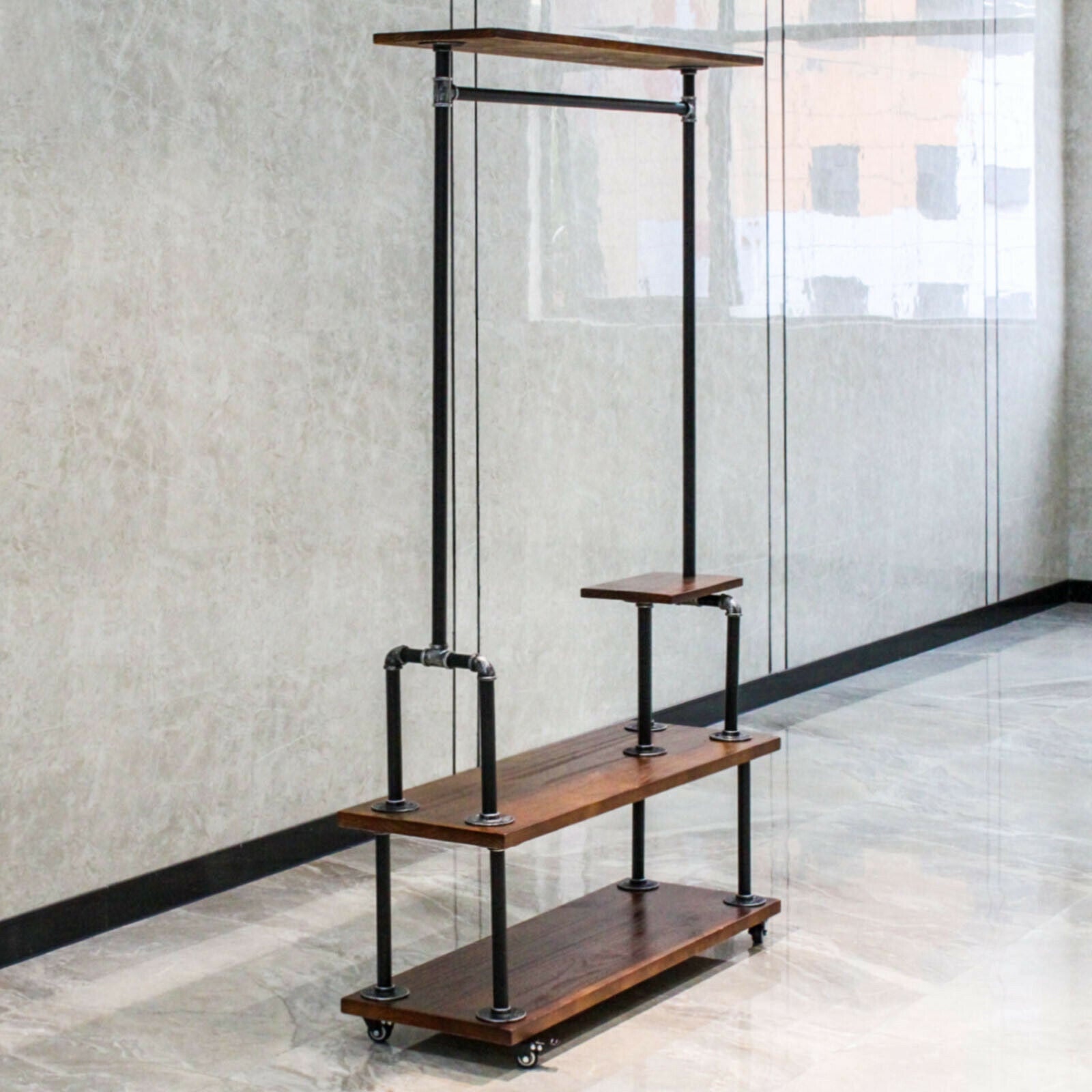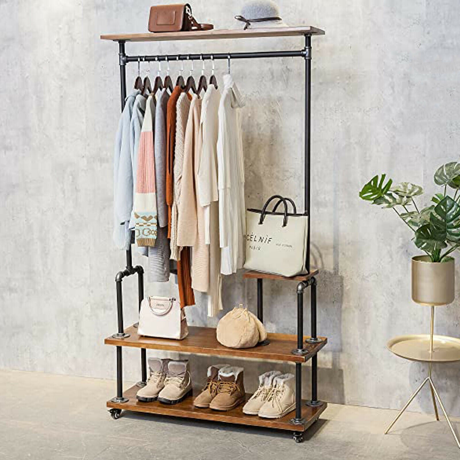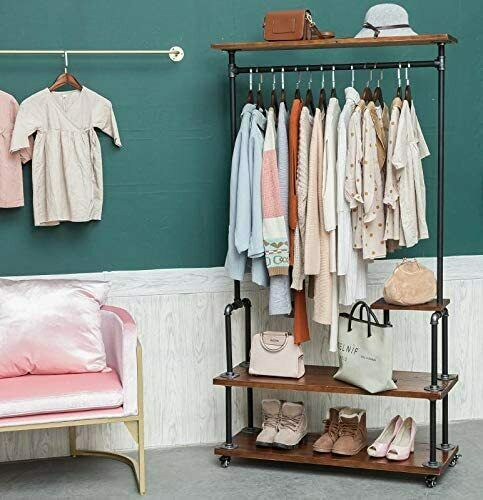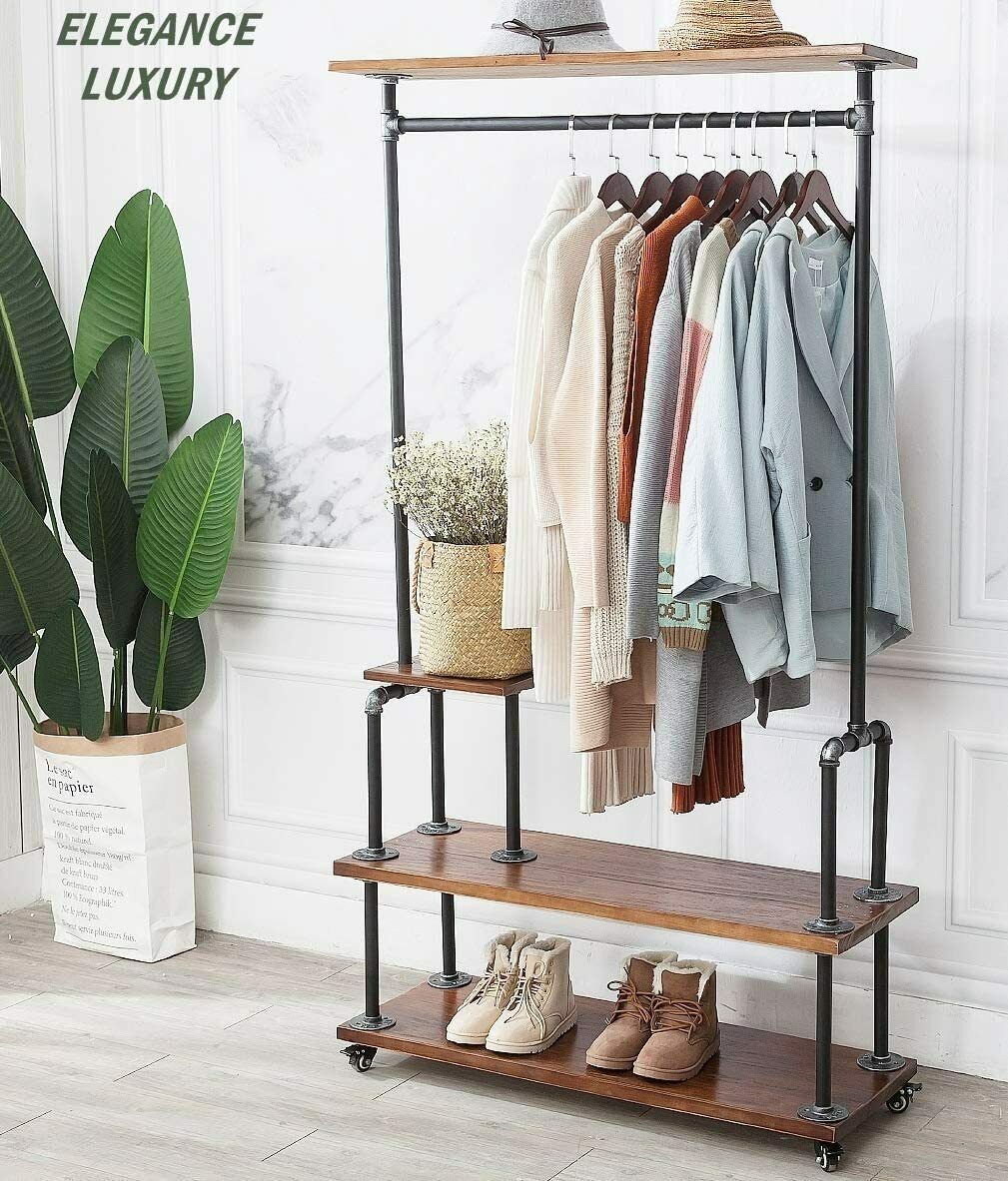 Heavy Duty Industrial Clothes Rail Steampunk Clothes Rack Hall Tree w/Wheels UK