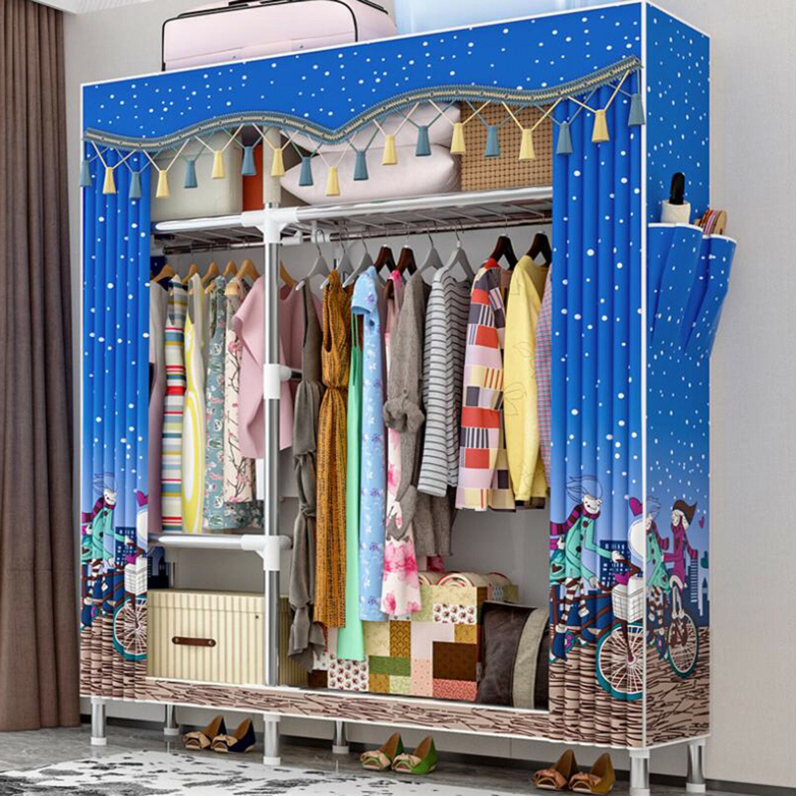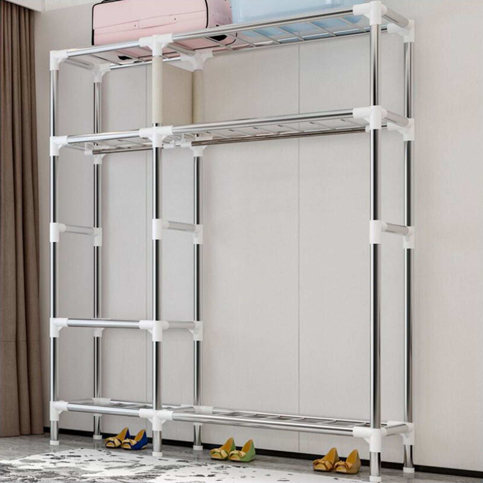 Heavy Duty Large Closet Wardrobe Clothes Storage Dual Hanging Rail Rack Cupboard