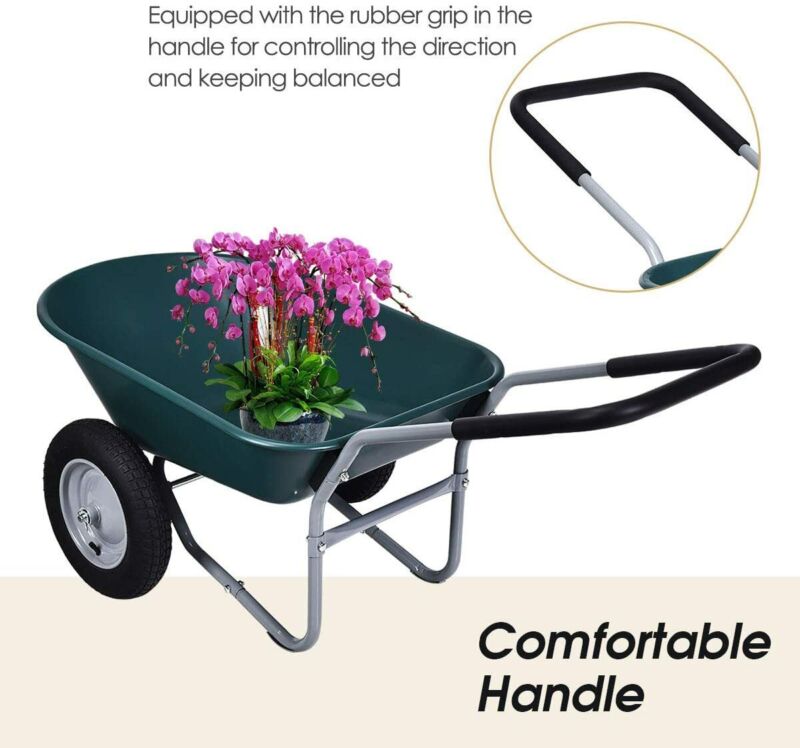 Heavy Duty Plastic Two Wheeled Garden Yard Wheelbarrow Pneumatic Tyre 150KG