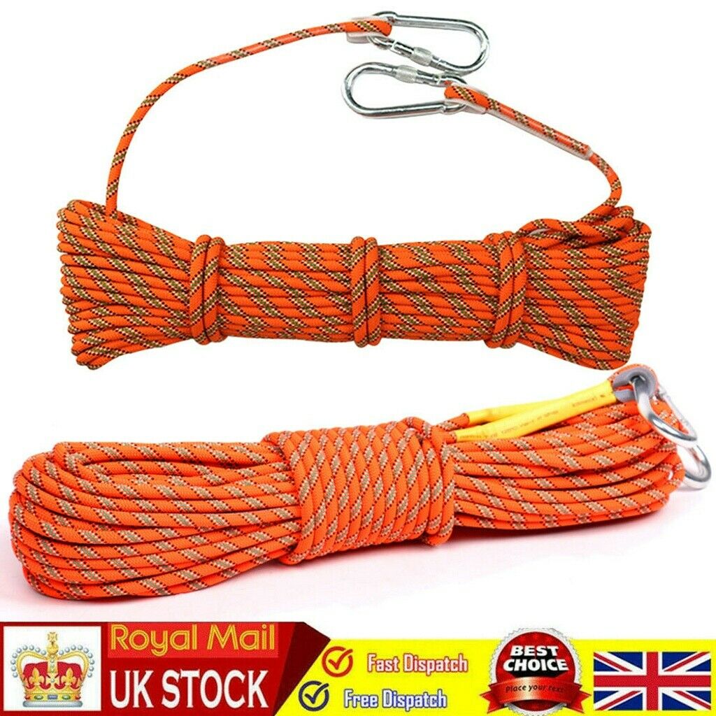 Heavy Duty Rock Climbing Rope Cord 20m 10mm Outdoor Safety Rescue Use Emergency