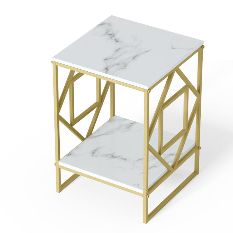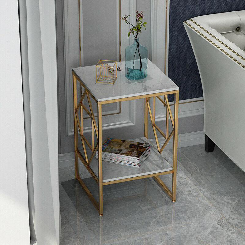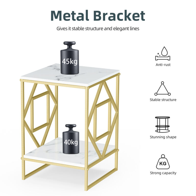 Heavy Duty Town Square Marble Table Bedside Sofa Bed End/ Side Table Gold Frame