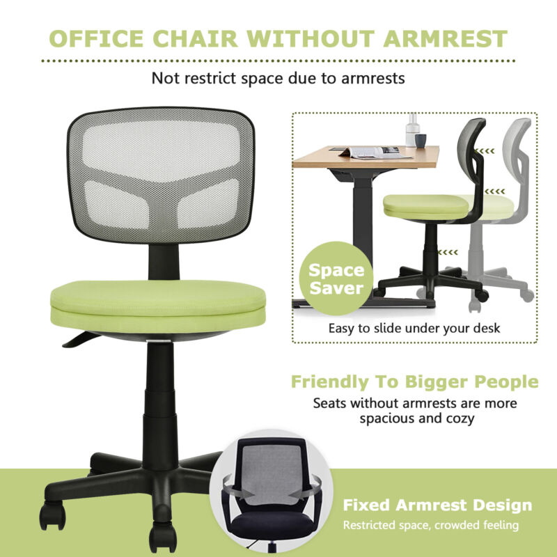Height Adjustable Armless Mesh Computer Office Chair Y-shaped Lumbar Support