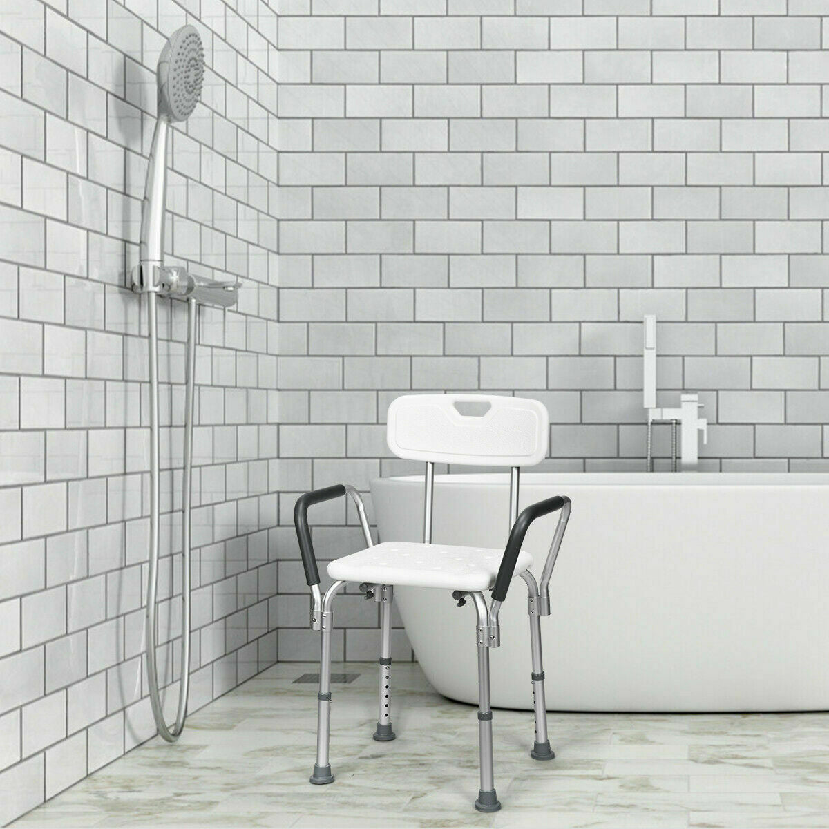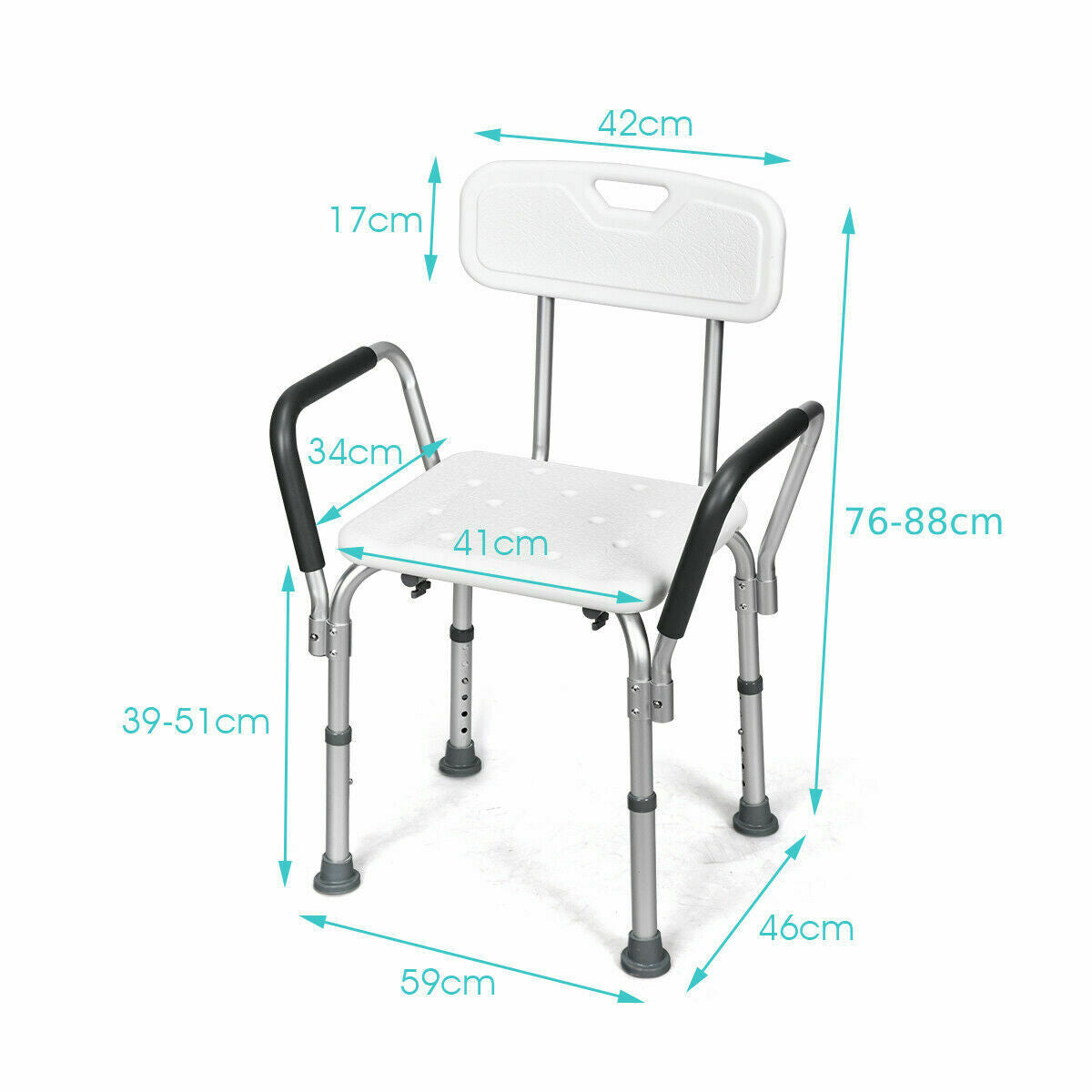 Height Adjustable Padded Tub Bath Seat Disability Shower Chair Stool W/ Armrest