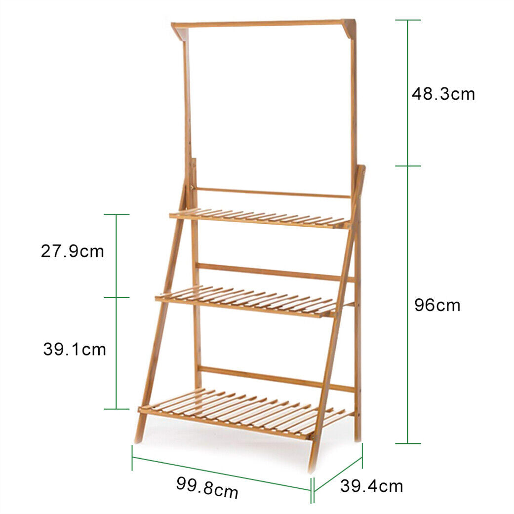 Height Adjustable Wooden Plant Stand Flower Pots Ladder Shelf with Hanging Rack