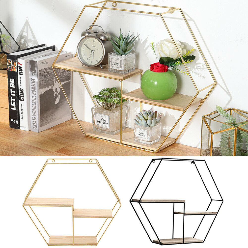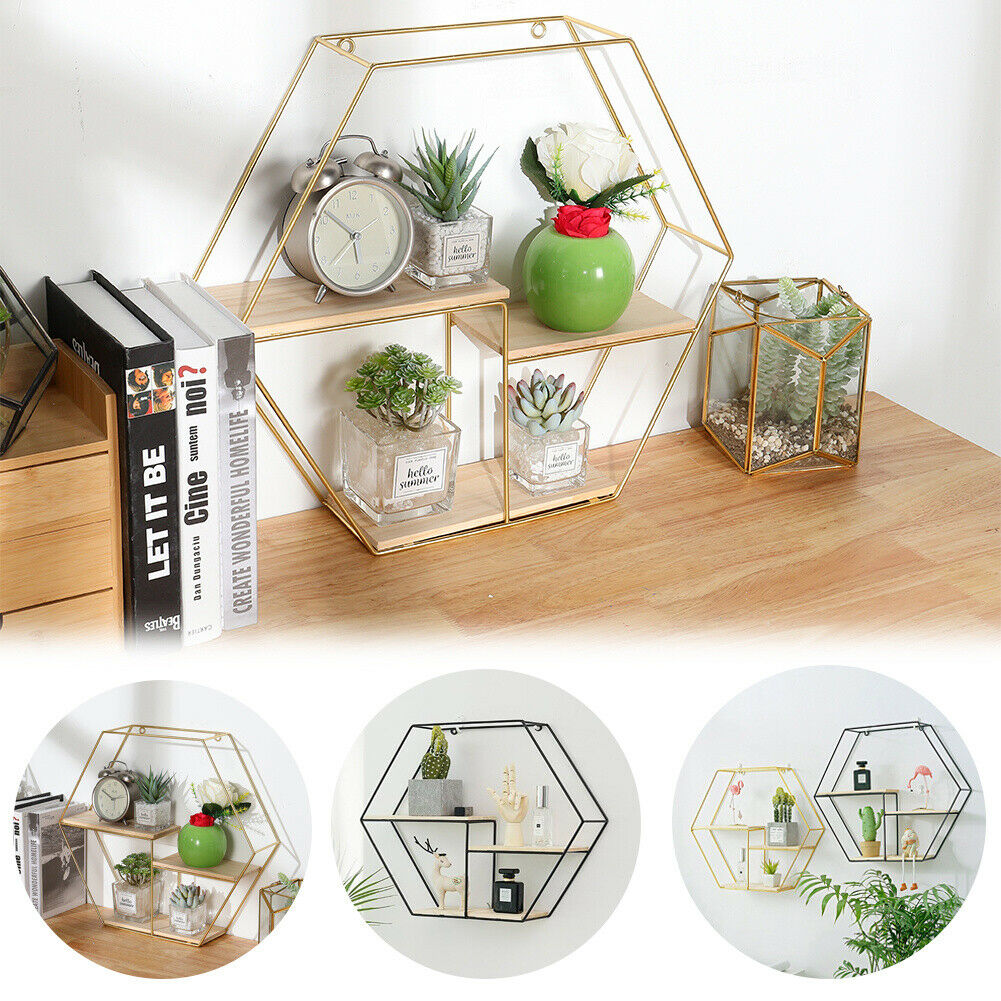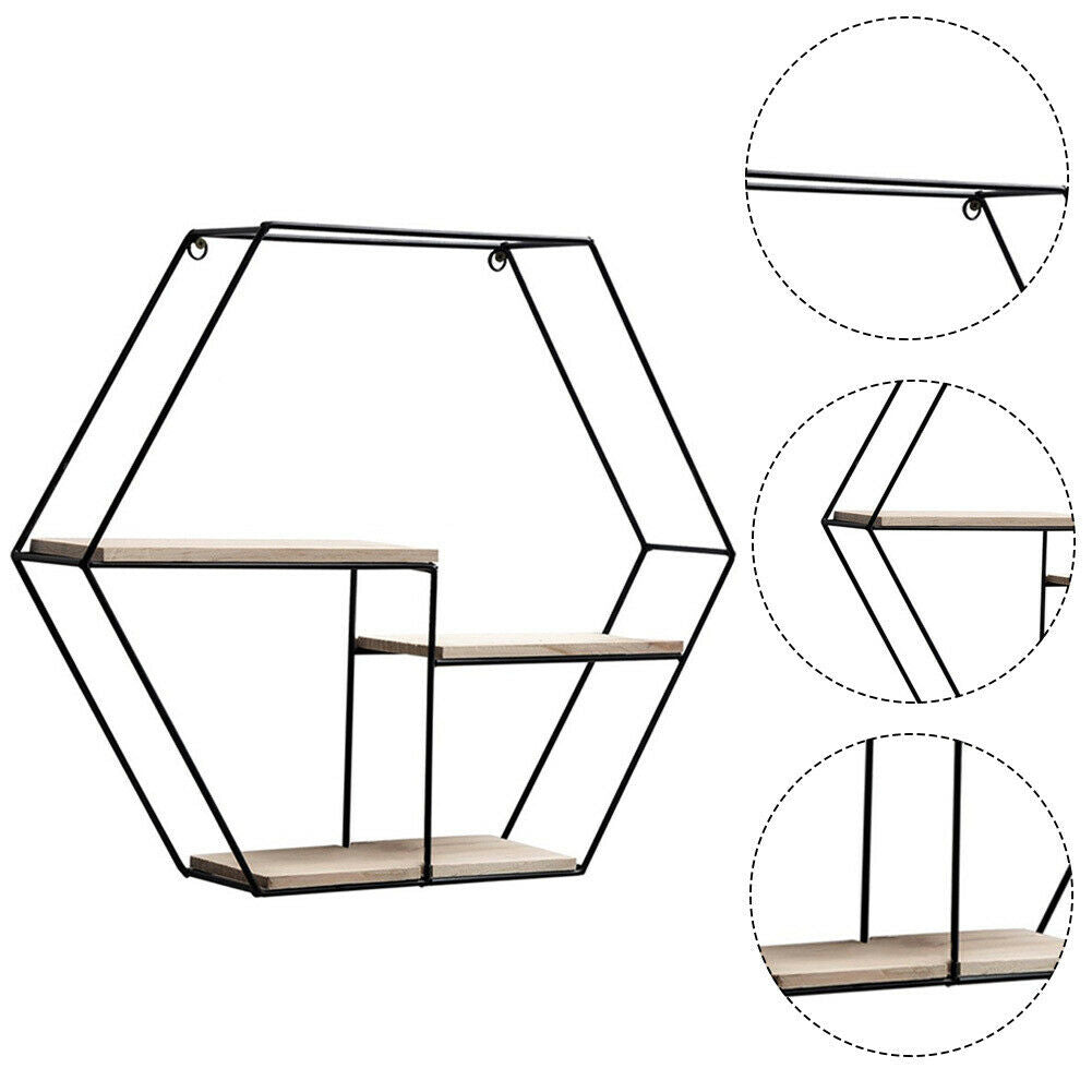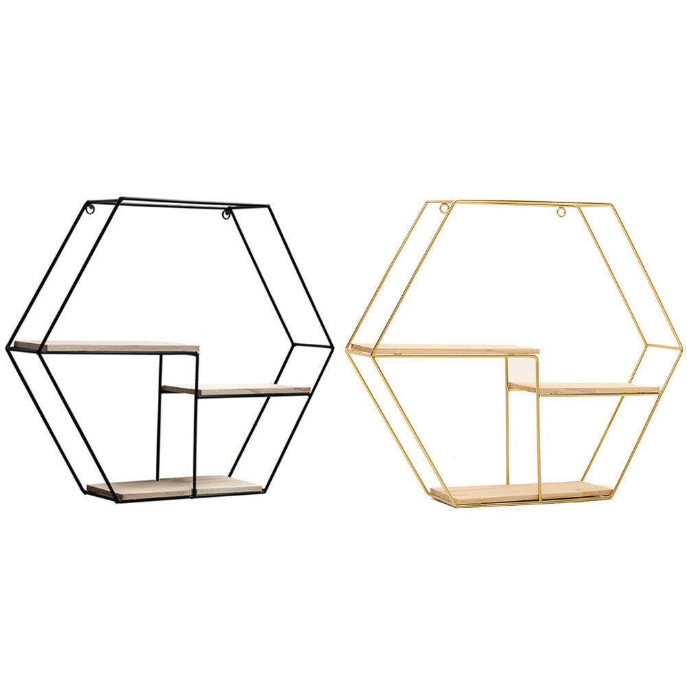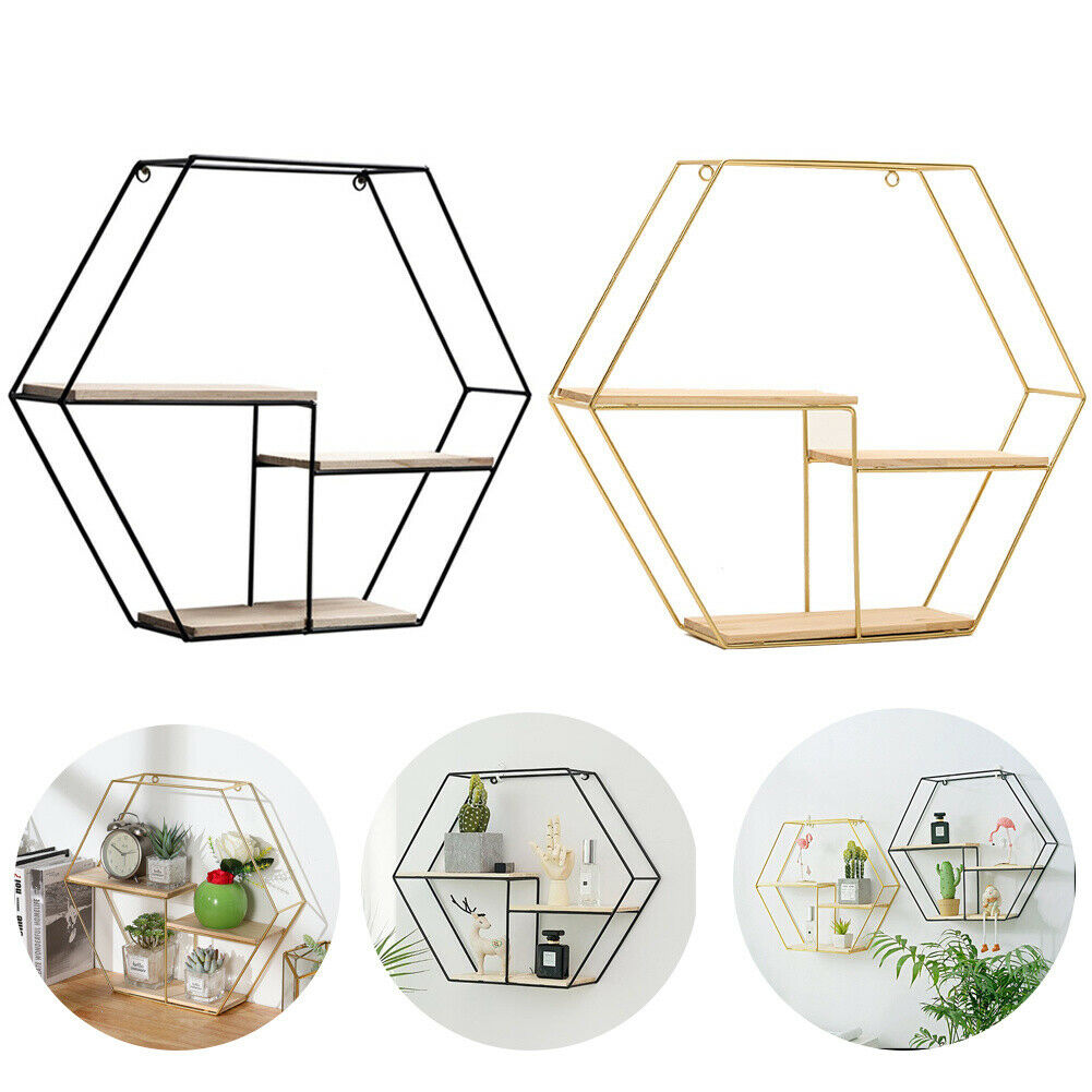 Hexagon Metal Wire Wall Shelf Loft Dorm Decor Storage Floating Shelf Display NEW