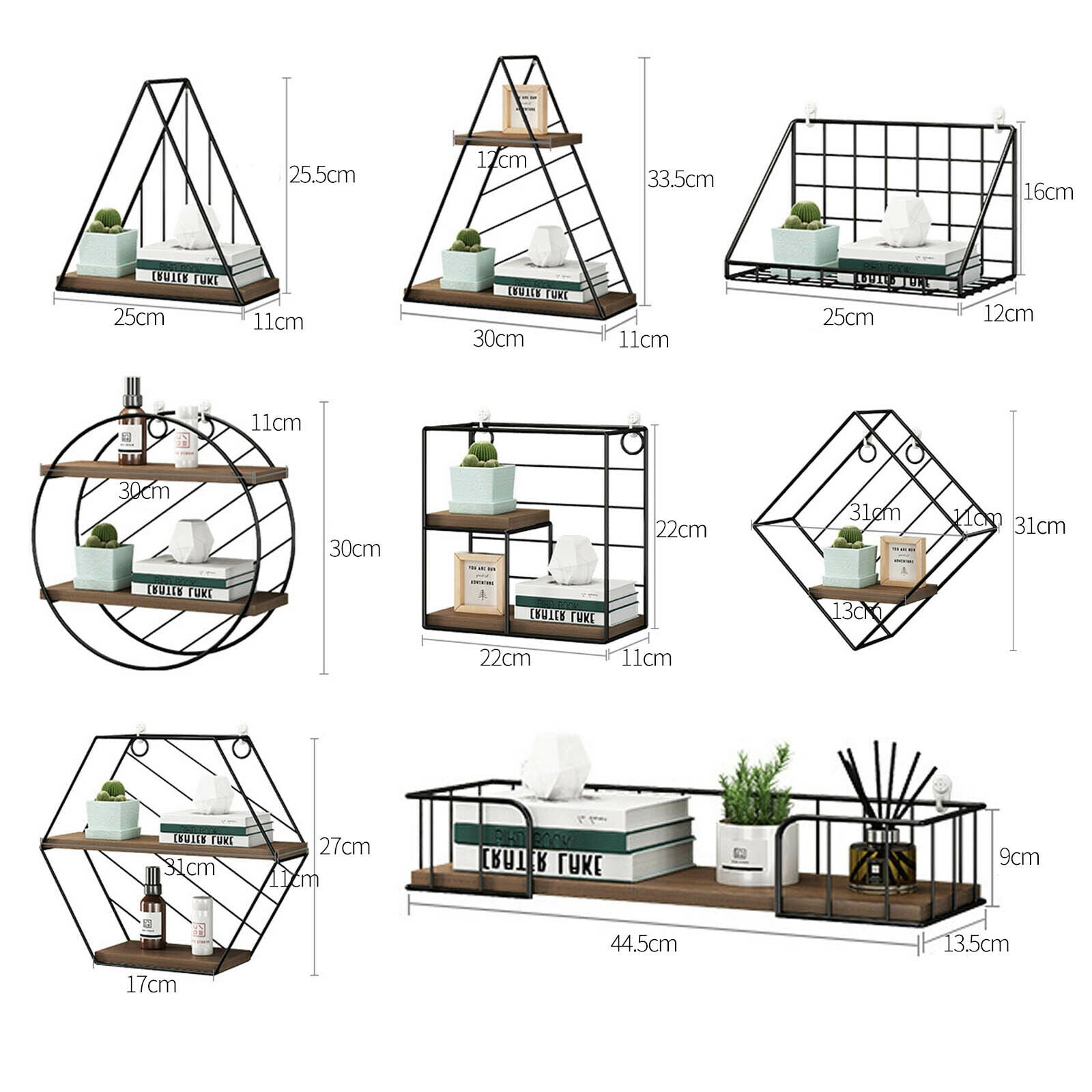 Hexagon Metal Wire Wall Shelf Loft Room Decro Display Floating Storage Shelf UK