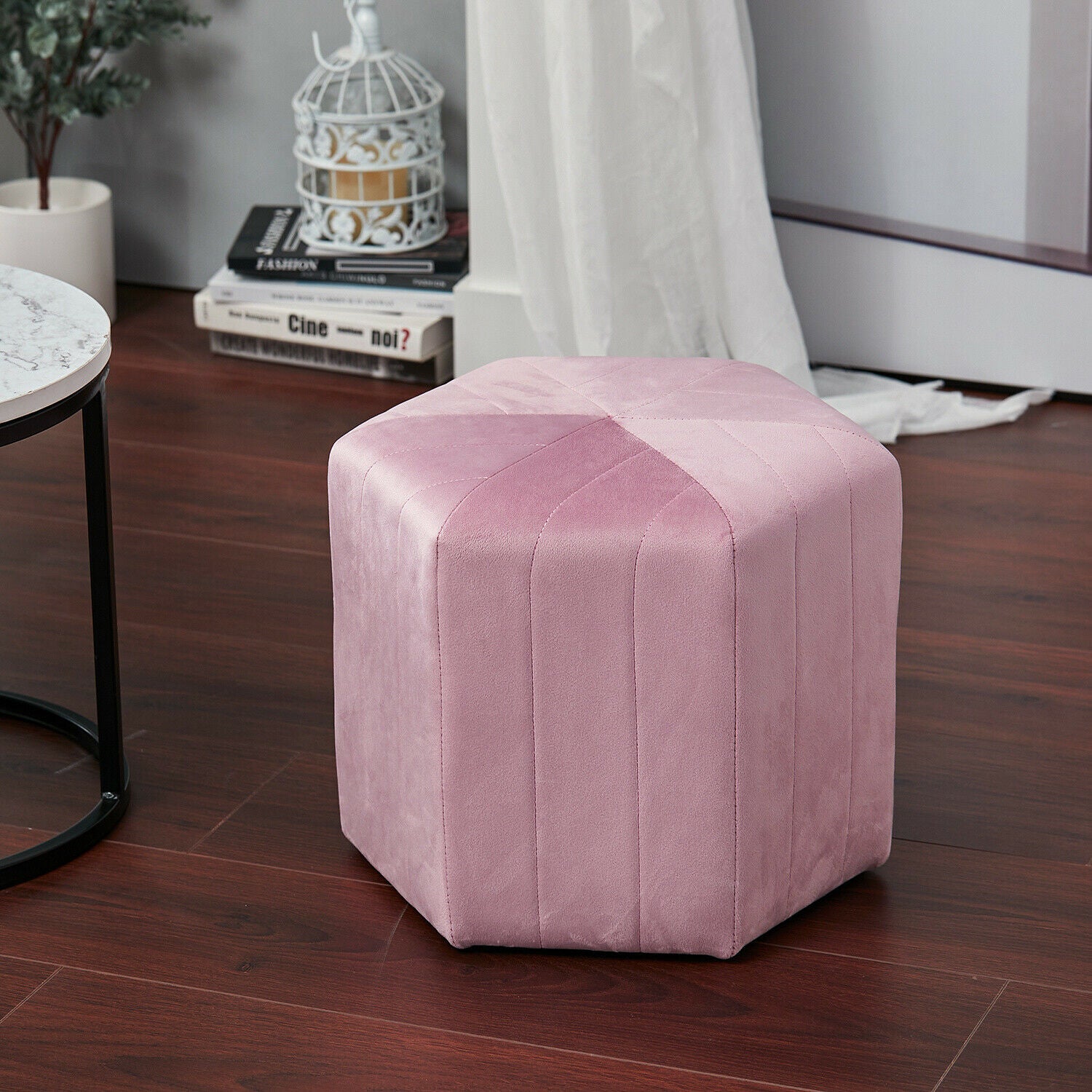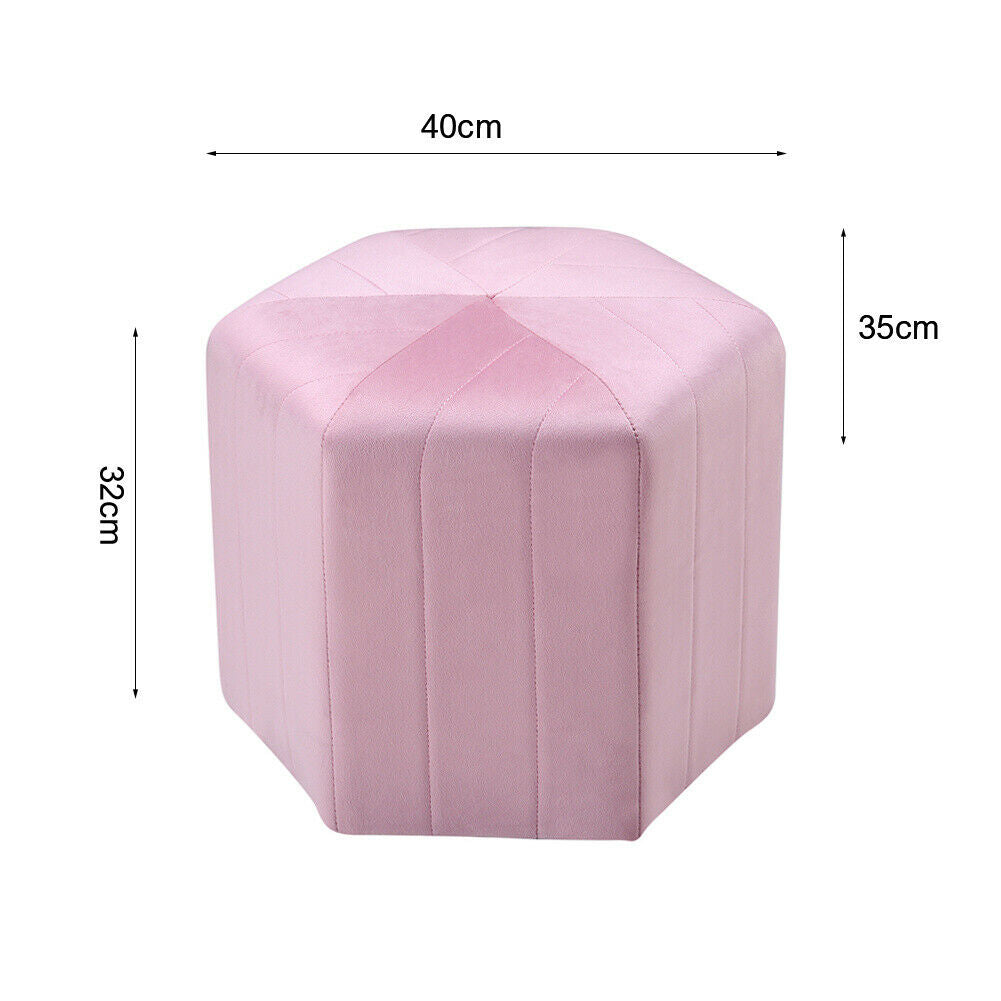 Hexagonal Stool Velvet Padded Pouffe Footstool Side Chair Living Room Bedroom