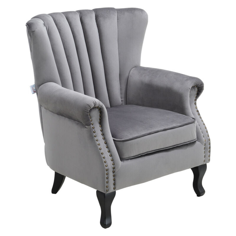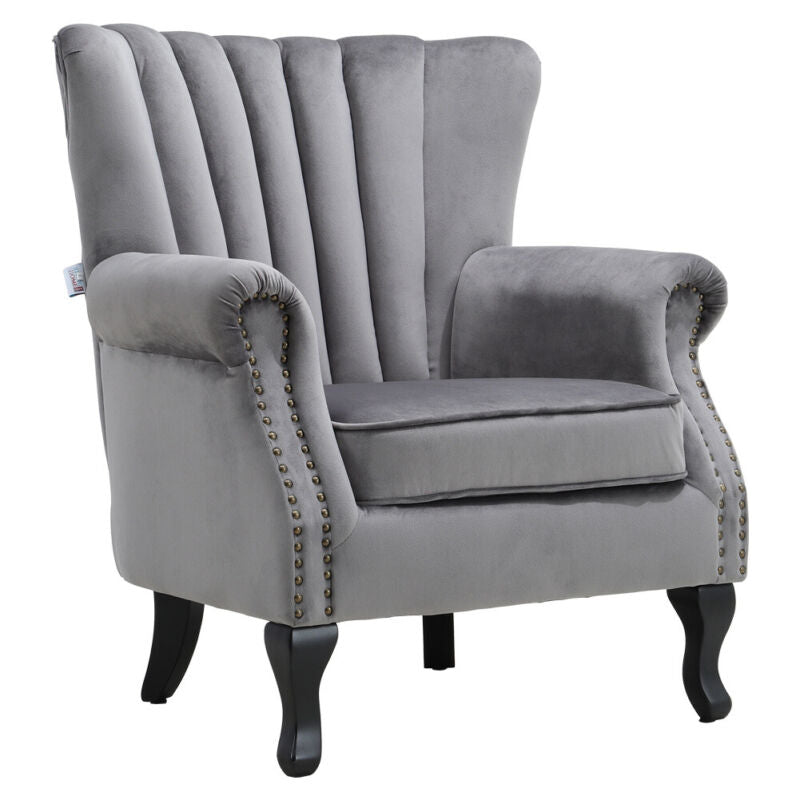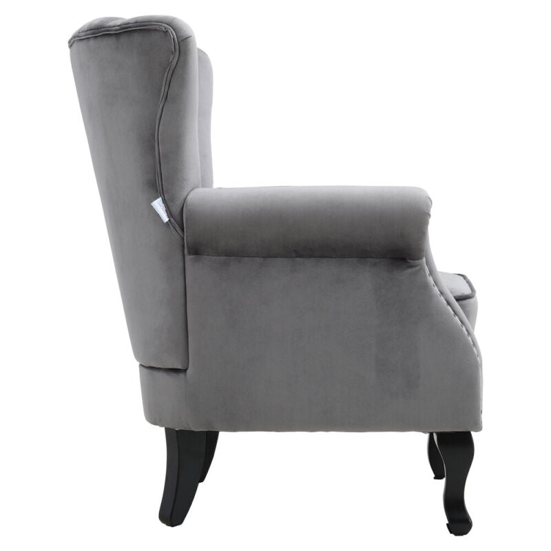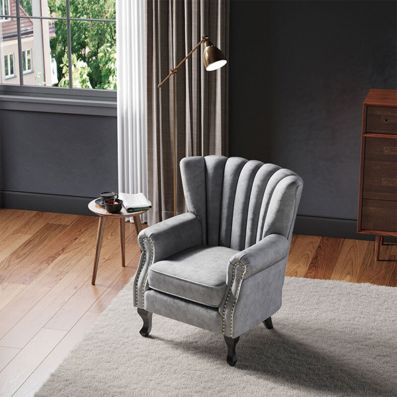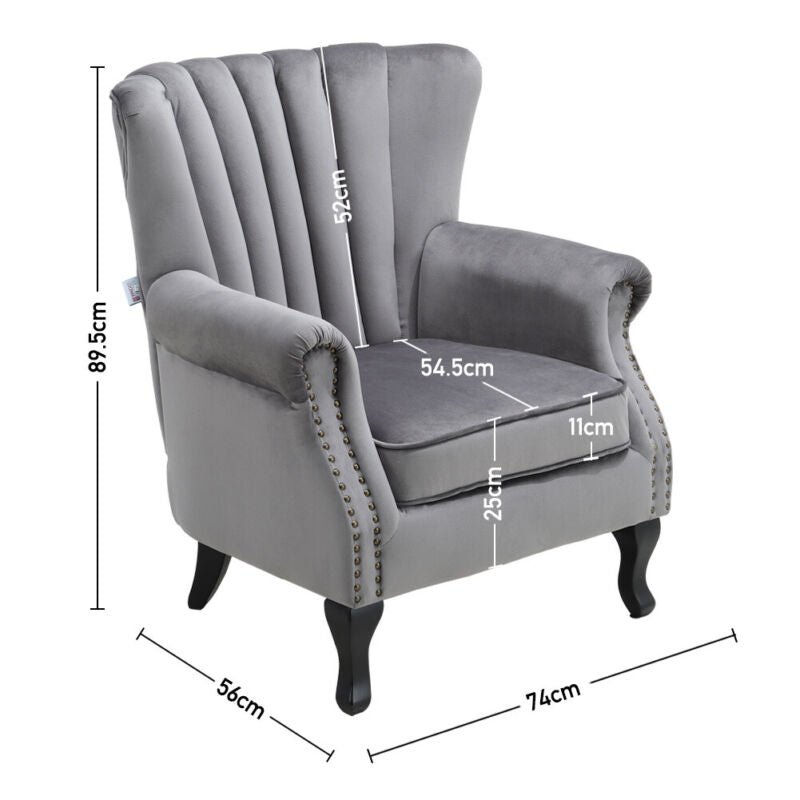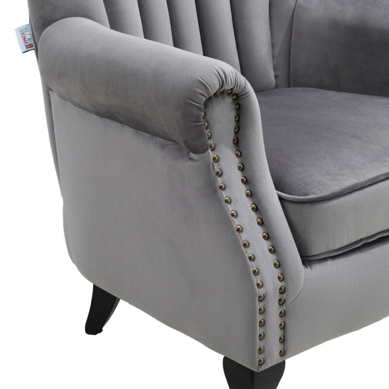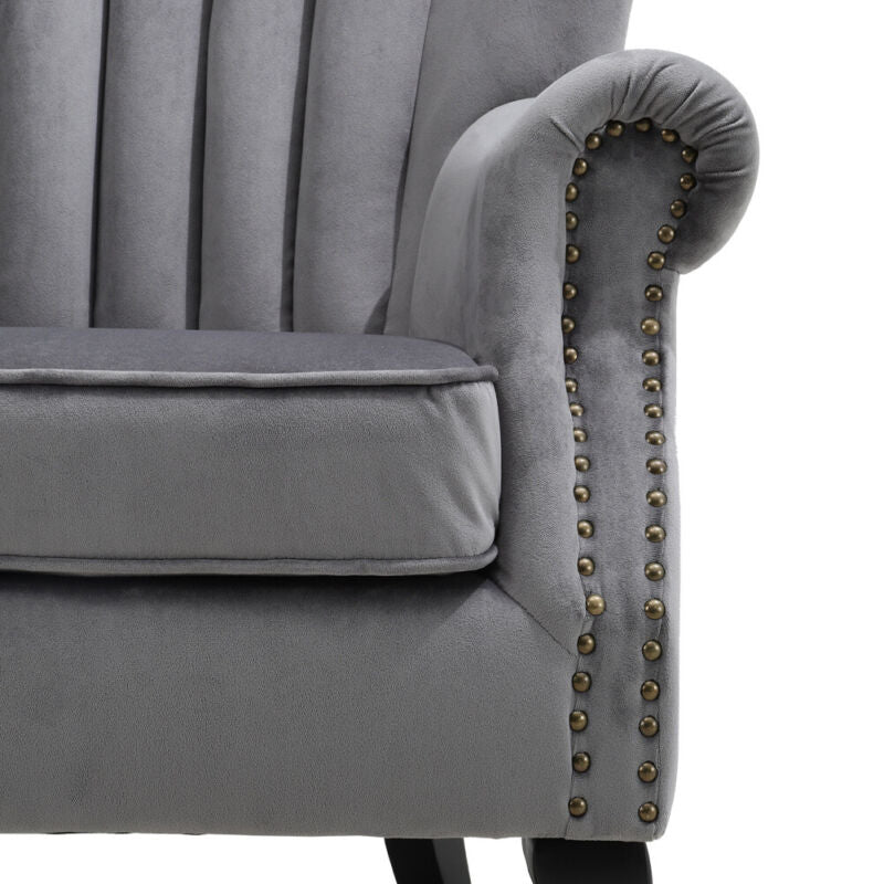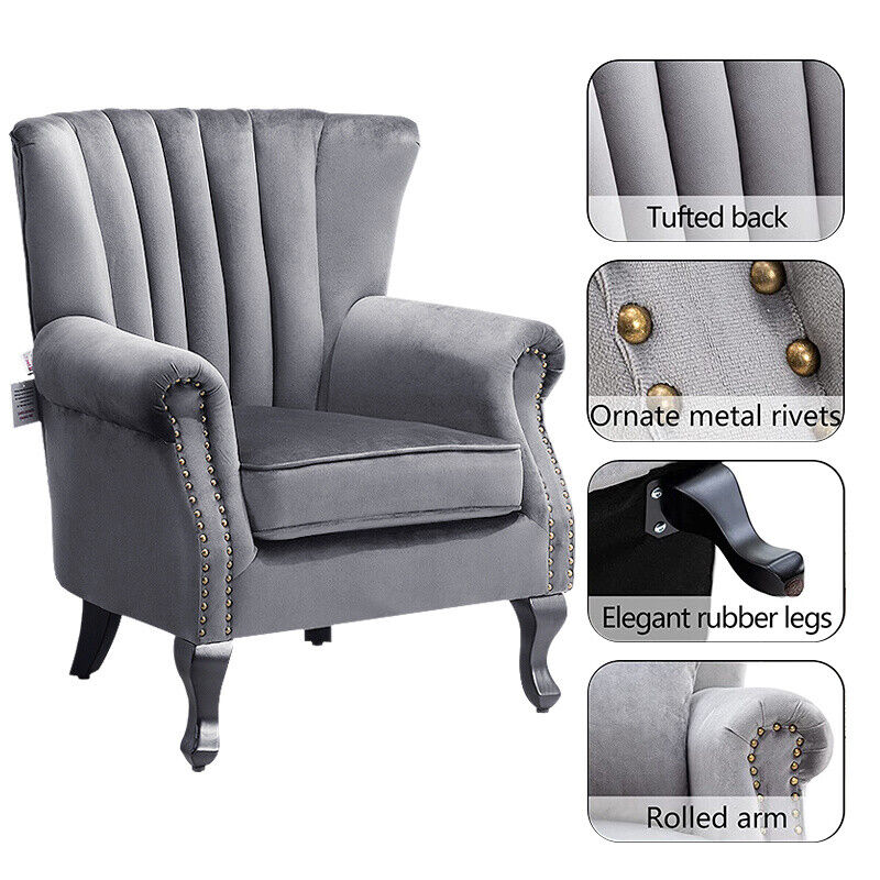 High Back Armchair Lounge Chair Sofa with Studs Nailhead Upholstery Velvet Seat