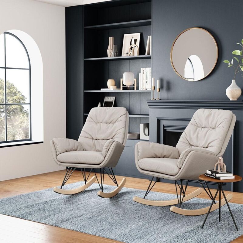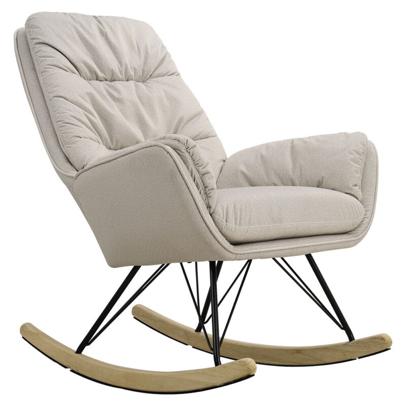 High Back Rocking Chair Recliner Armchair Beige Velvet Upholstered Rocker Seat