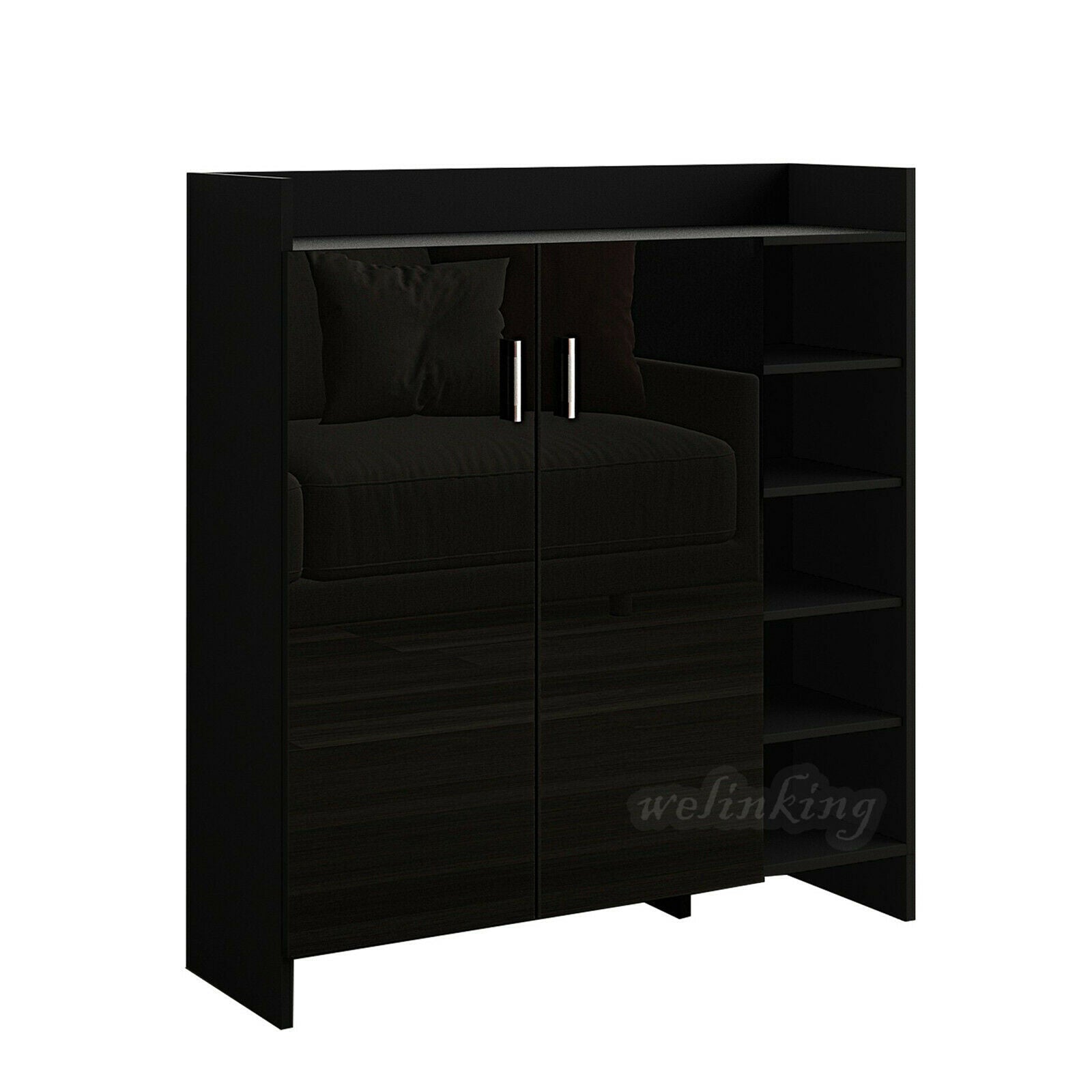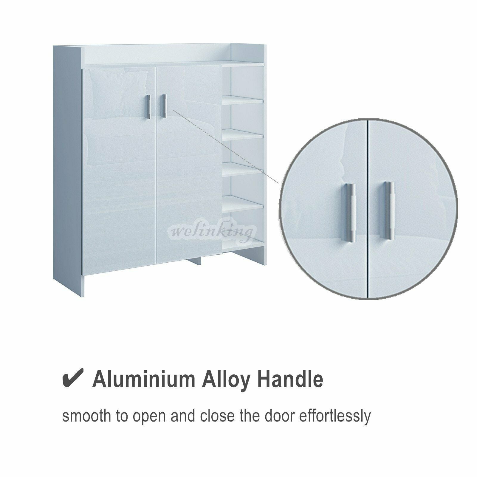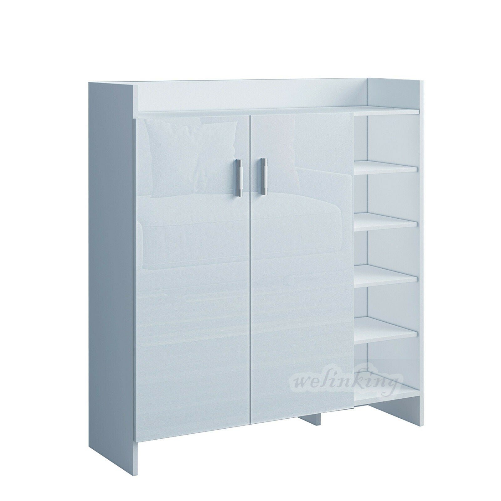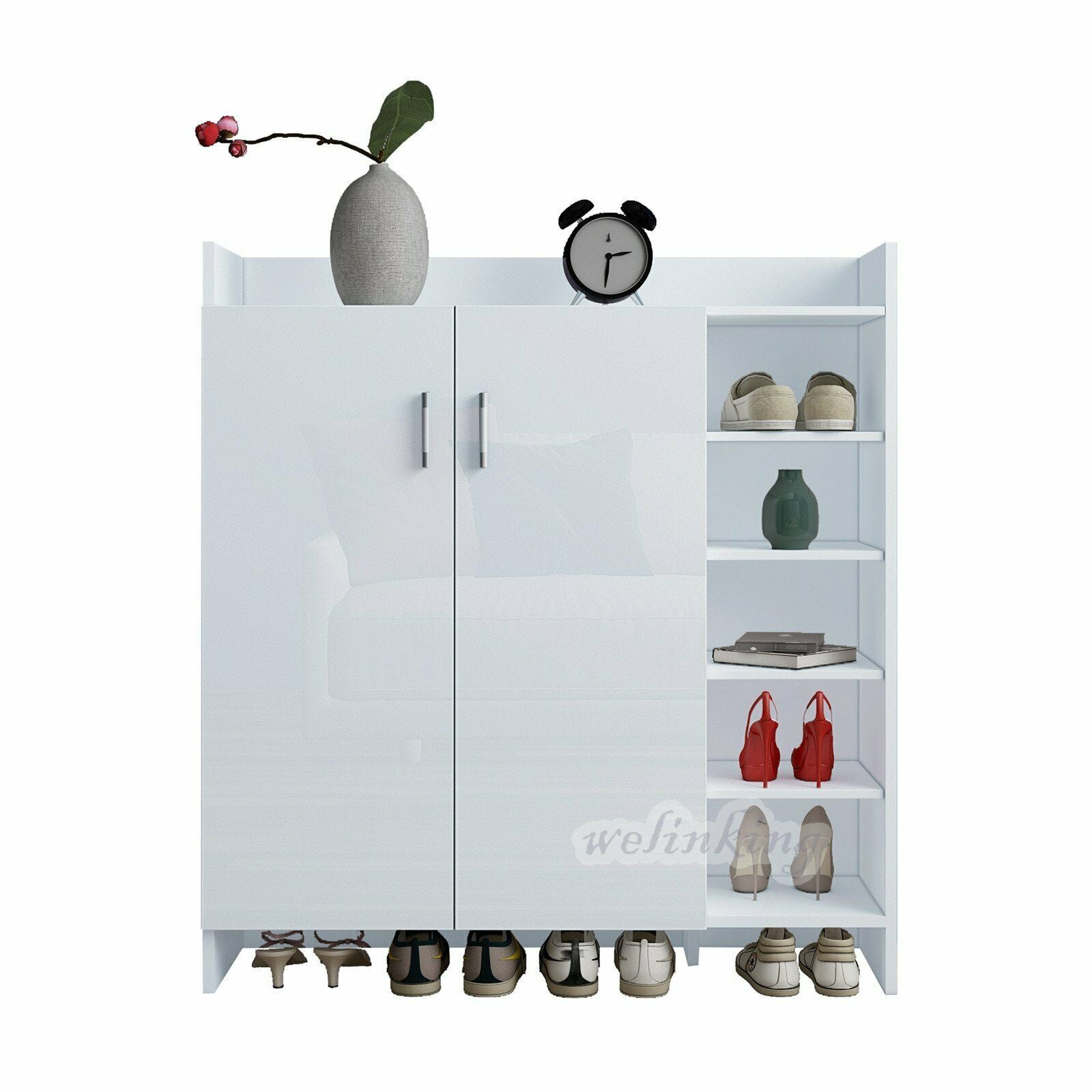 High Gloss 2 Doors Front Shoe Cabinet Storage Footwear Organizer Stand Rack Unit