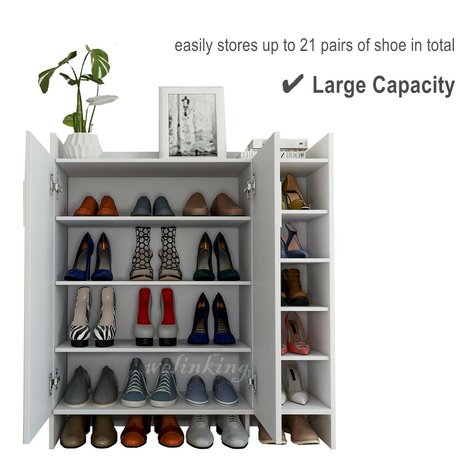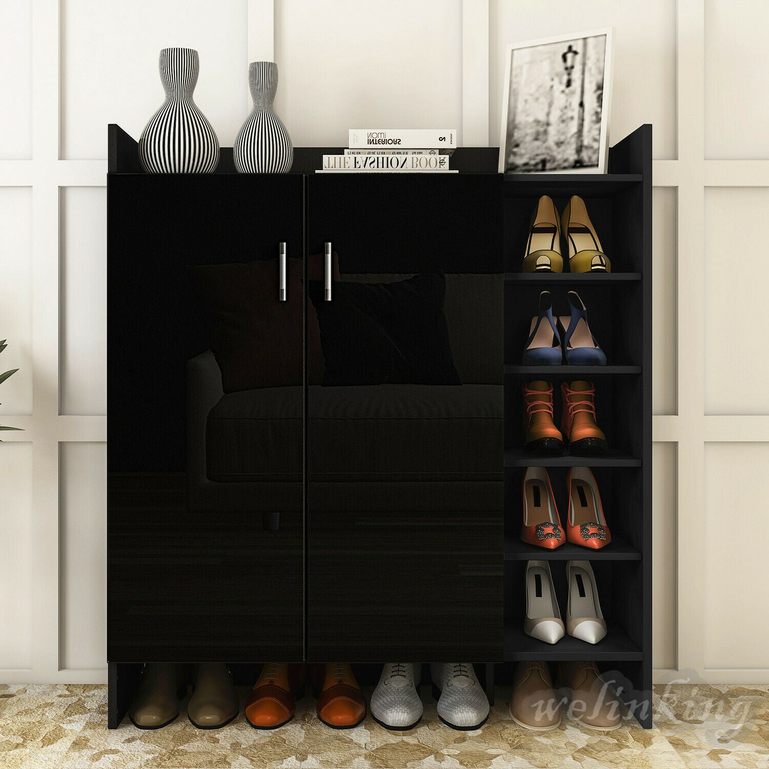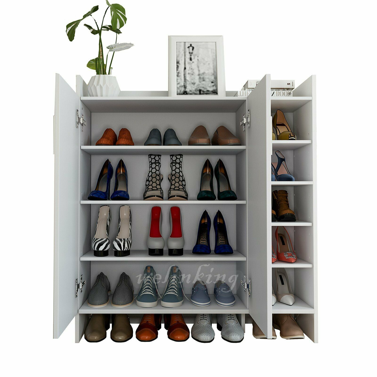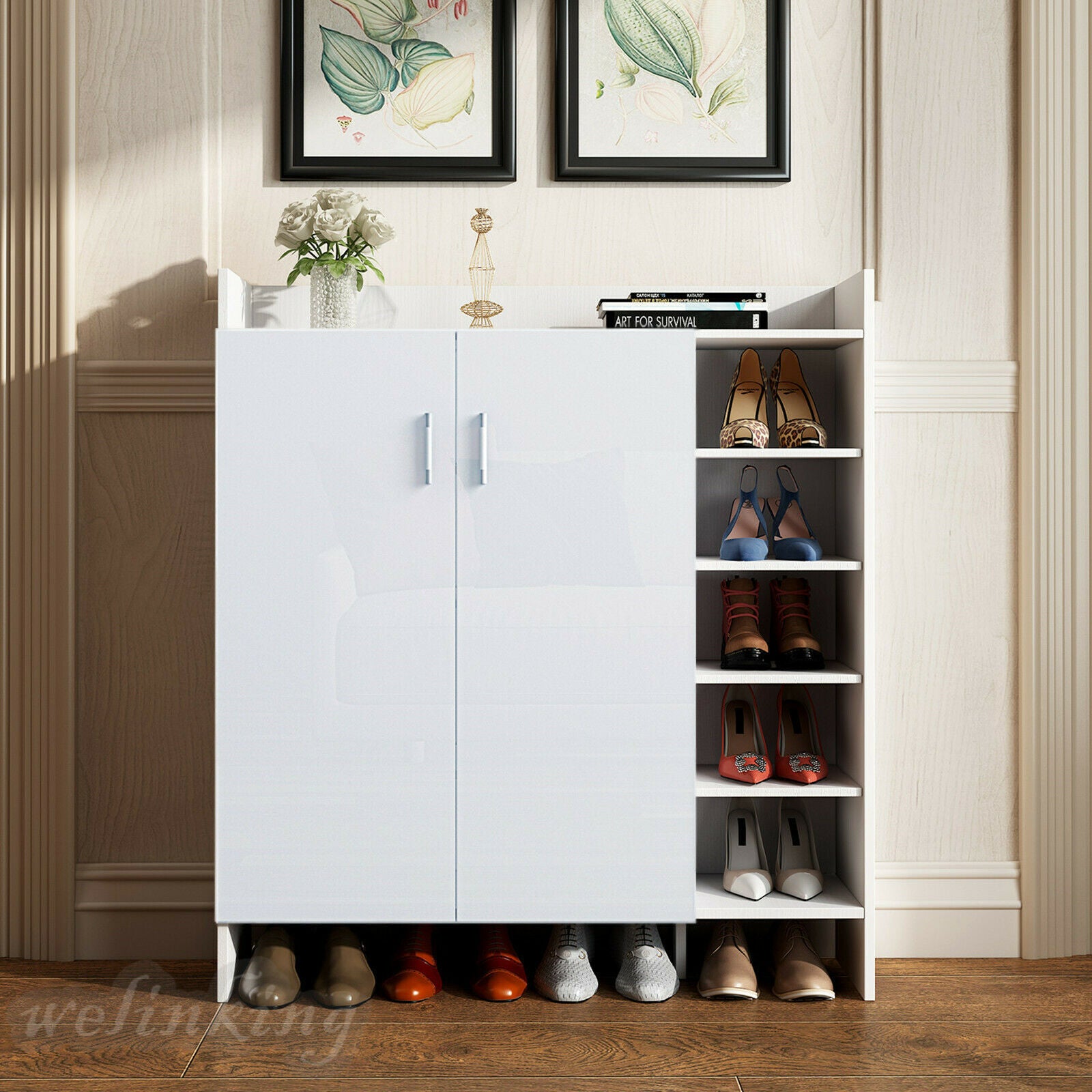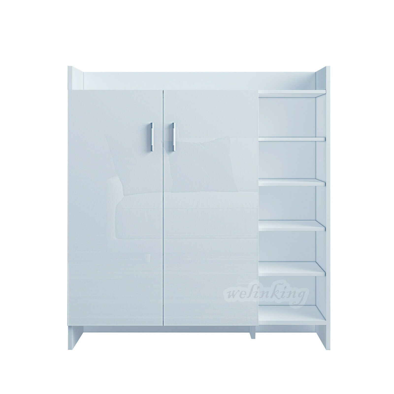 High Gloss 2 Doors Front Shoe Cabinet Storage Footwear Organizer Stand Rack Unit