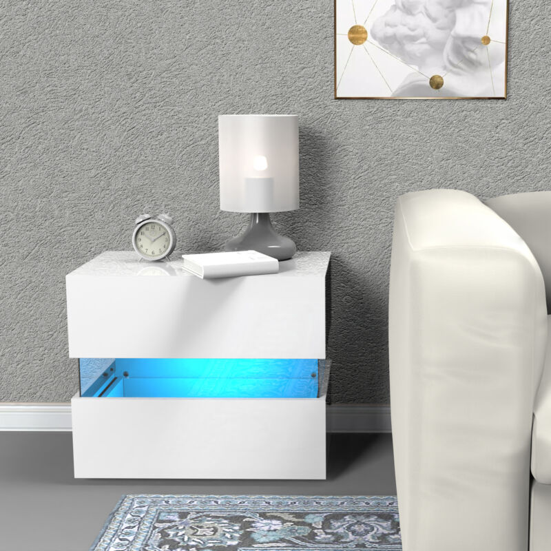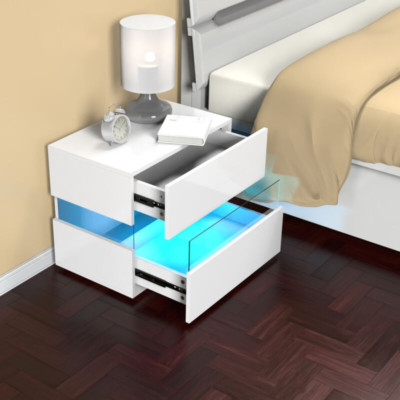 High Gloss Bedside Table Cabinet Nightstand Home Colorful RGB LED Lights Drawers