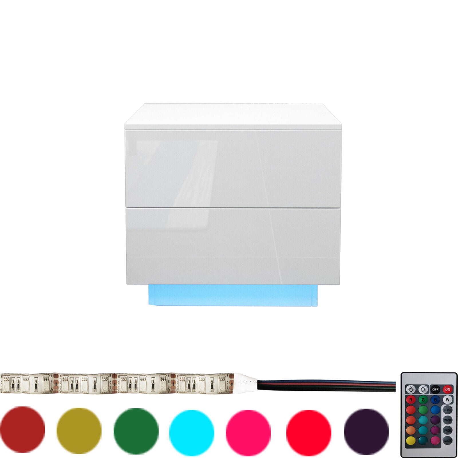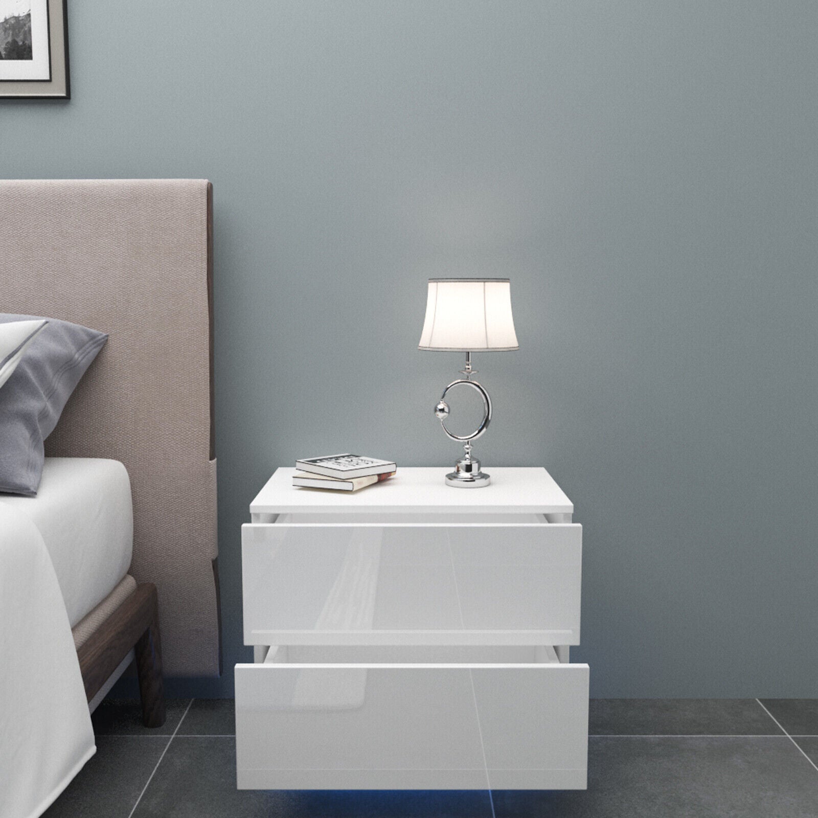 High Gloss Bedside Table Cabinets Cupboard w/ RGB Light Chest of Drawers Bedroom