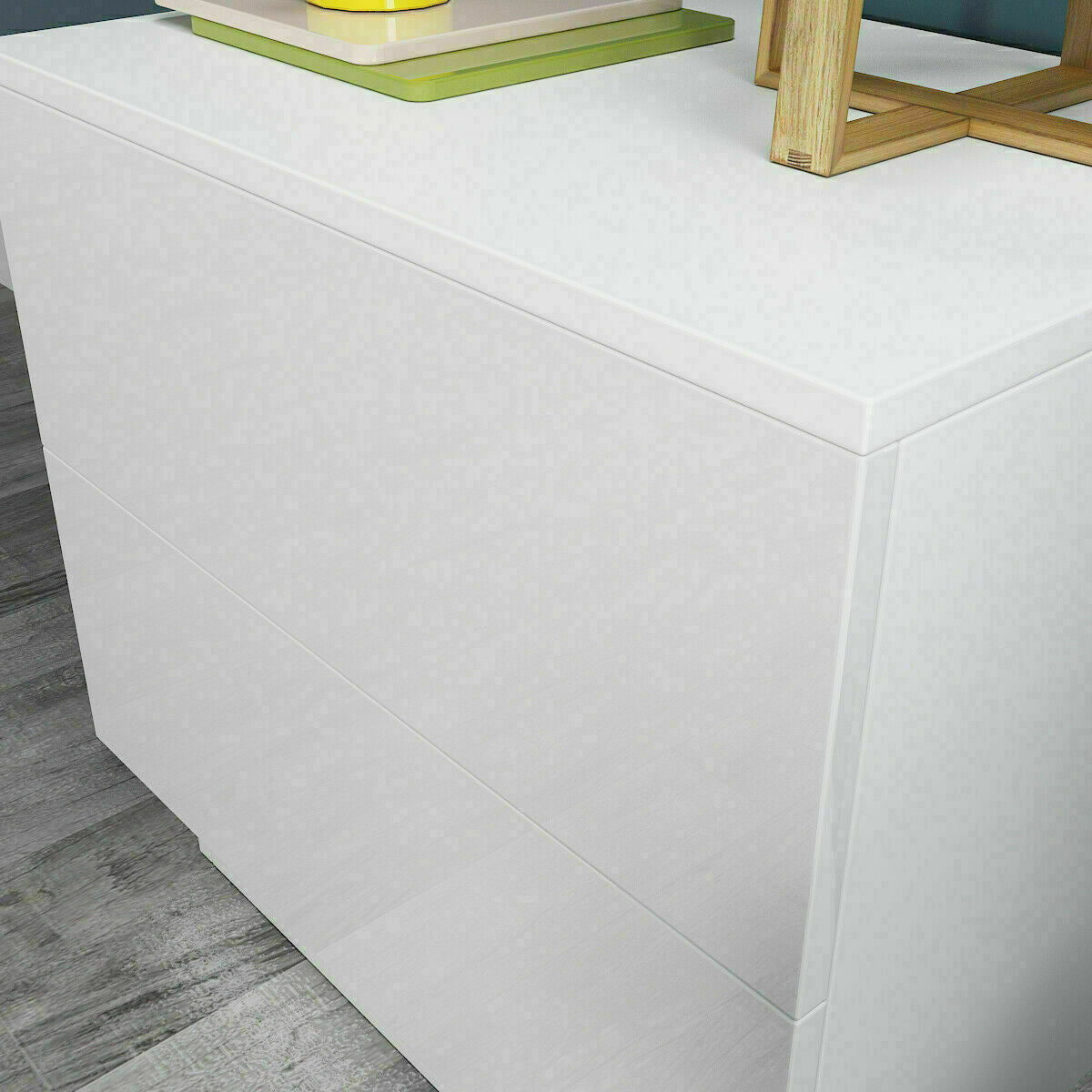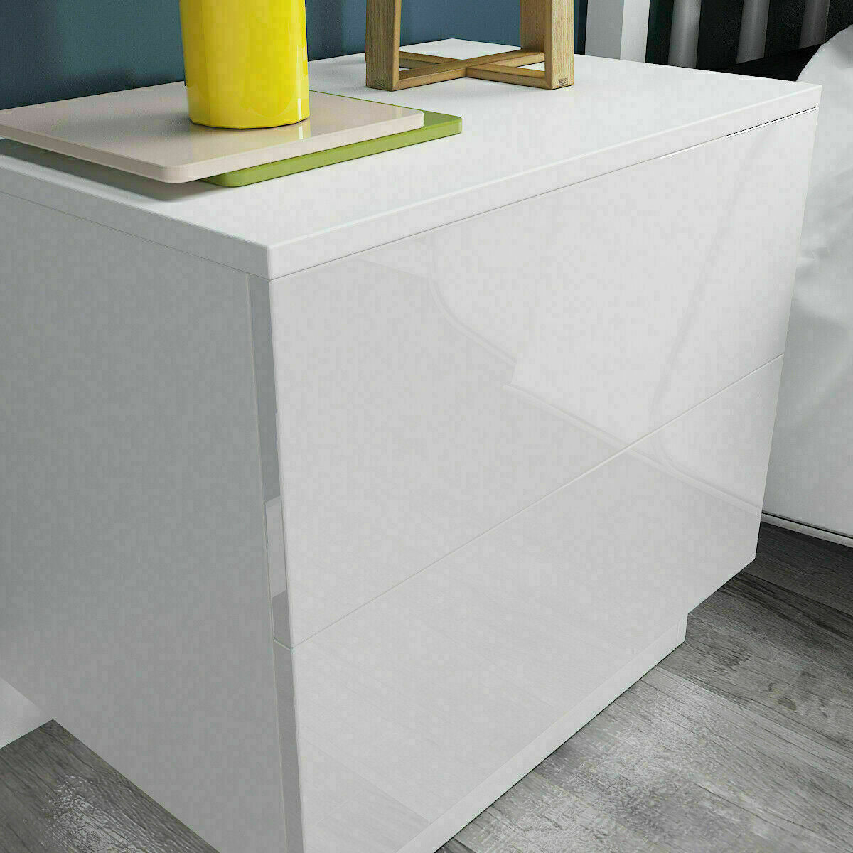 High Gloss Bedside Table Nightstand Cabinet 2 Drawers RGB LED Light Modern White