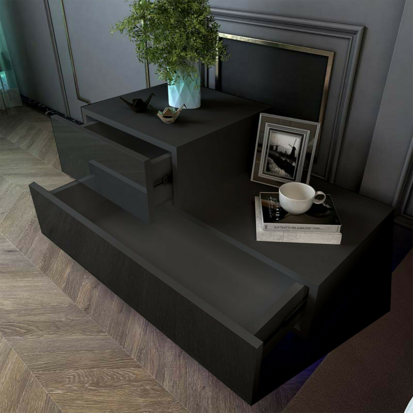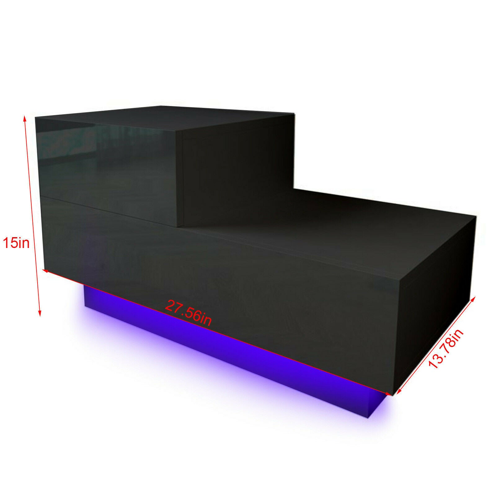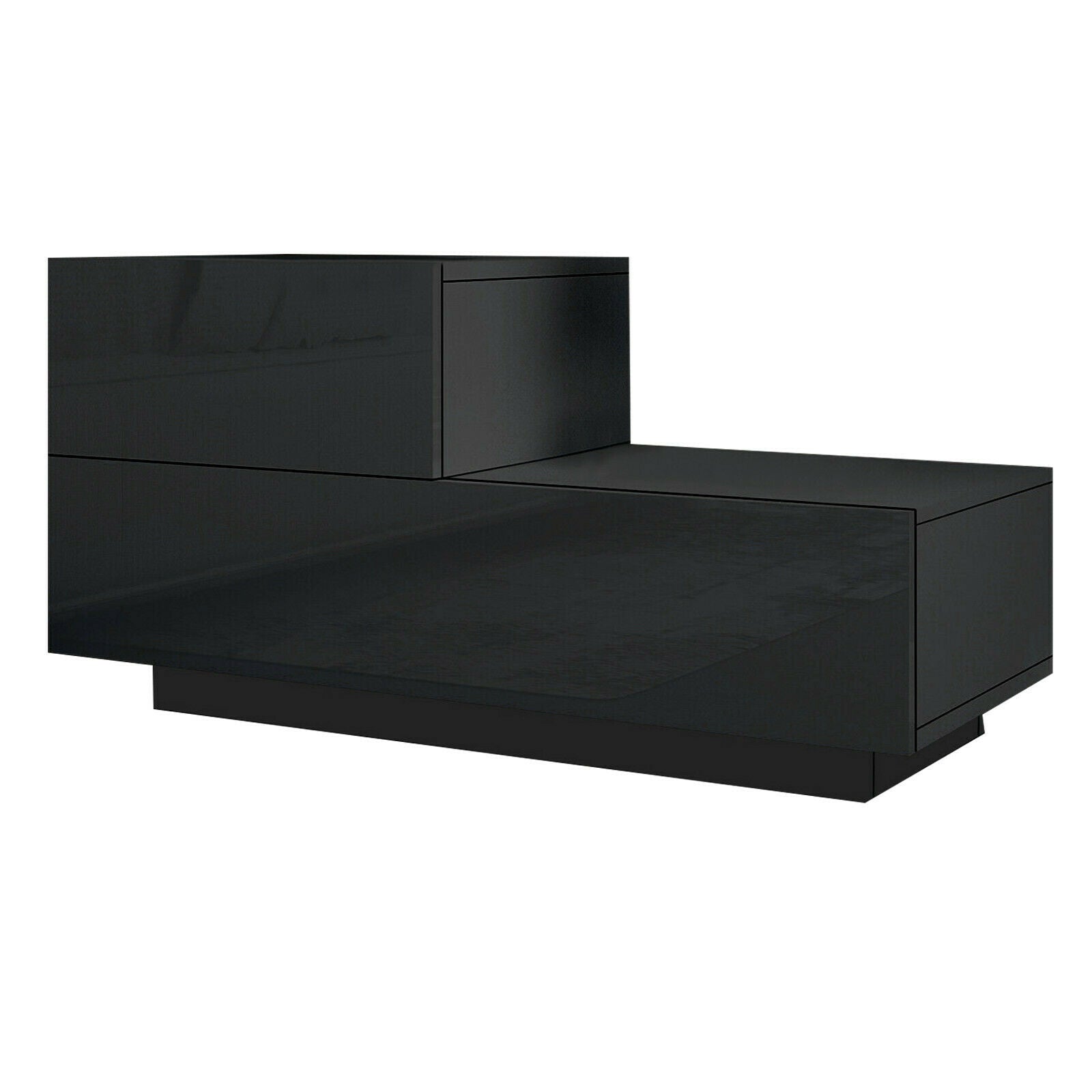 High Gloss Bedside Table Nightstand Cabinet Chest Of 2 Drawer RGB LED Light