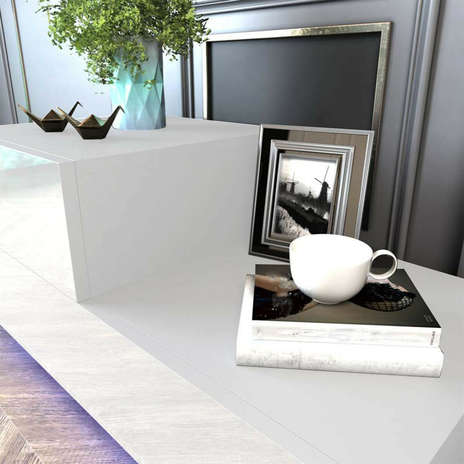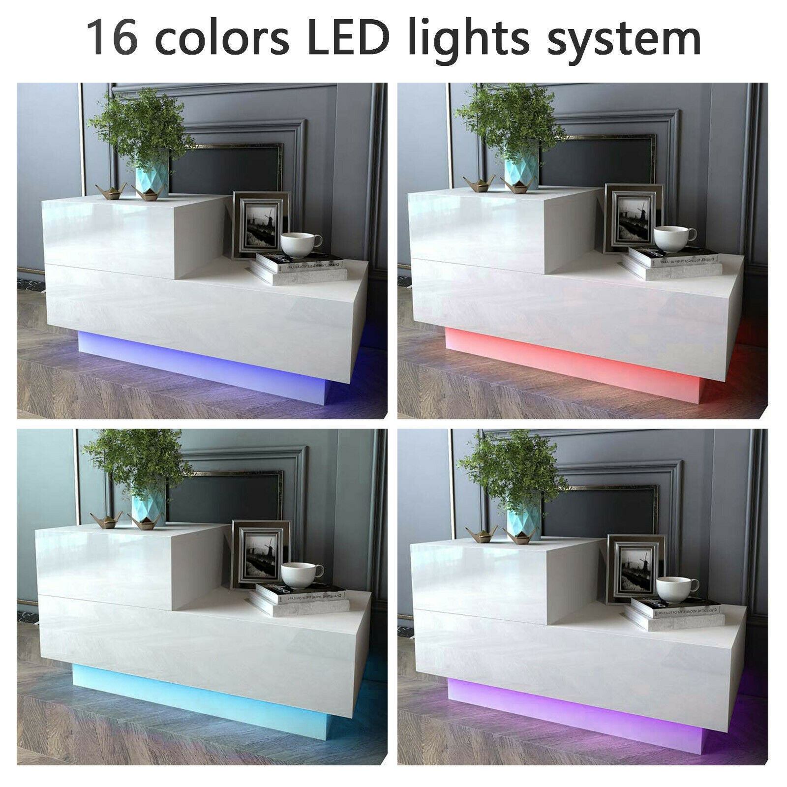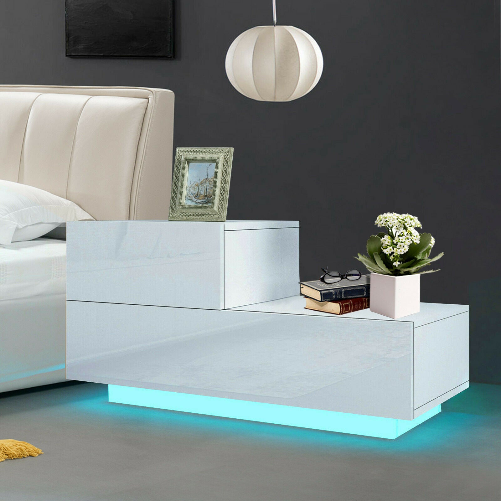 High Gloss Bedside Table Nightstand Cabinet Side Chest of Drawer RGB LED Bedroom