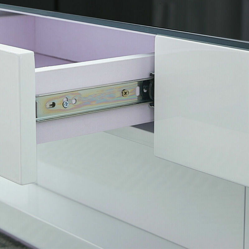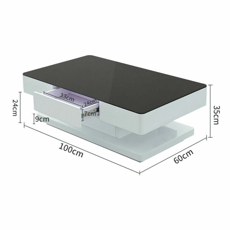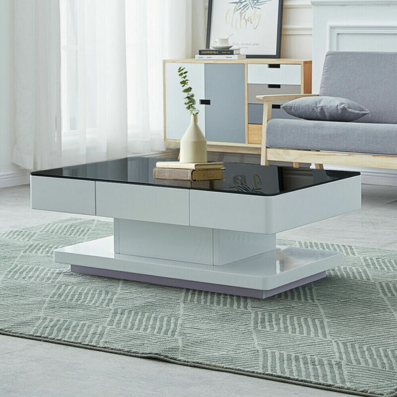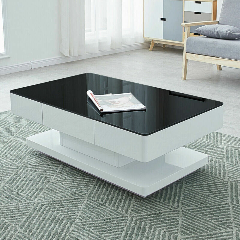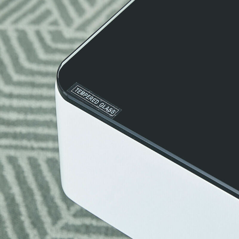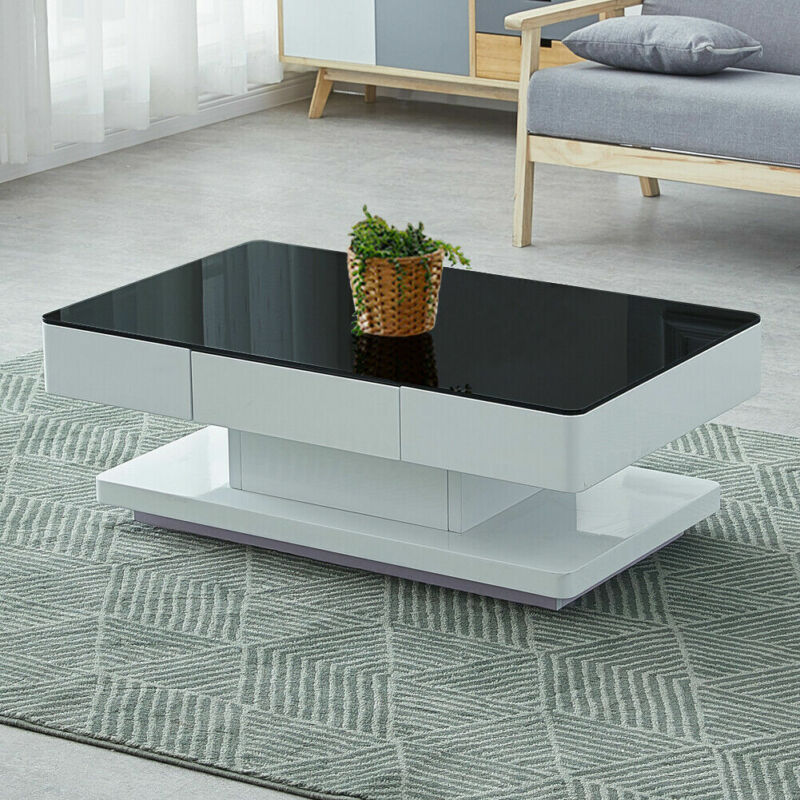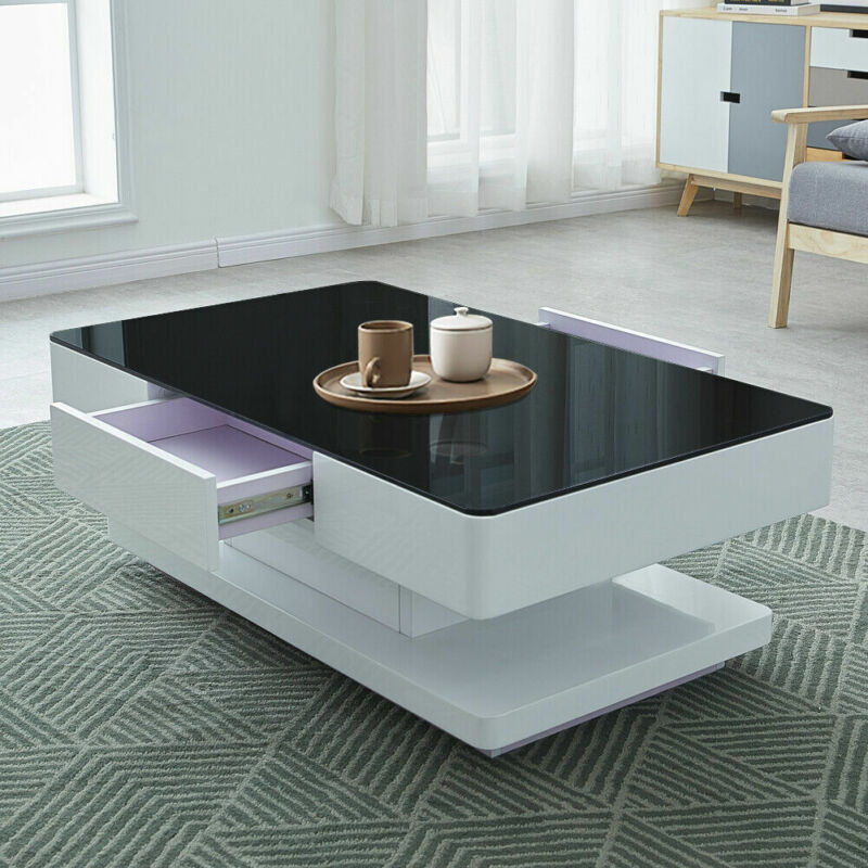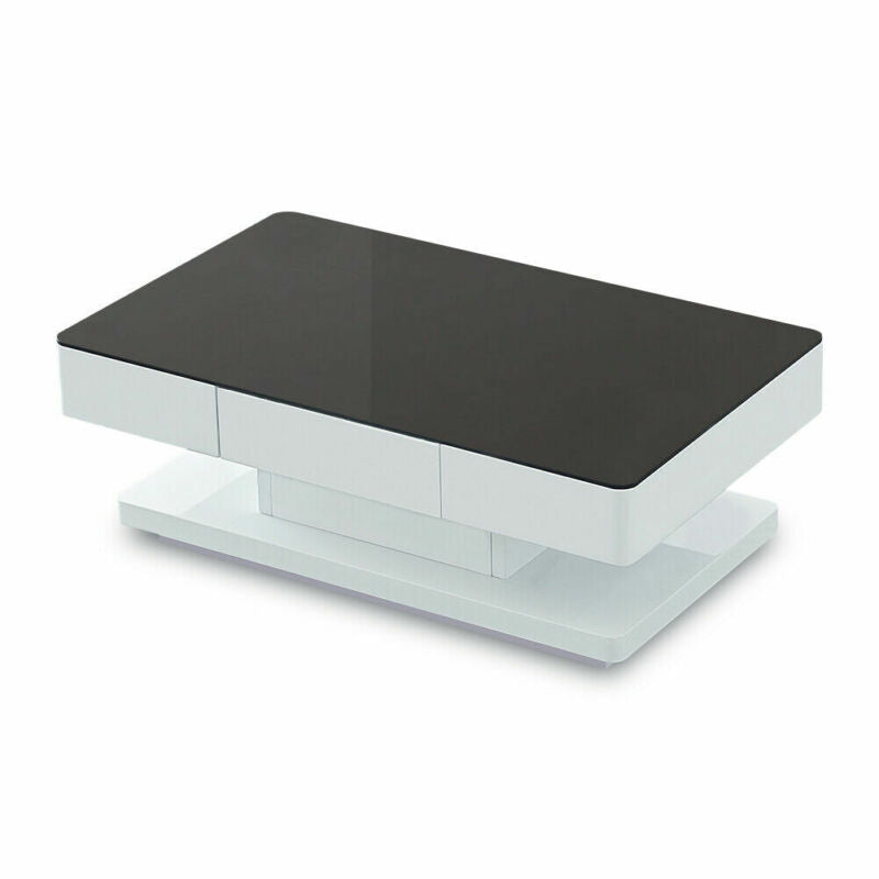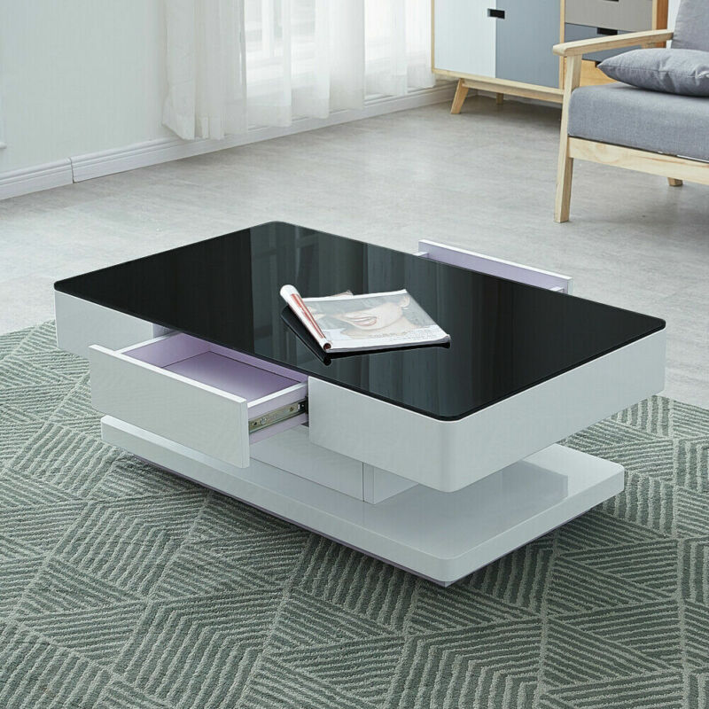 High Gloss Black&White Glass Coffee Table with 2 Drawers End Table Living Room