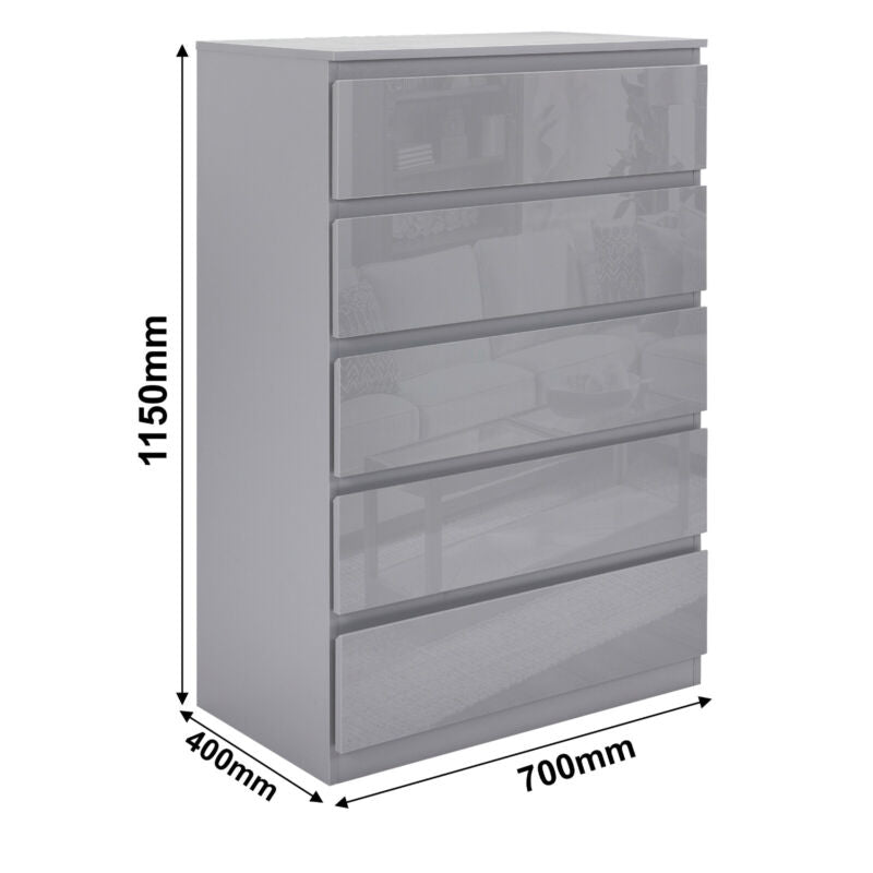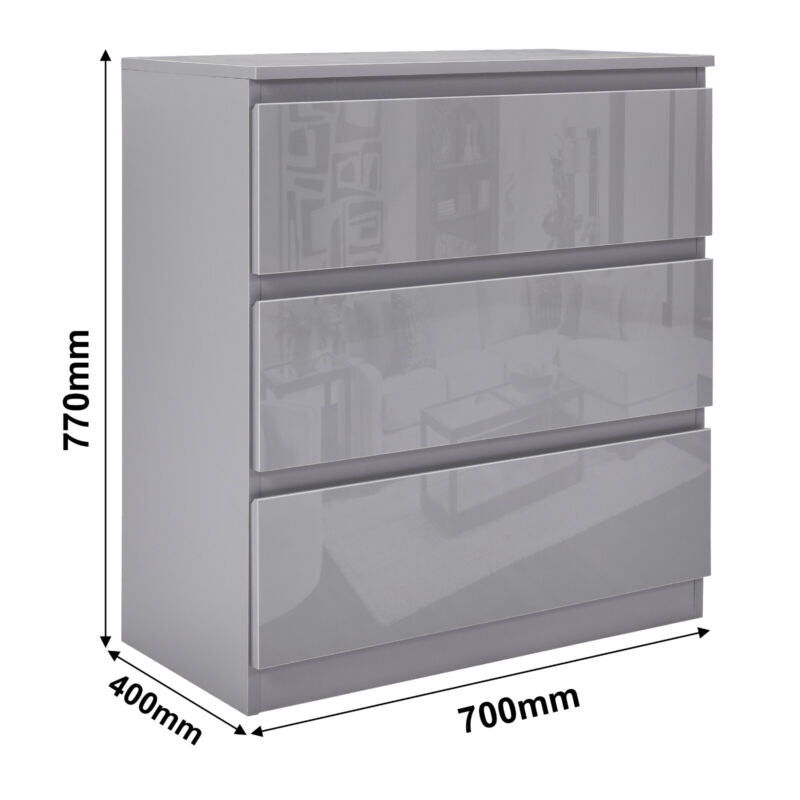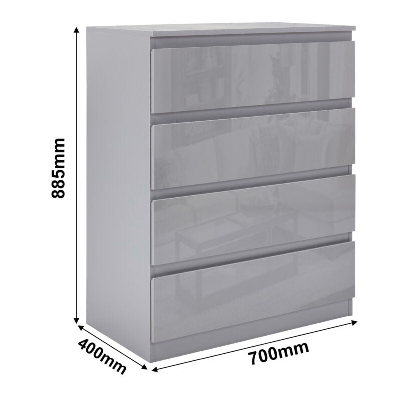 High Gloss Chest of Drawers Tall Wide Bedside Table Cabinet Bedroom Furniture