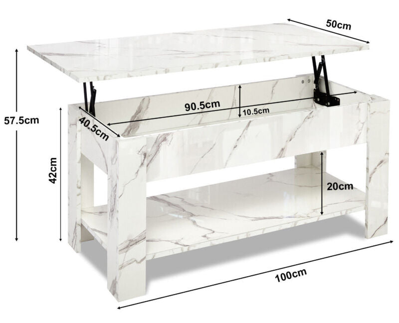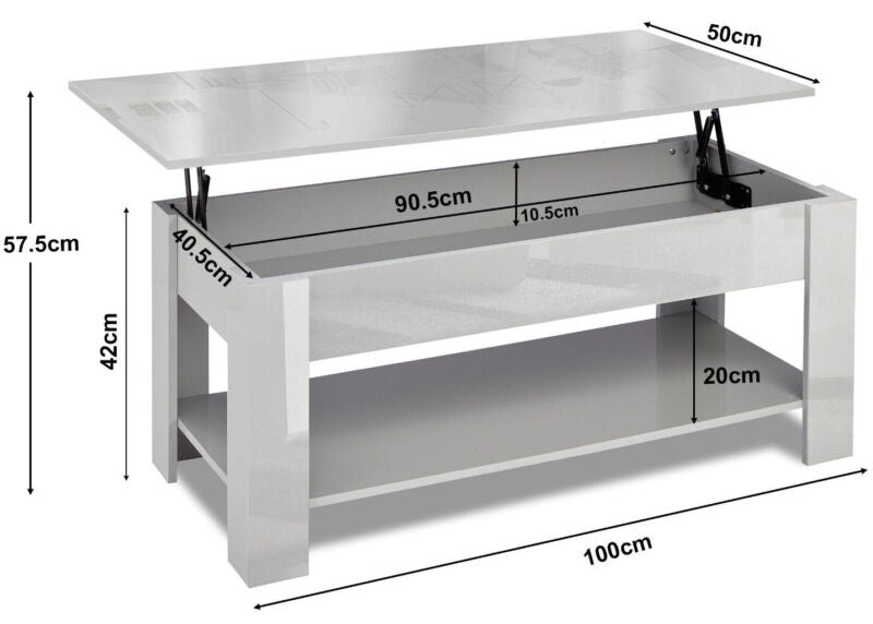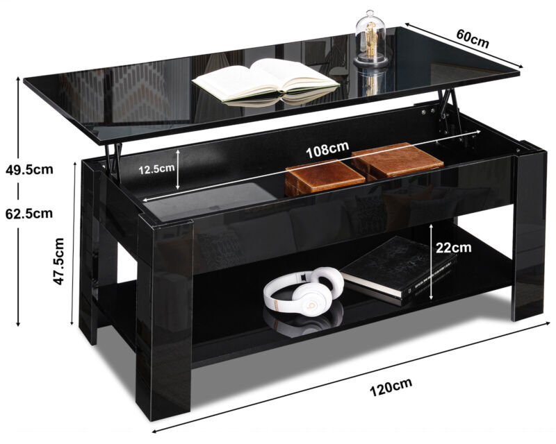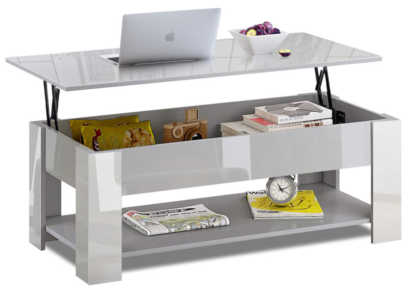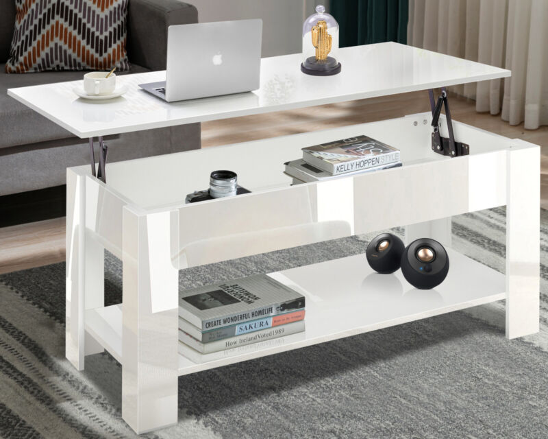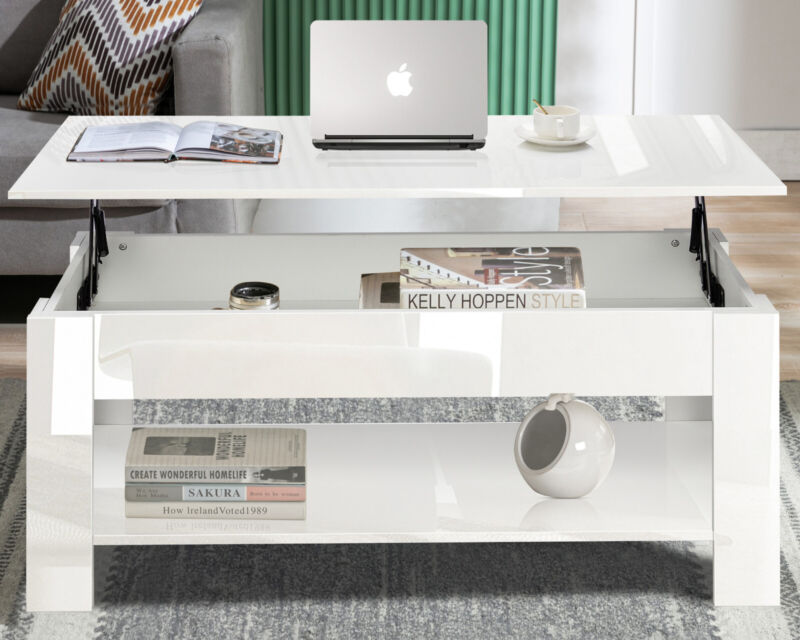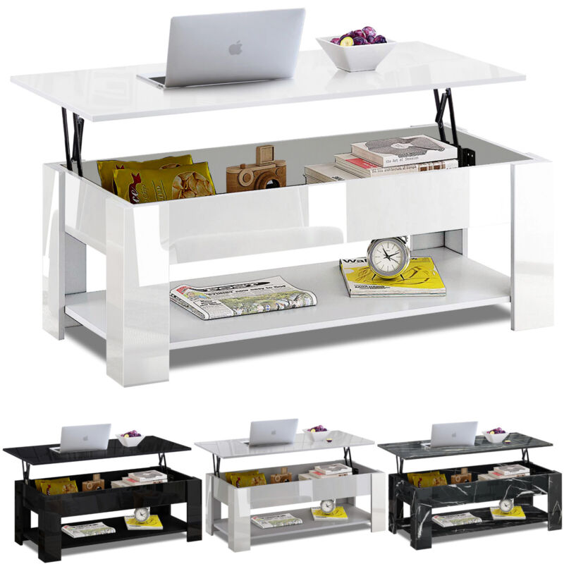 High Gloss Coffee Table With Storage Lift Top Up Wooden Living Room Furniture UK