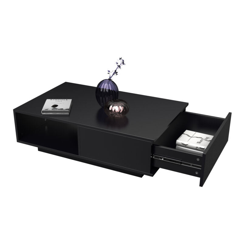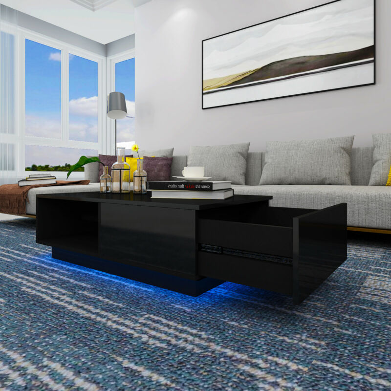 High Gloss Coffee Table Wood Drawer Storage Modern Living Room LED Light Cabinet