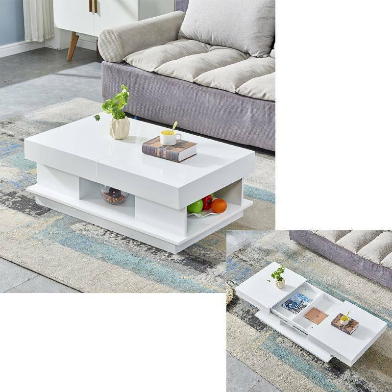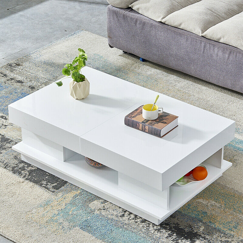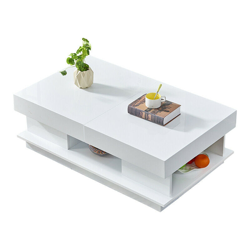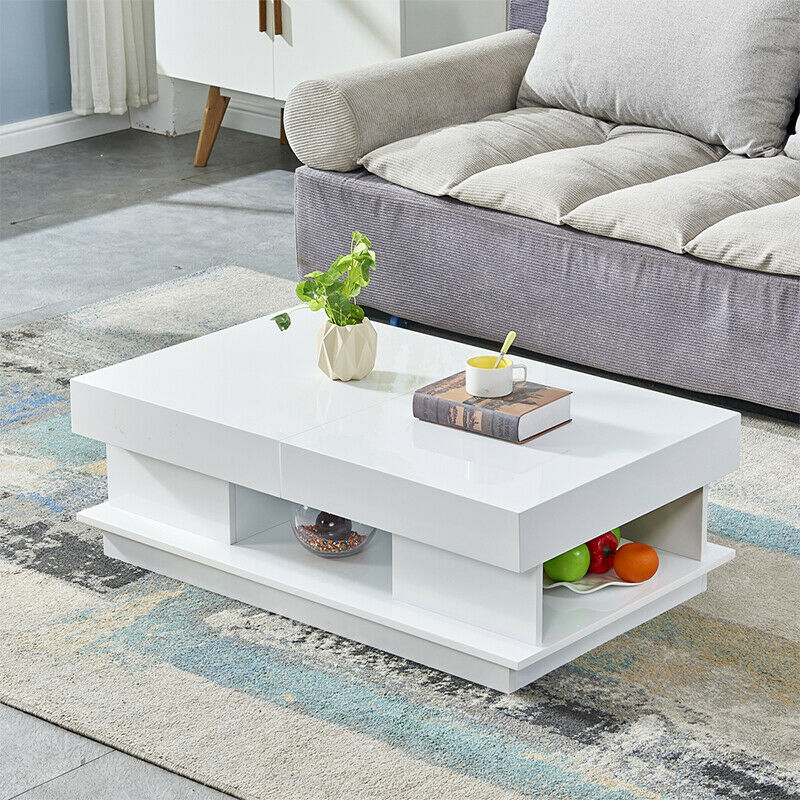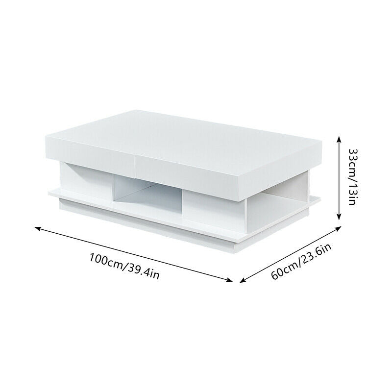 High Gloss End Table White Coffee Table with Hidden Storage Space Livingroom BN