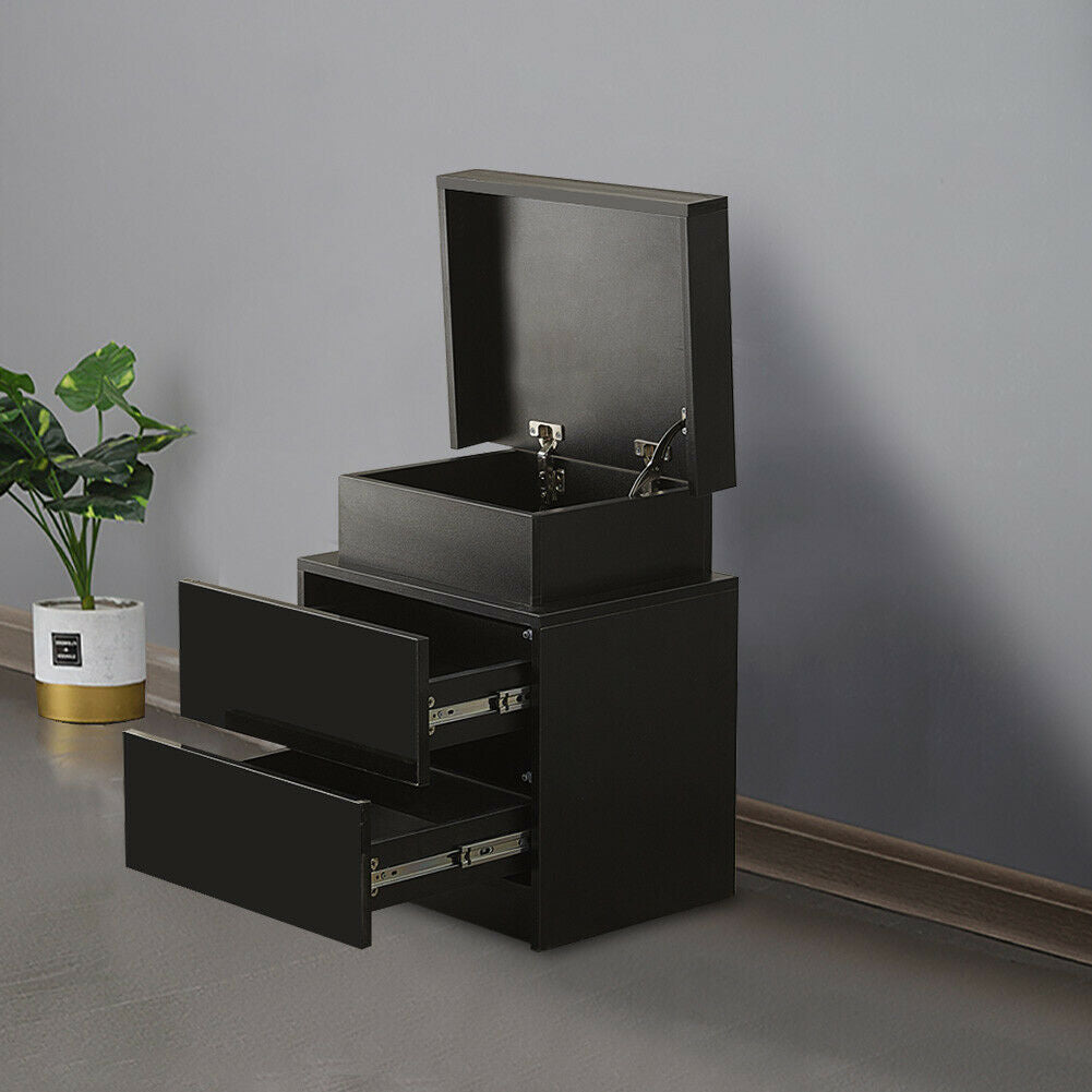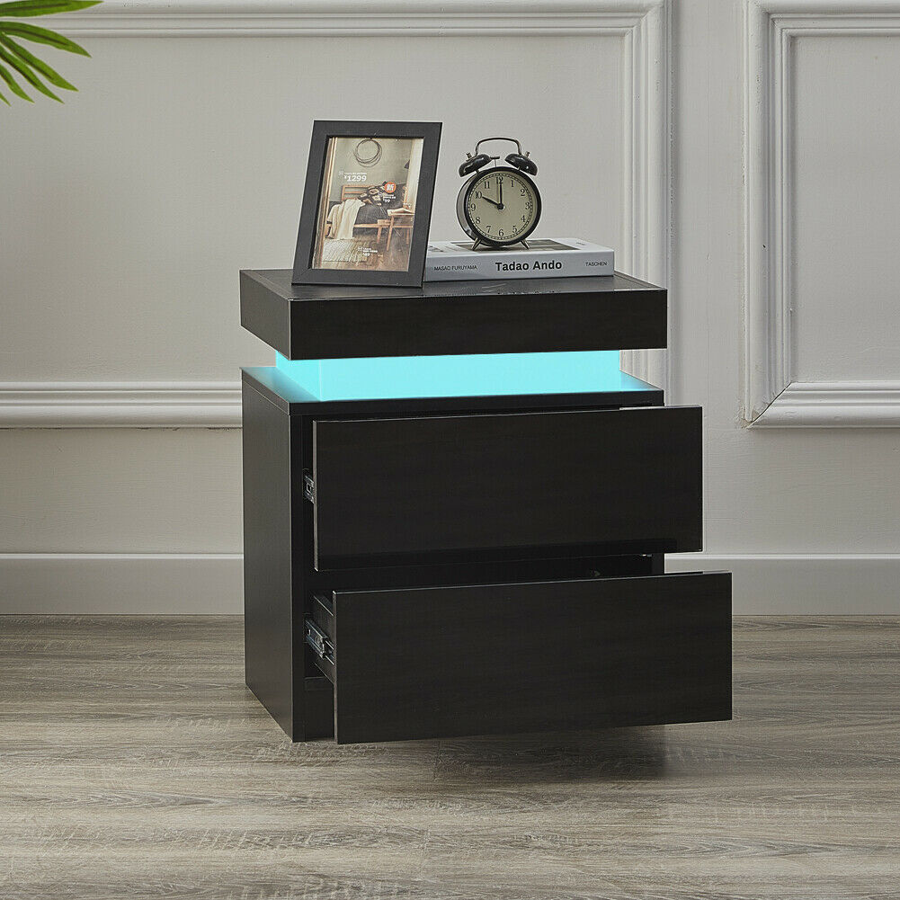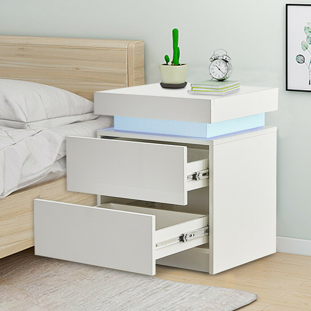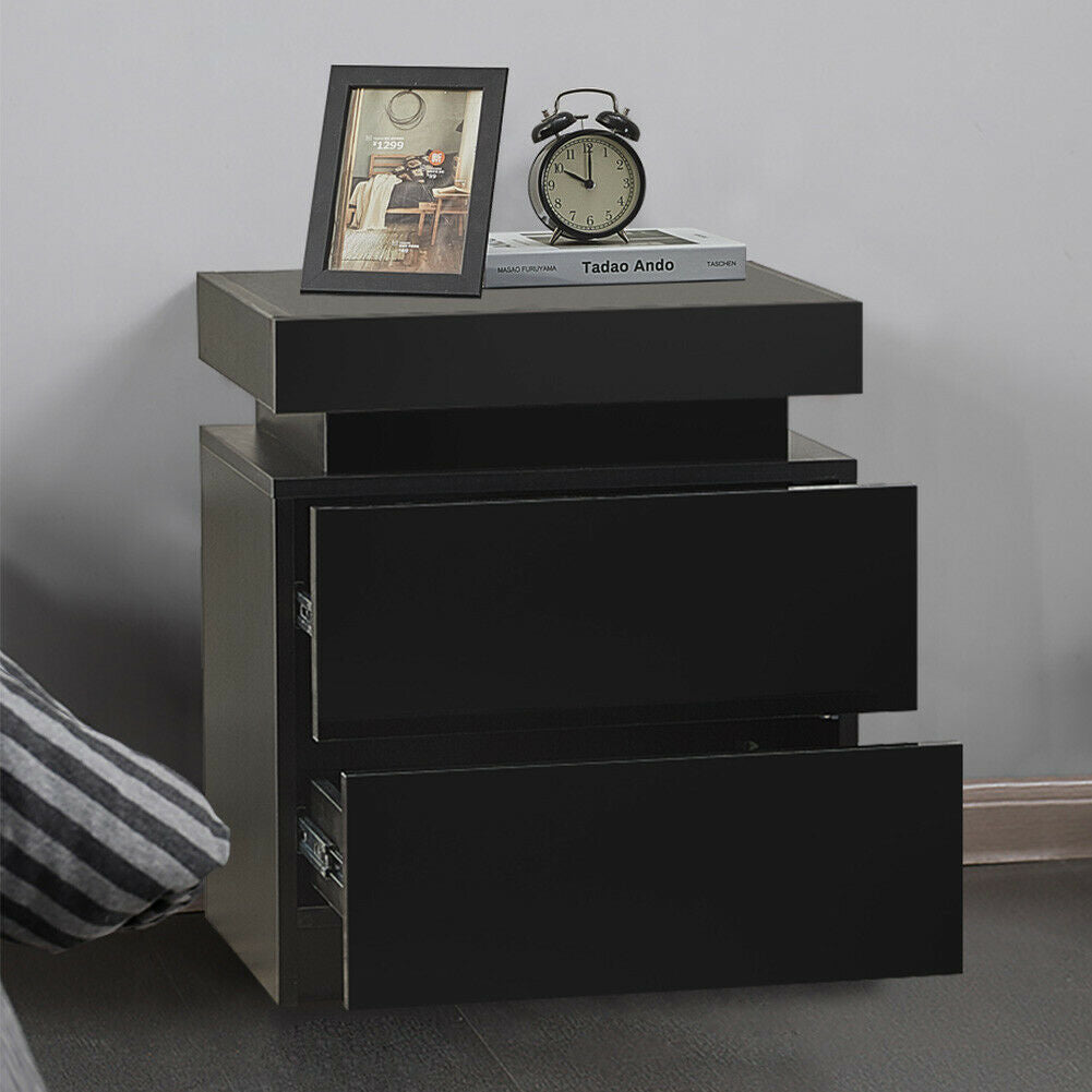 High Gloss Front 2 Drawers Bedside Table Cabinet LED Nightstand Black/White Unit