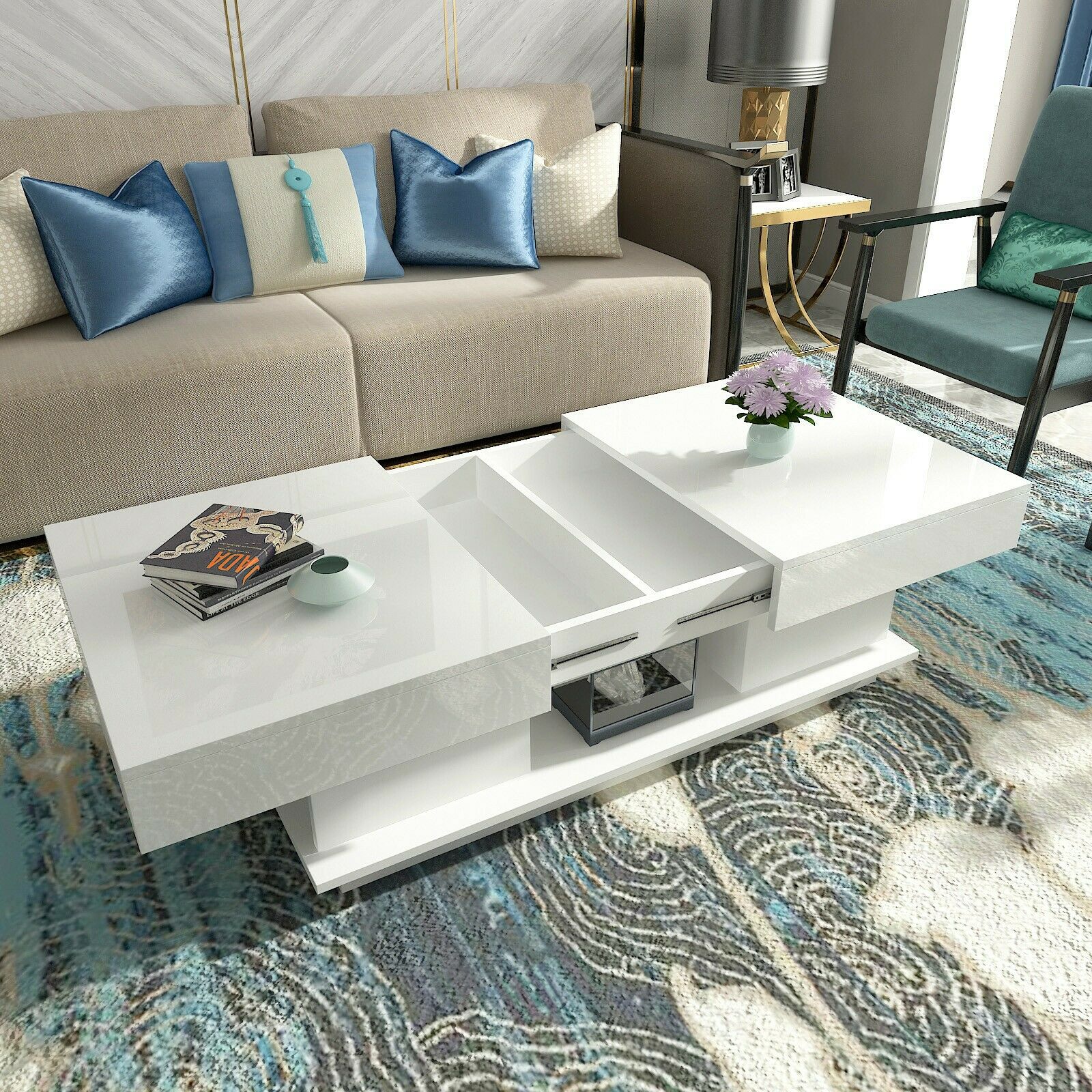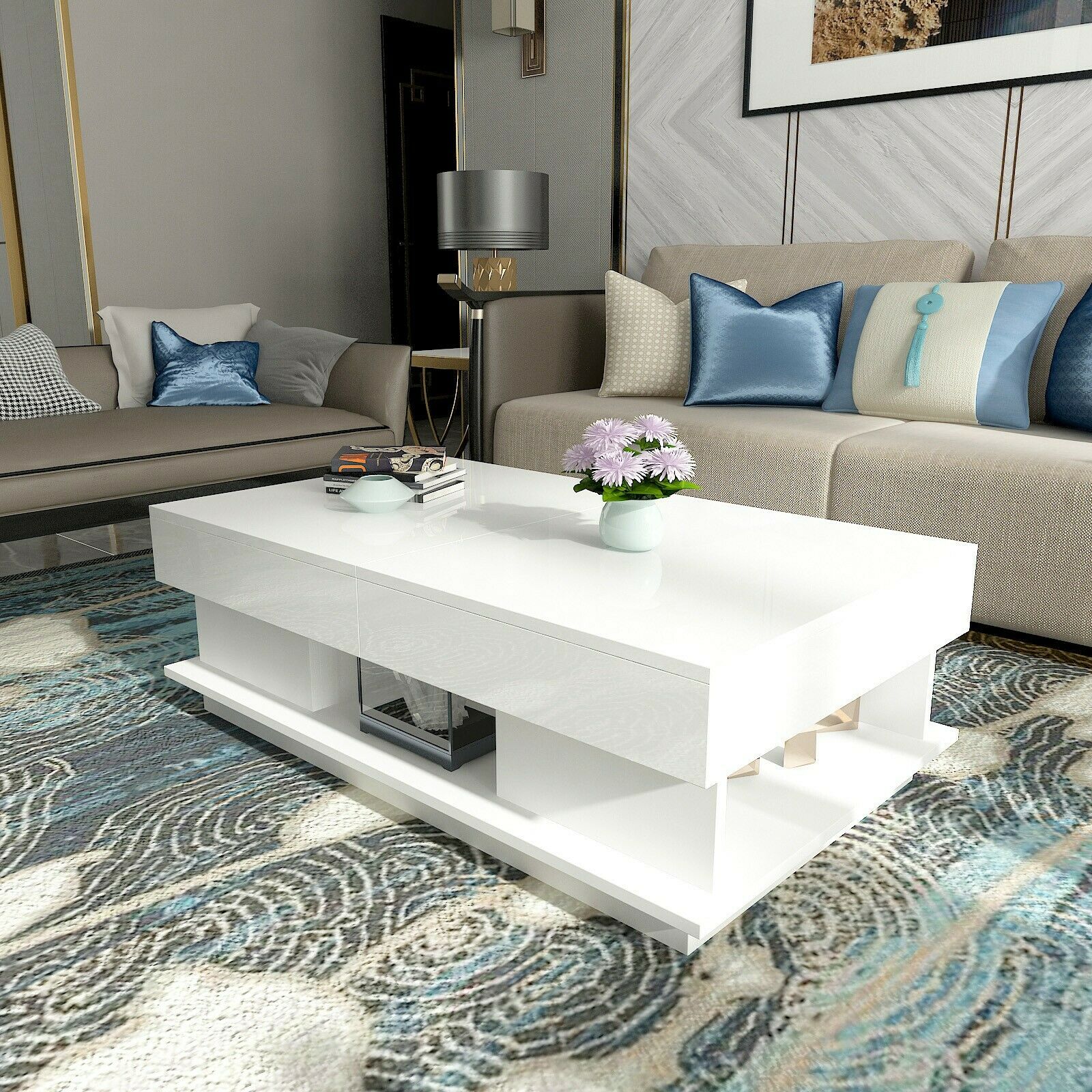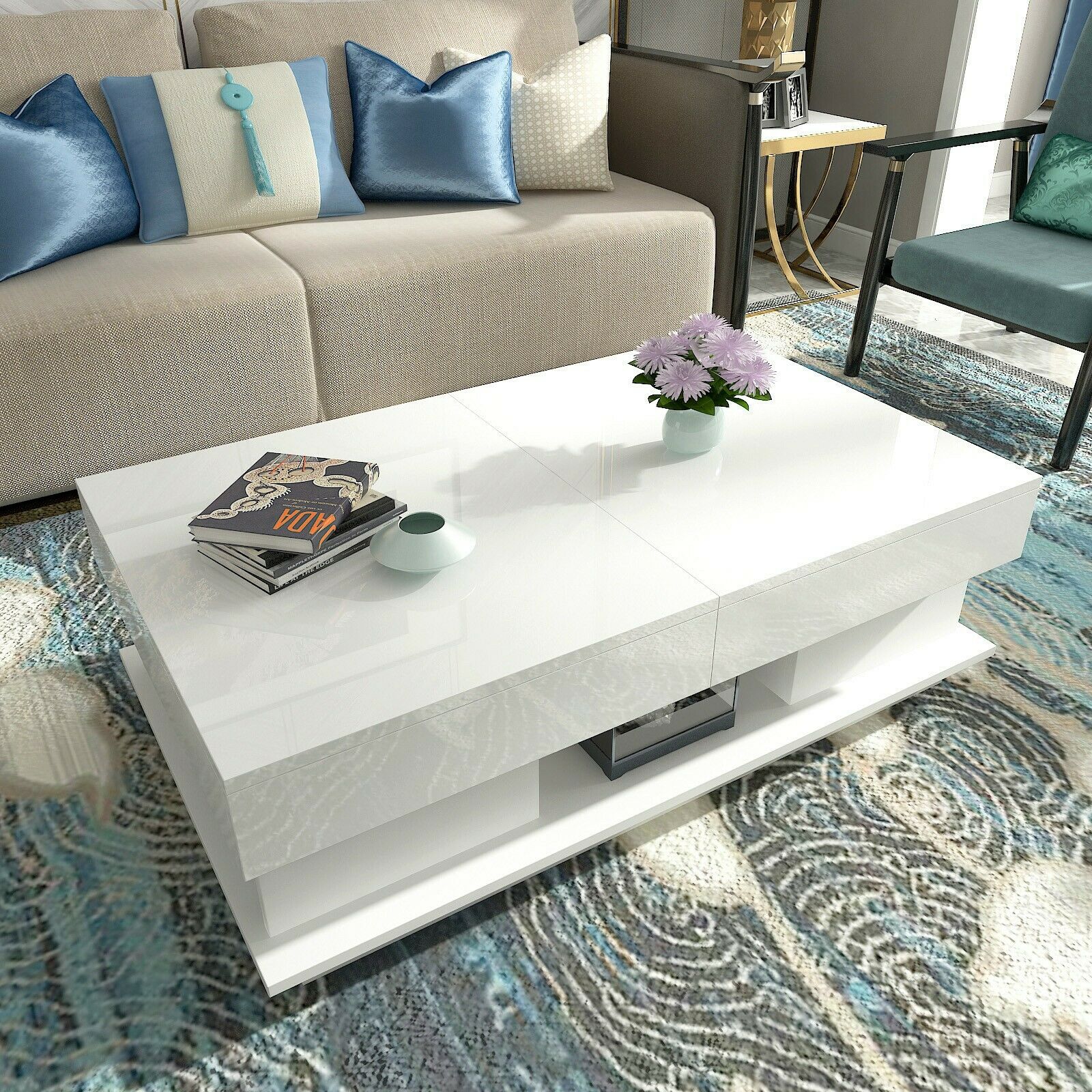 High Gloss Sliding Top Tea Coffee Table Storage Drawer Unit Modern Living Room