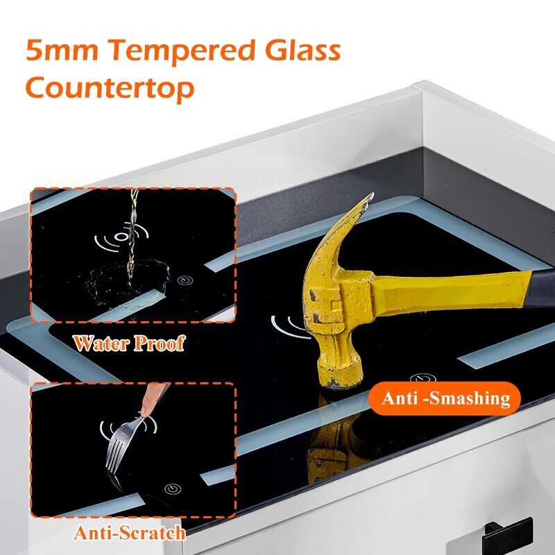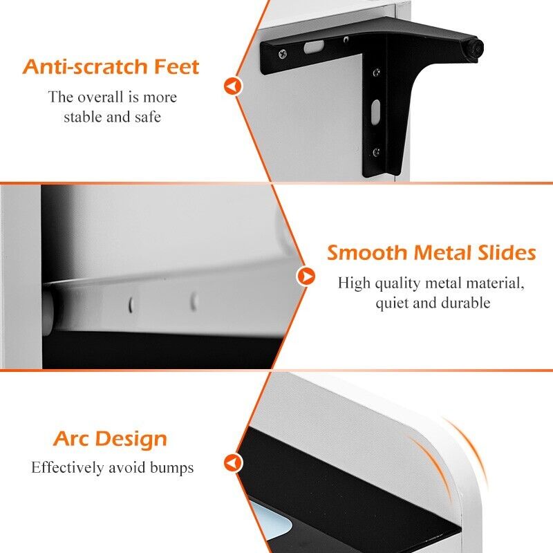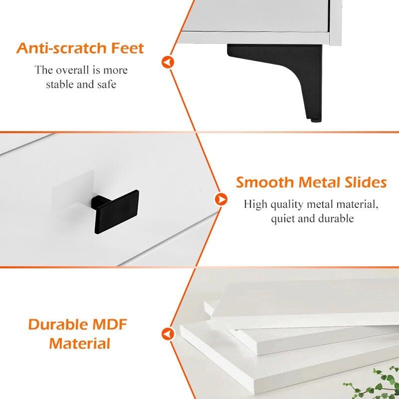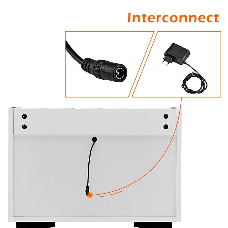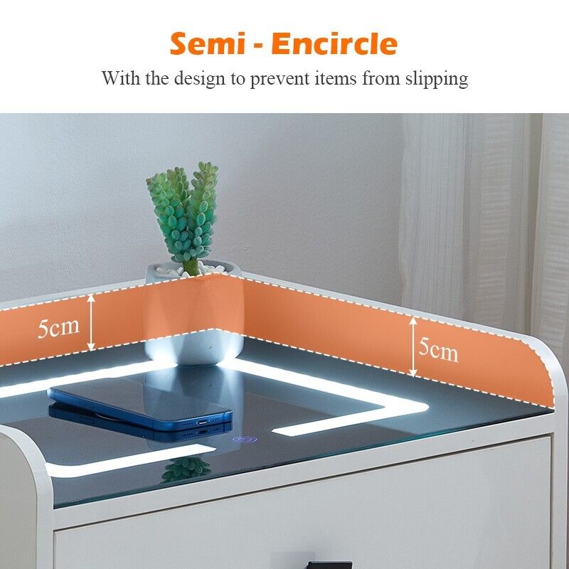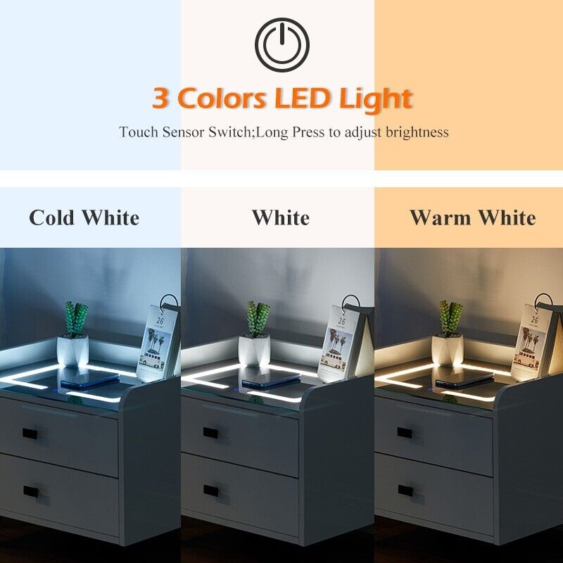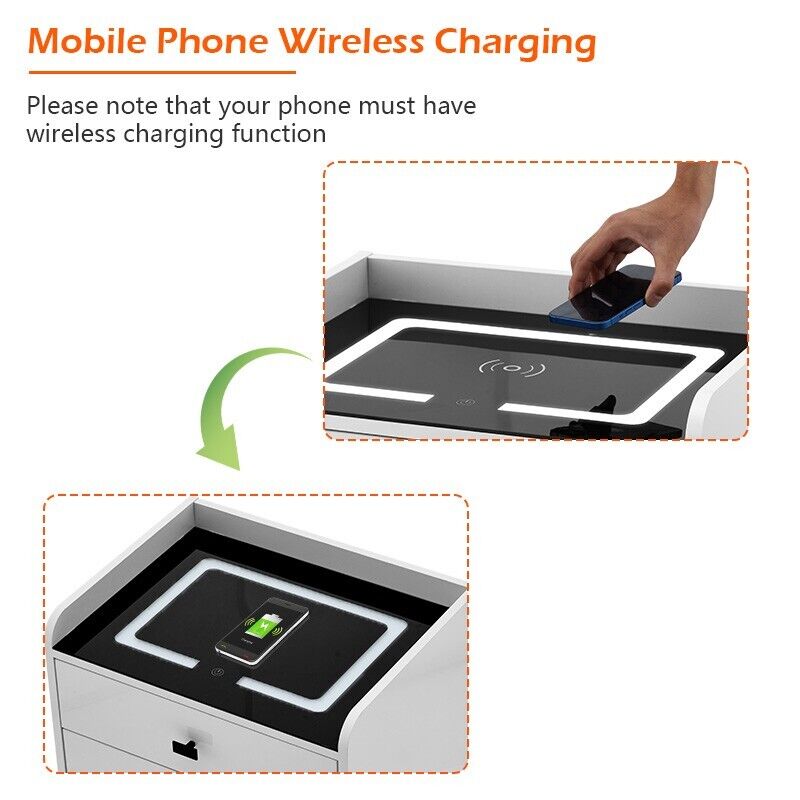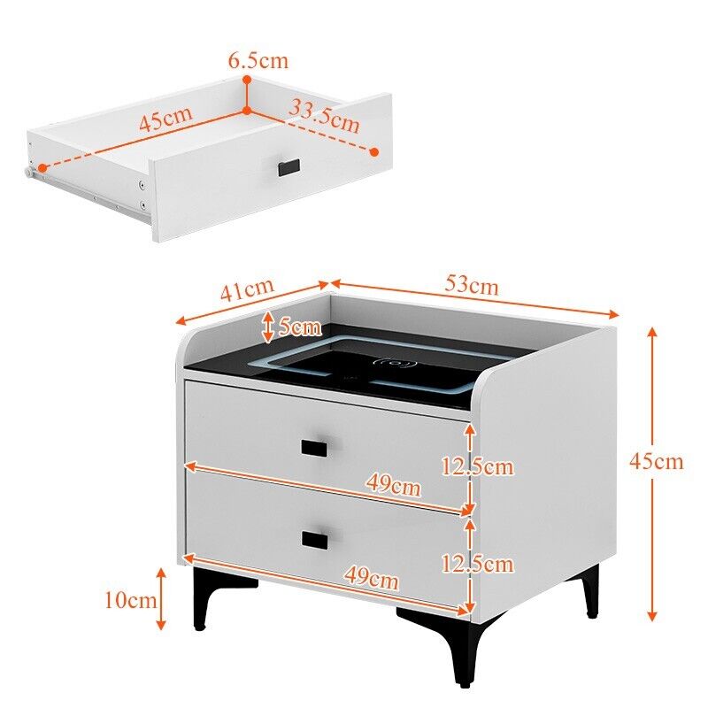 High Gloss White 2 Drawers Bedside Table LED Light Wireless Charging Nightstand