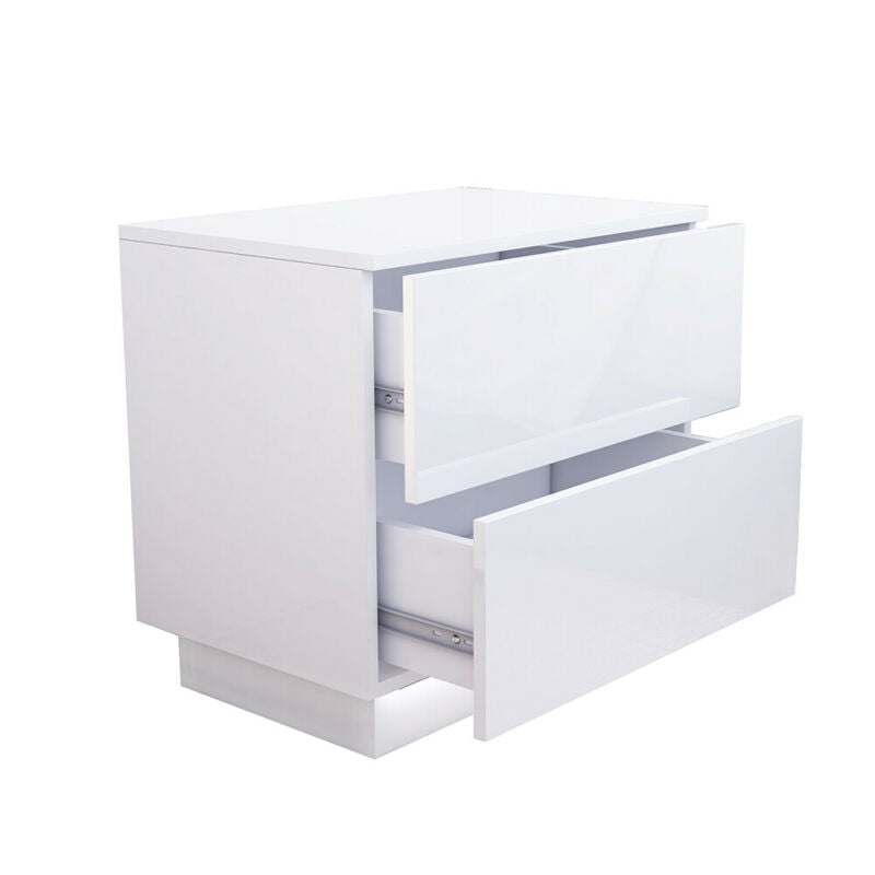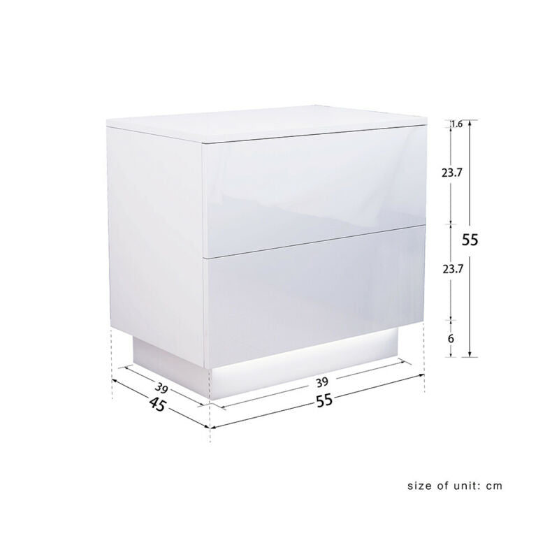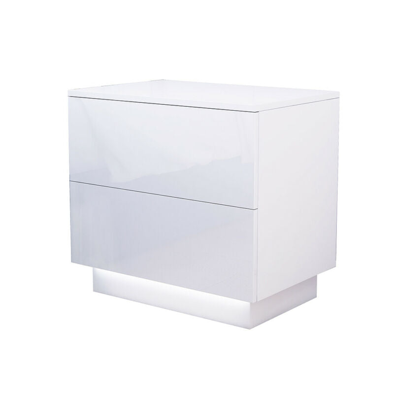 High Gloss White Bedside Table Cabinet 2 Drawers Matt Body Nightstand LED UK