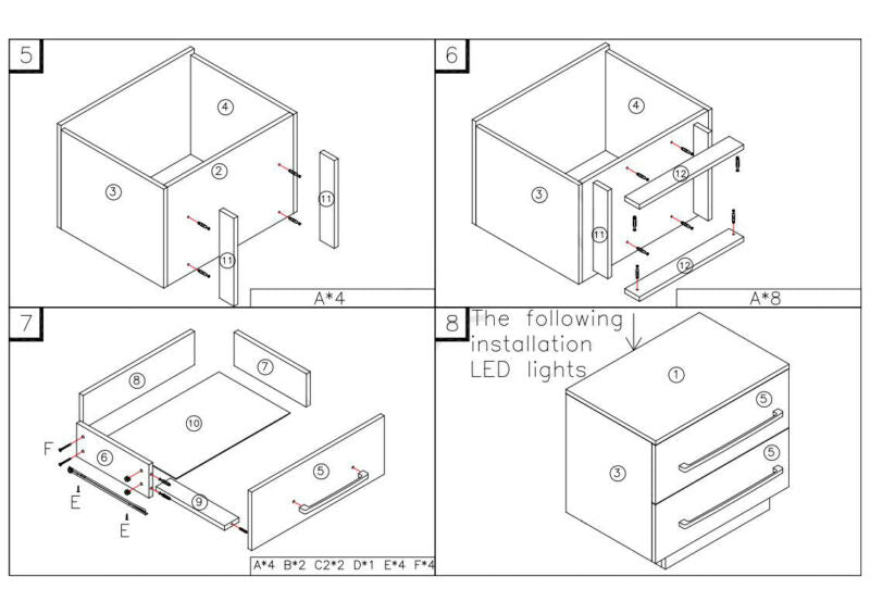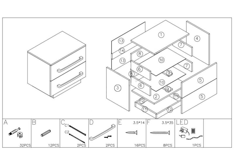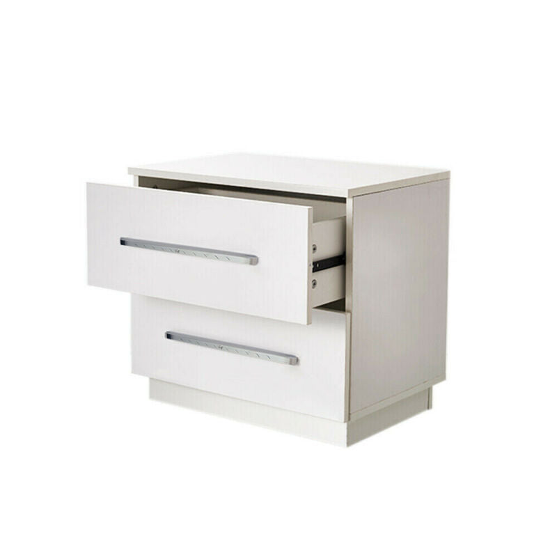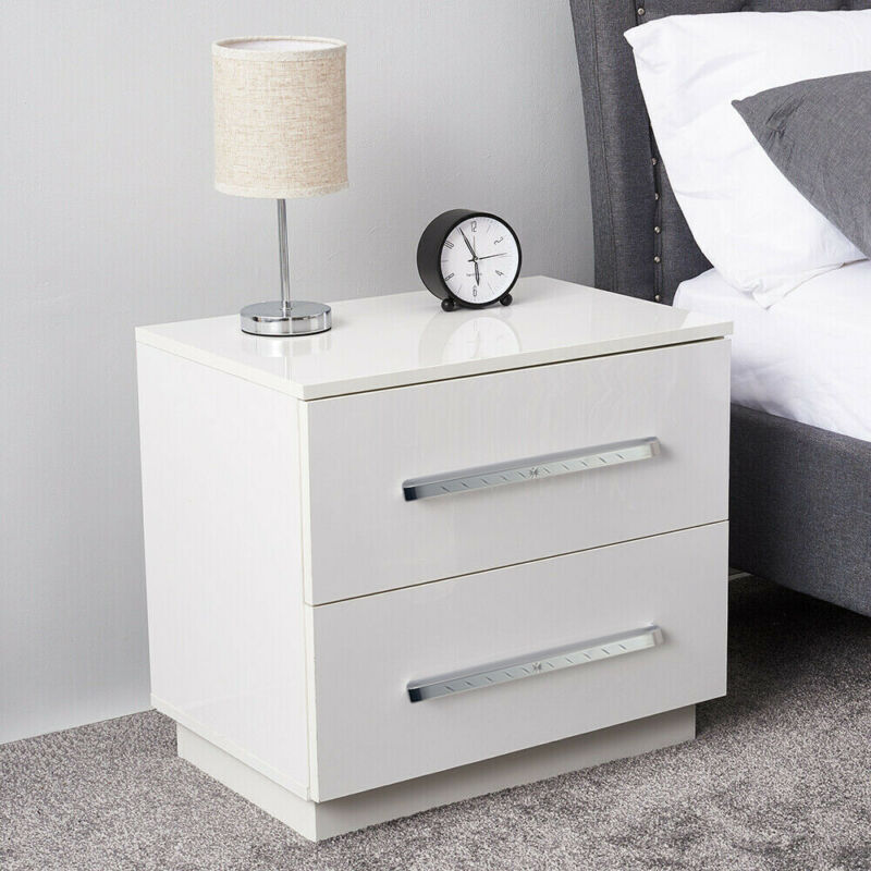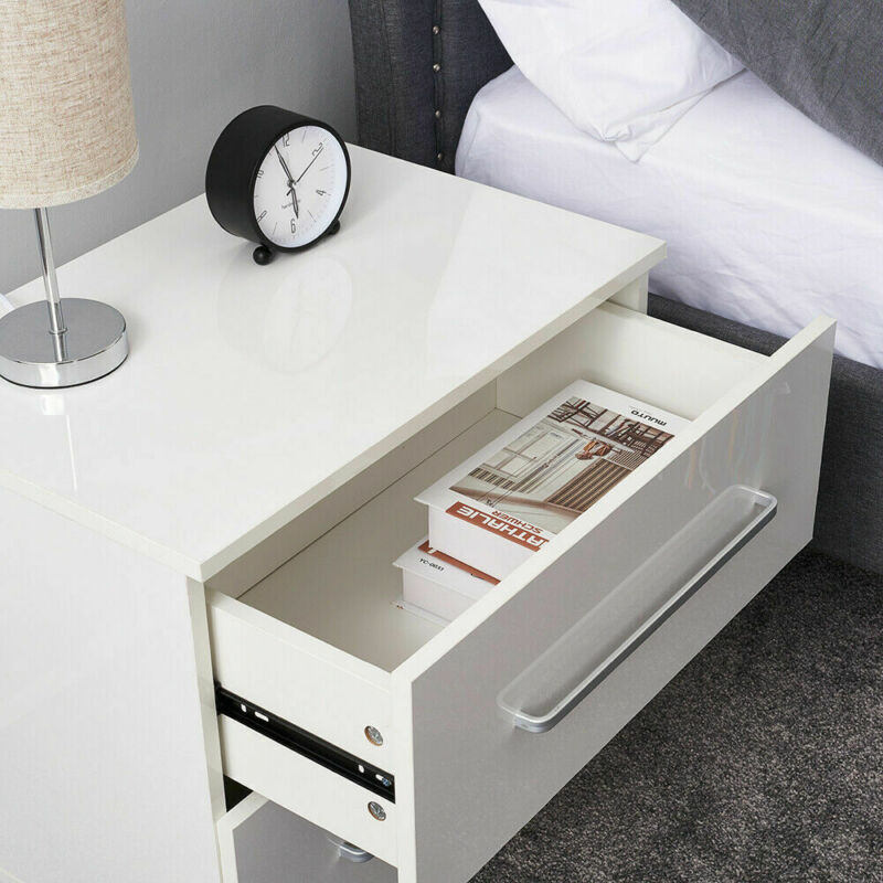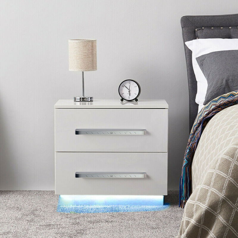 High Gloss White Bedside Table Cabinet 2 Drawers Matt Body Nightstand LED UK