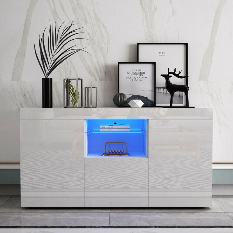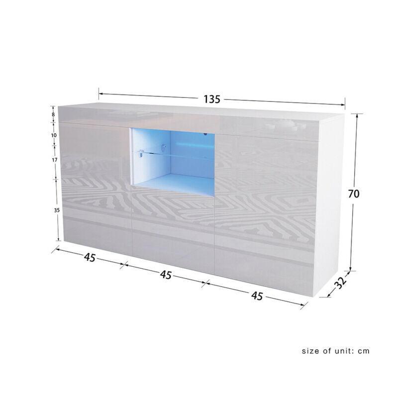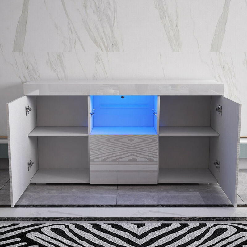 High Gloss White TV Unit Cabinet Cupboard Sideboard Drawer Door LED Light