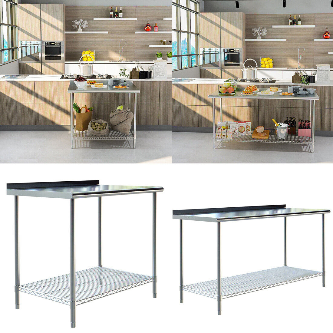 High Quality Kitchen Table Worktop Work Bench Catering Backplash Stainless Steel