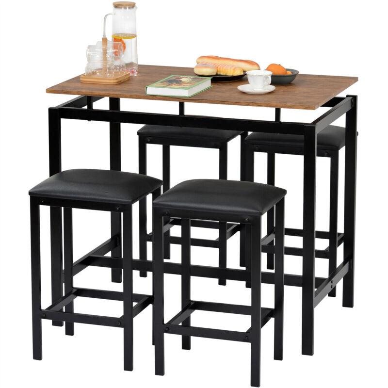 High Table & Chair Set Bar Kitchen Dining Breakfast Furniture Padded Stools 5PCS