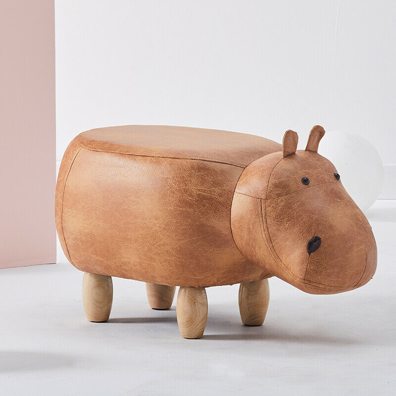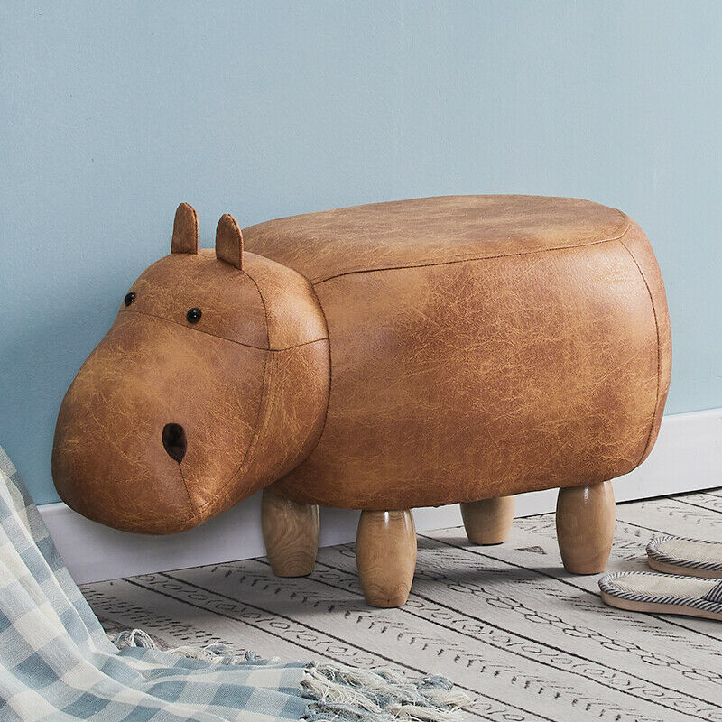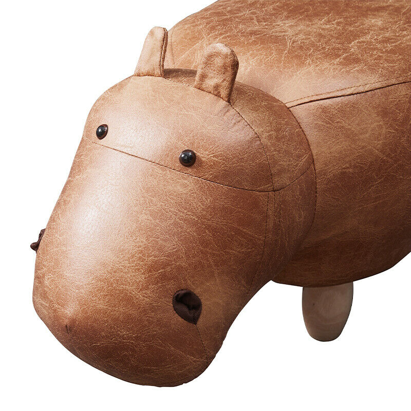 Hippo Faux Leather Animal Stools Footstools Ottomans Kids Gift Toy Brown / grey