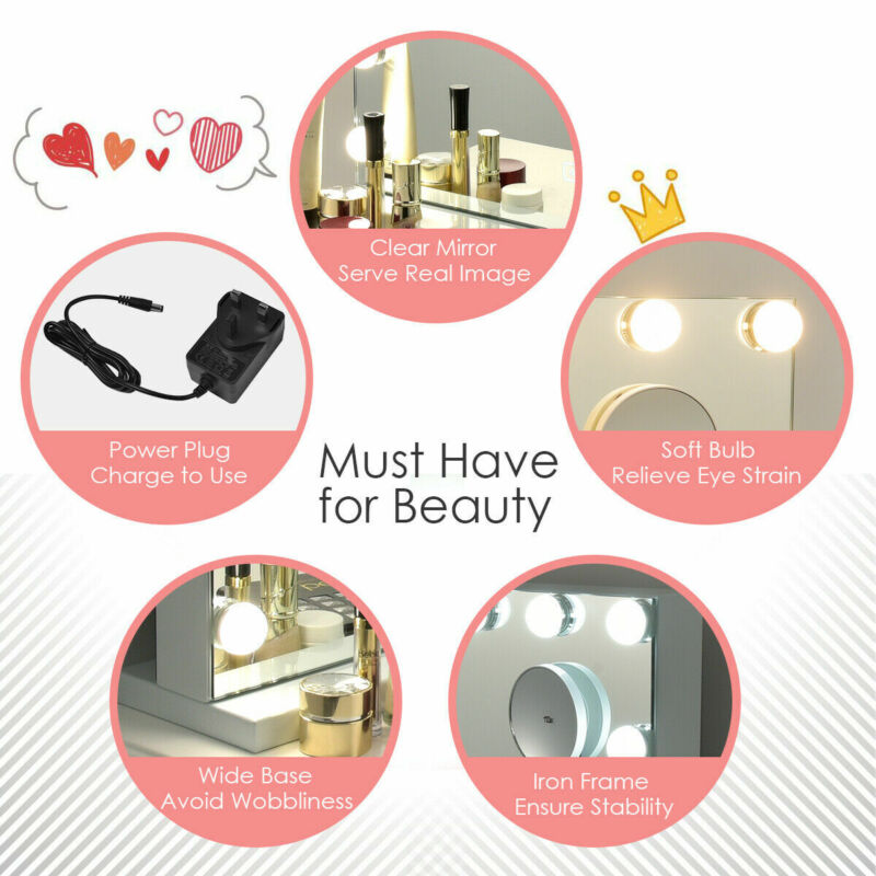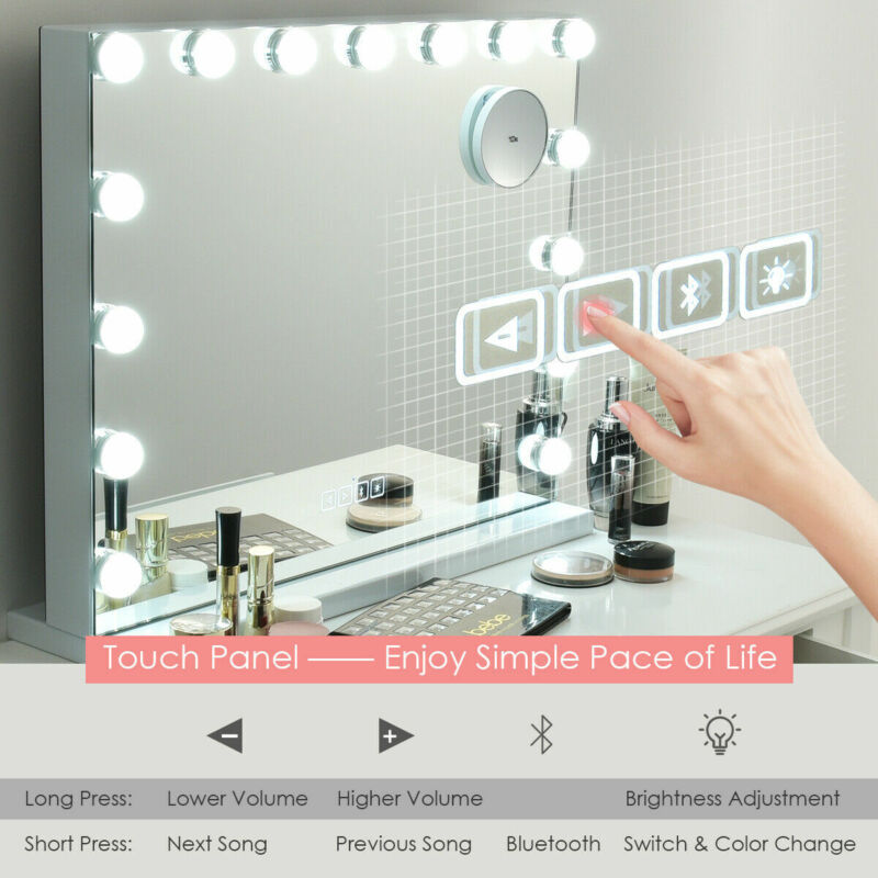 Hollywood LED Vanity Makeup Mirror Lights Kit 15 Dimmable Bulbs Dressing Table