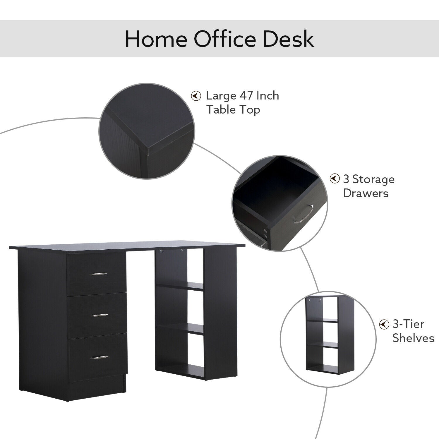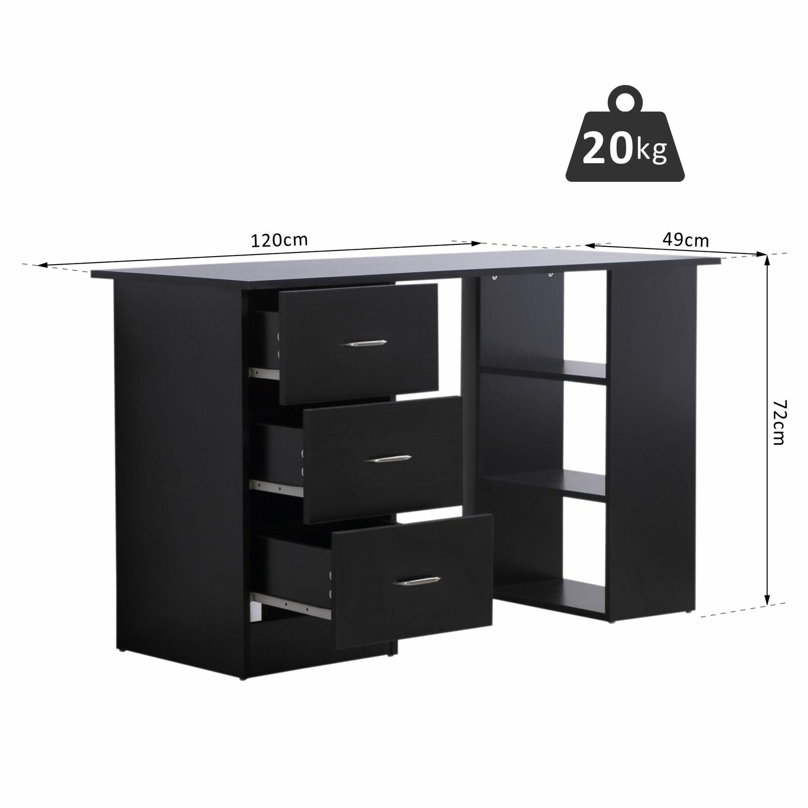 120cm Computer Desk PC Table Workstation w/ 3 Shelf & Drawers Black