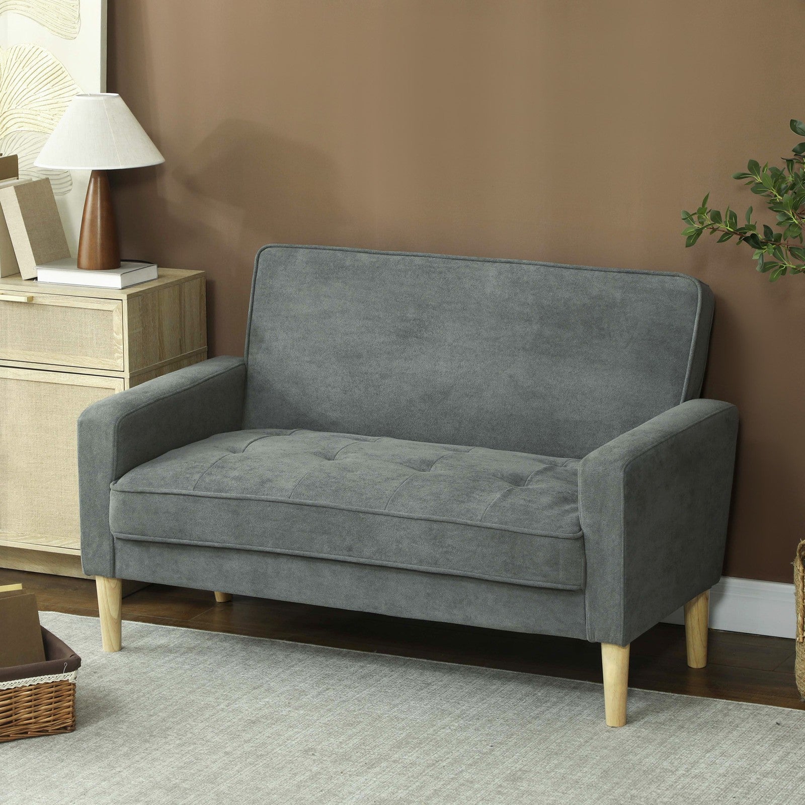 2 Seater Sofa, Velvet-Feel Upholstered Loveseat for Small Space, Grey
