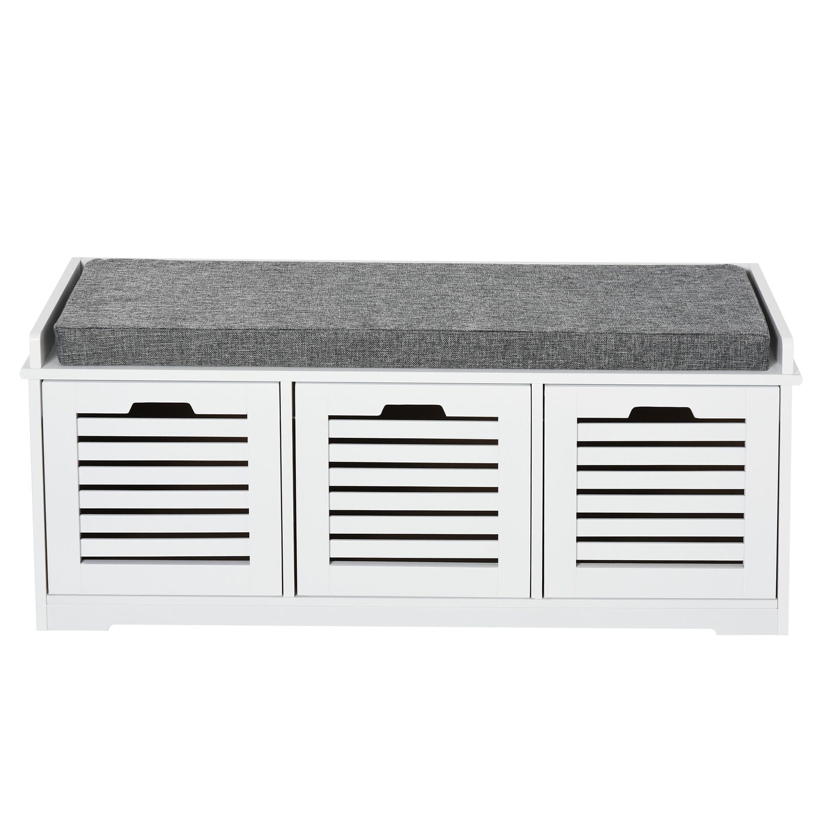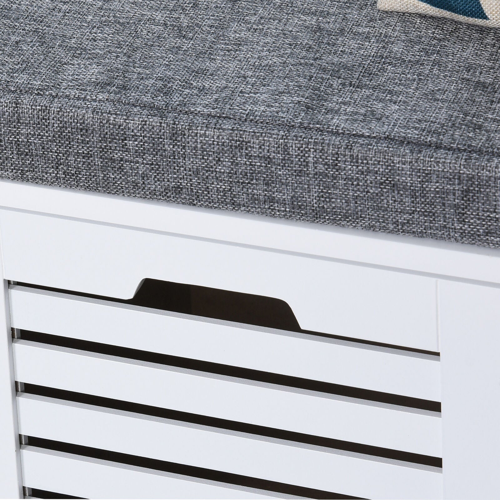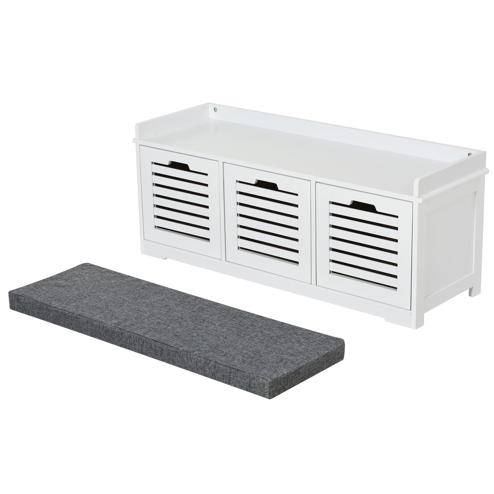 3-Door Shoe Storage Bench Cushion Seat Slatted Doors Elevated Base White