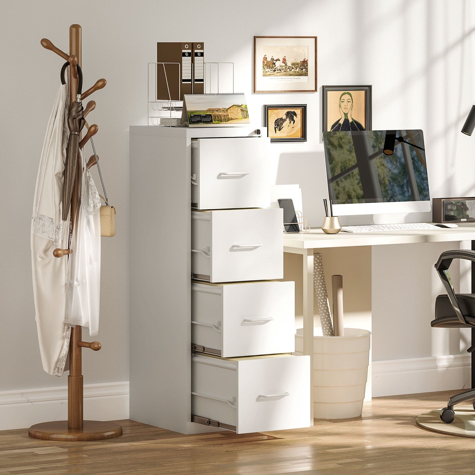 4 Drawer Filing Cabinet Steel File Cabinet for A4 Letter Size White