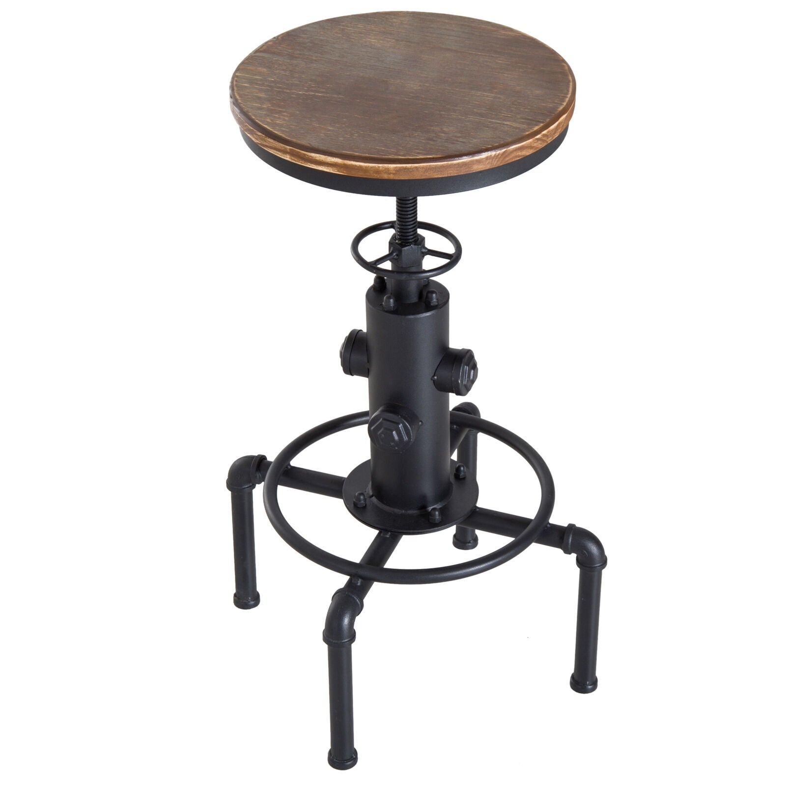 Bar stool Swivel Chair Wooden Top Adjustable W/Footrest Pine Wood Steel