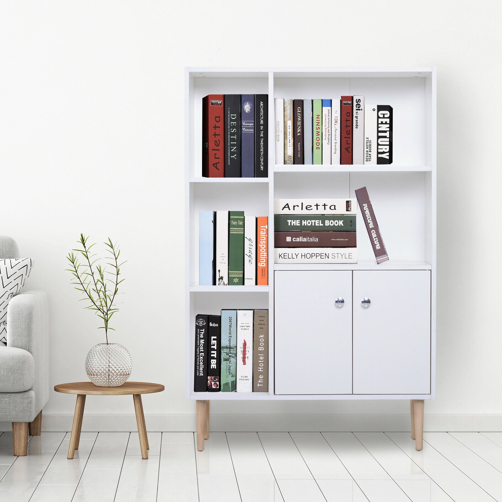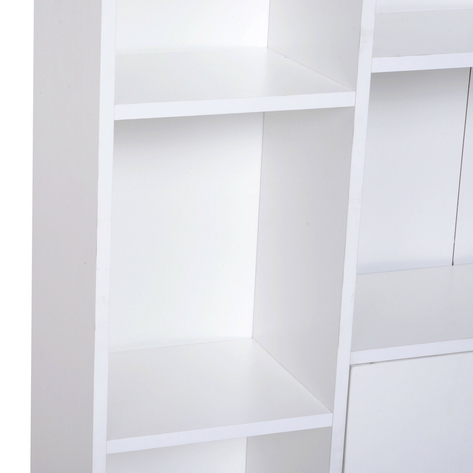 Cabinet Shelves Bookcase Storage Unit Free Standing w/ Two Doors White