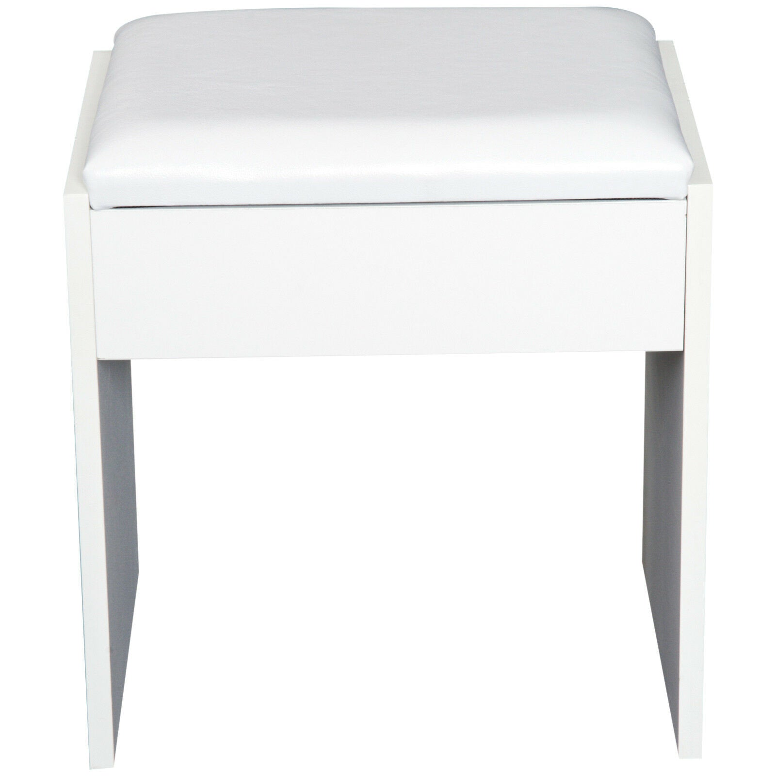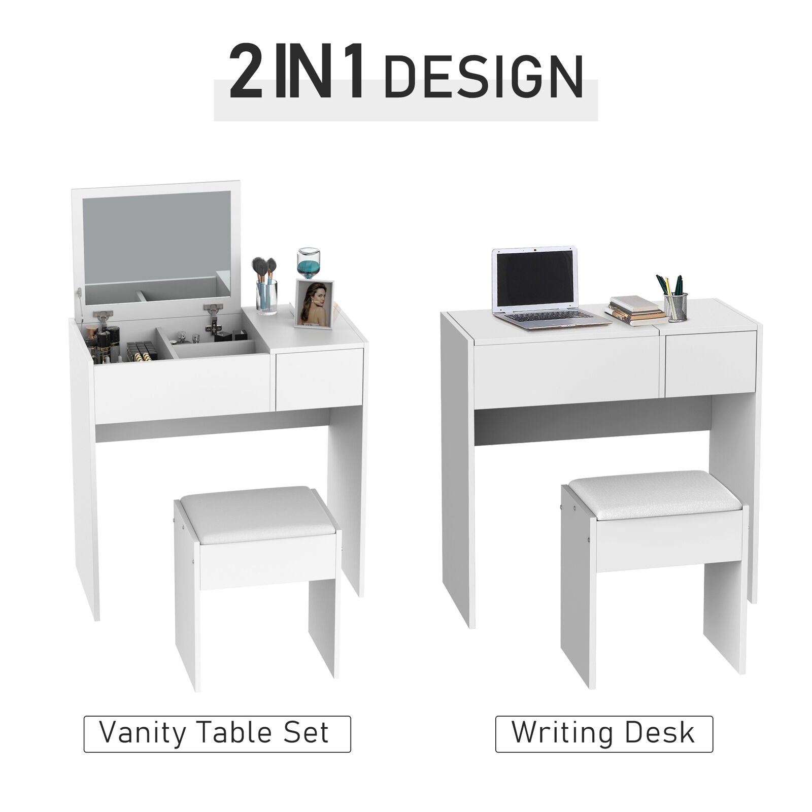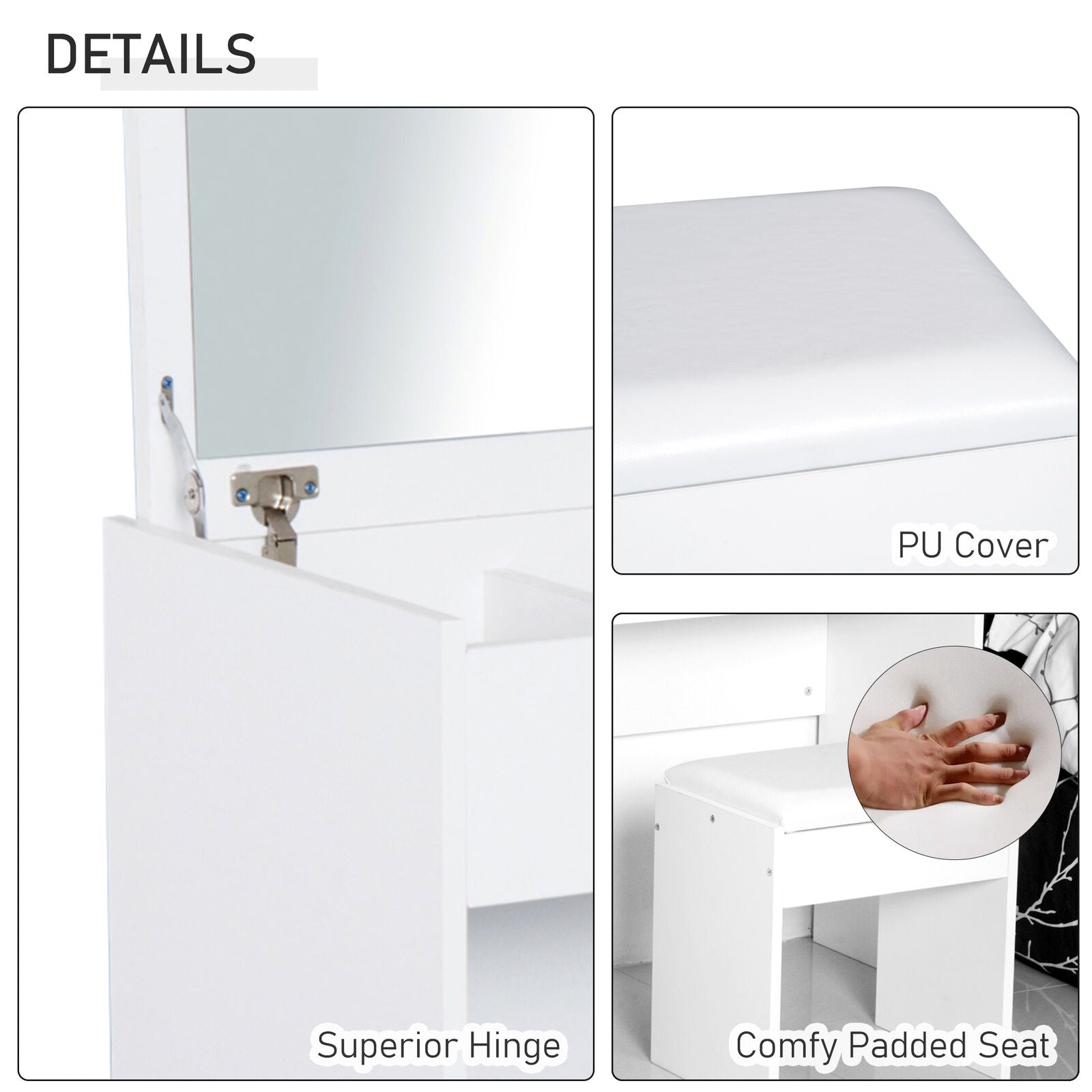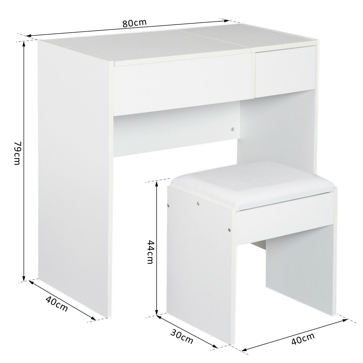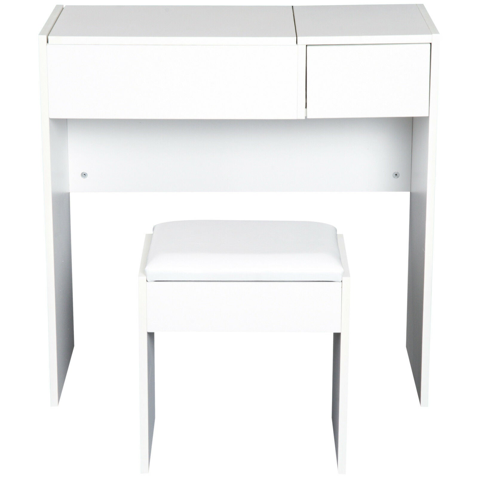Dressing Table Set with Flip-up Mirror Padded Stool Sliding Drawer White