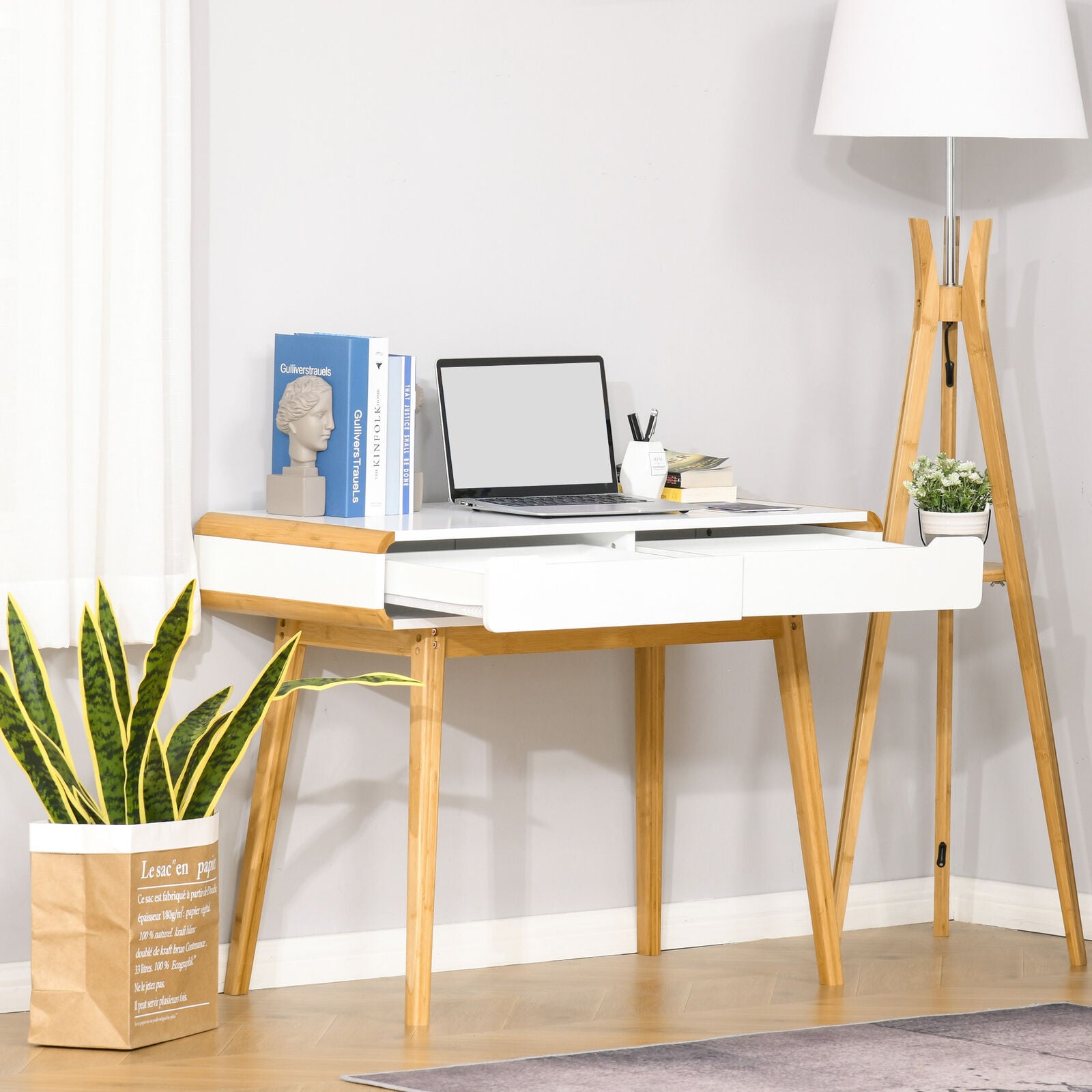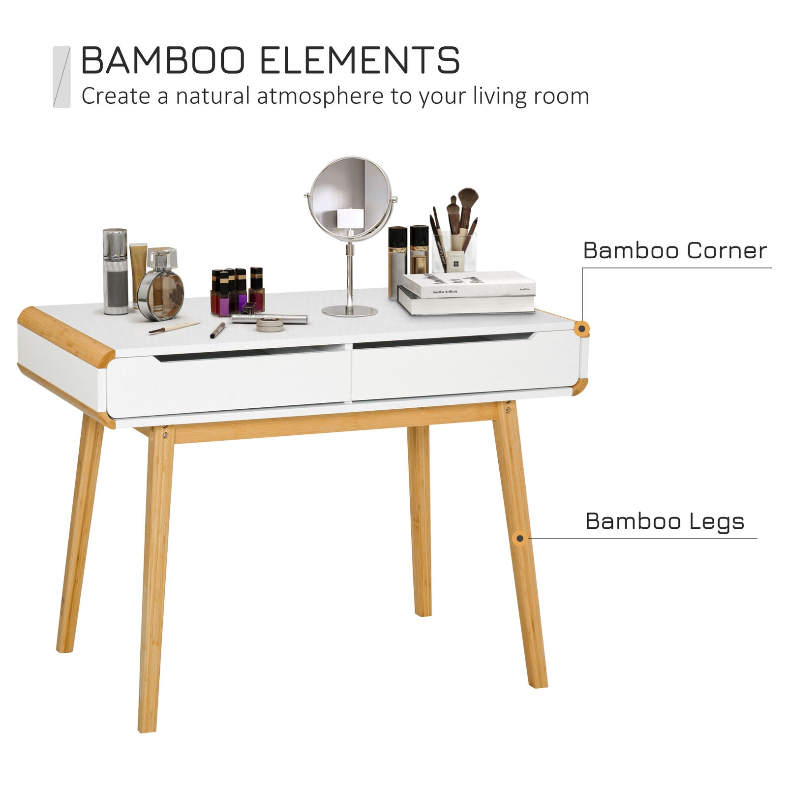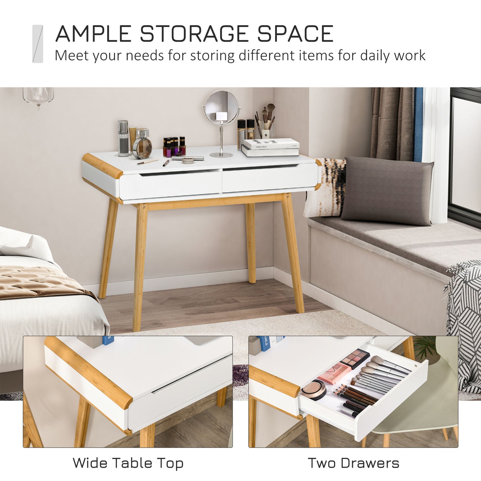 Dressing Table with 2 Storage Drawer, Bedroom Dresser Makeup Desk, White