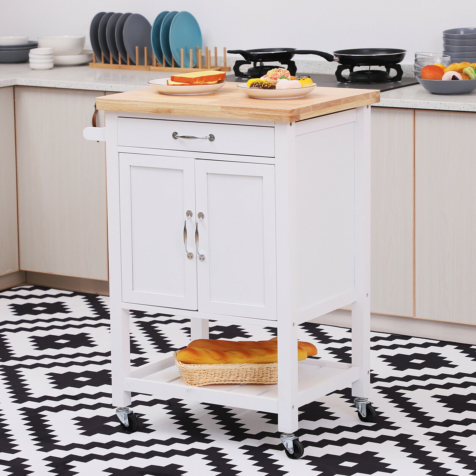 Kitchen Storage Trolley Cart Rolling Wheels Shelves Cupboard W/ Drawer