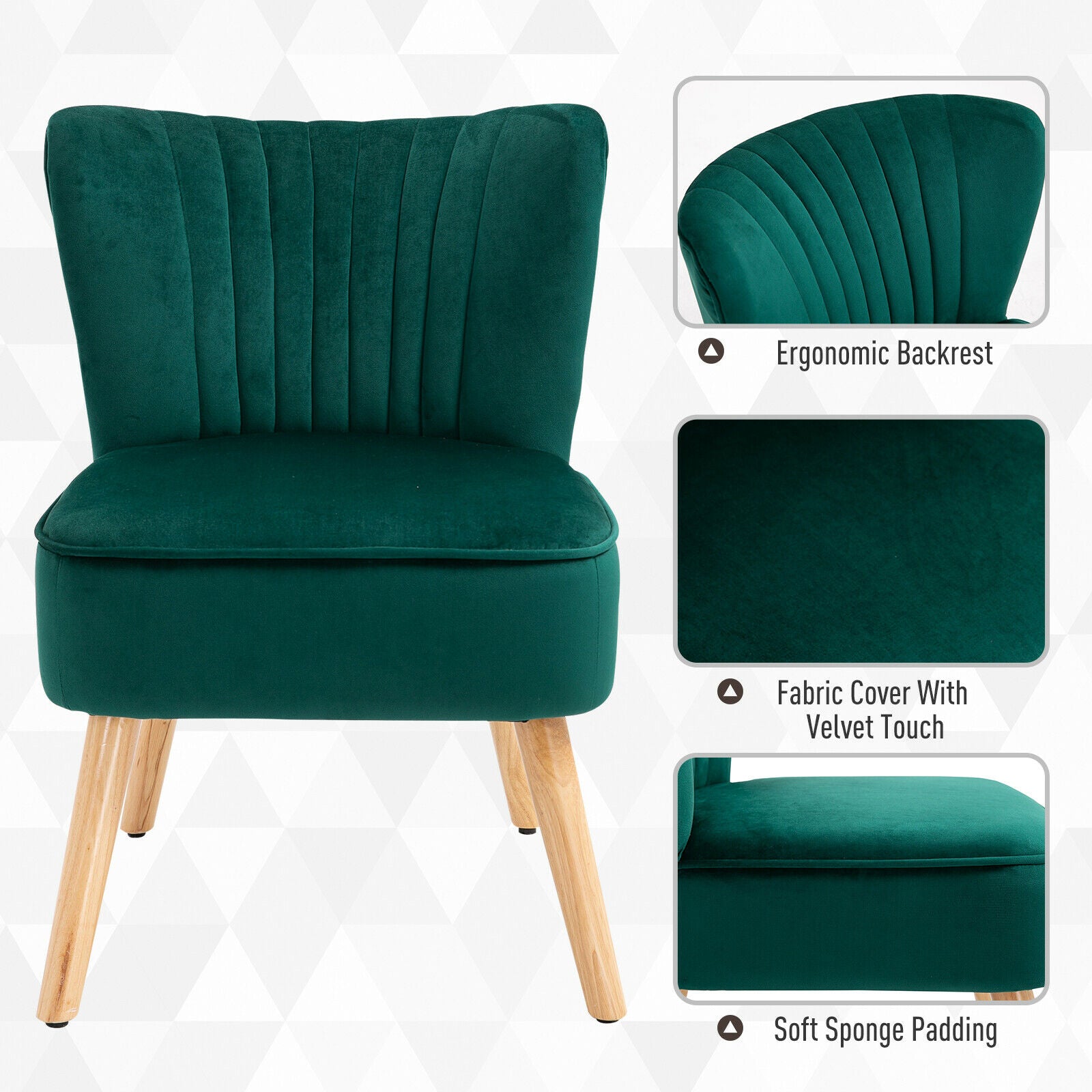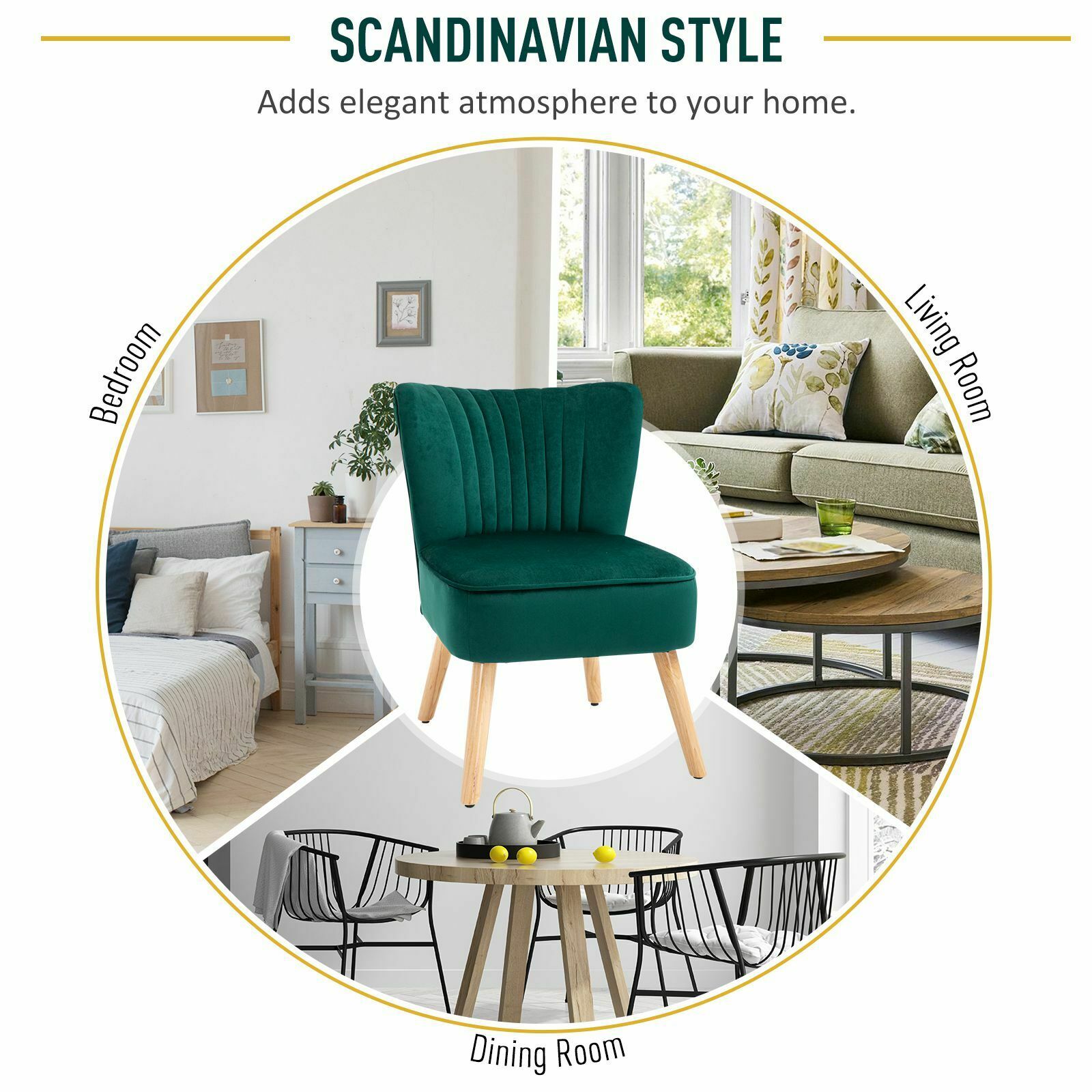 Luxury Velvet-Feel Accent Chair Padding Wood Frame Legs Home Green
