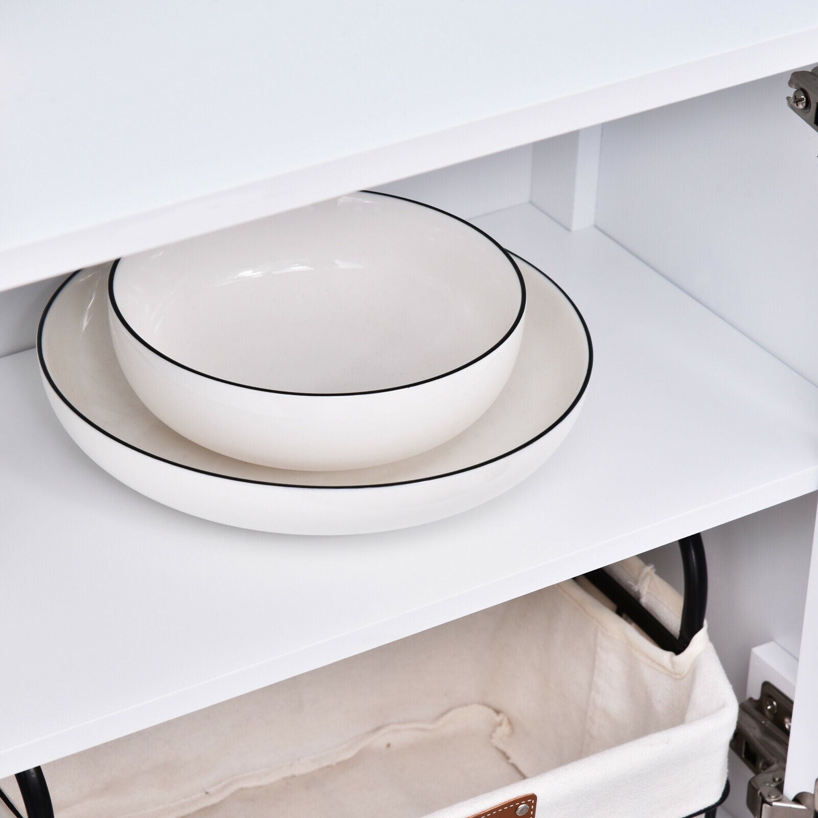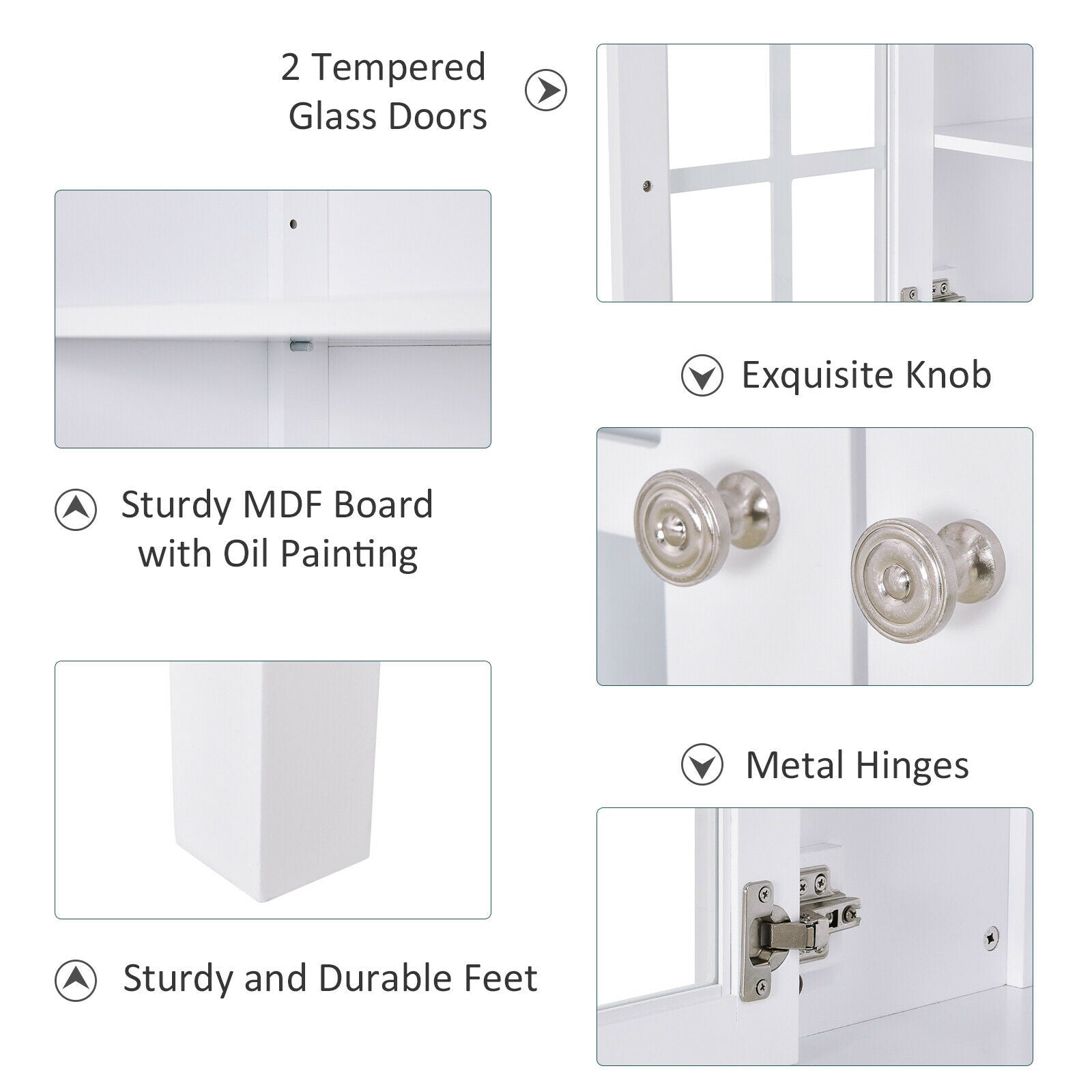 Modern Kitchen Sideboard Storage Cabinet w/Glass Door– White