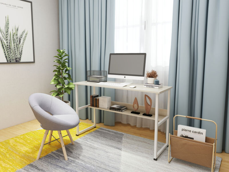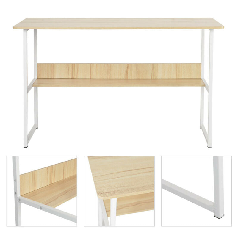 Home Computer Office PC Desk Writing Coffee Table Wood Bookshelf Furniture Beige